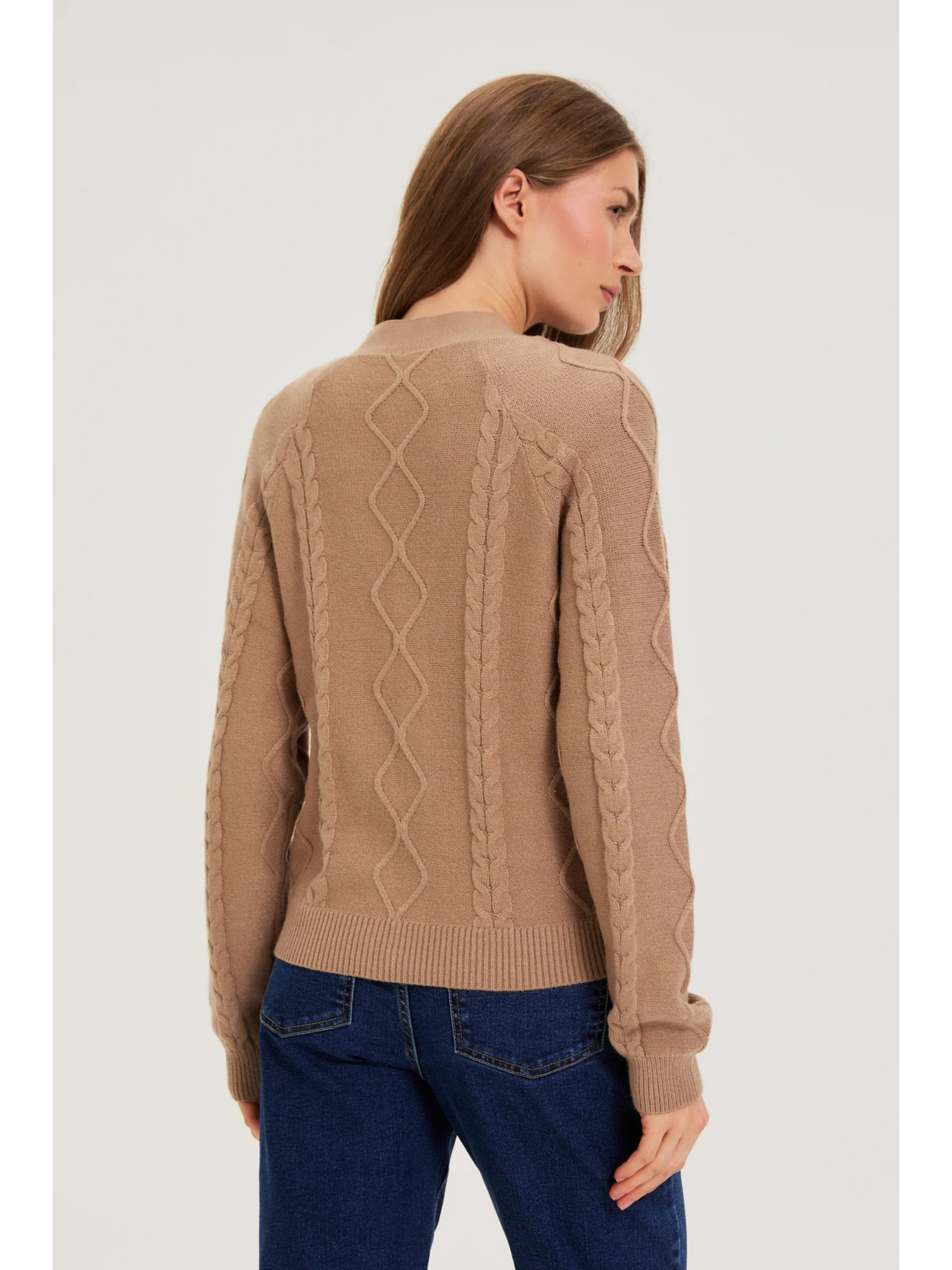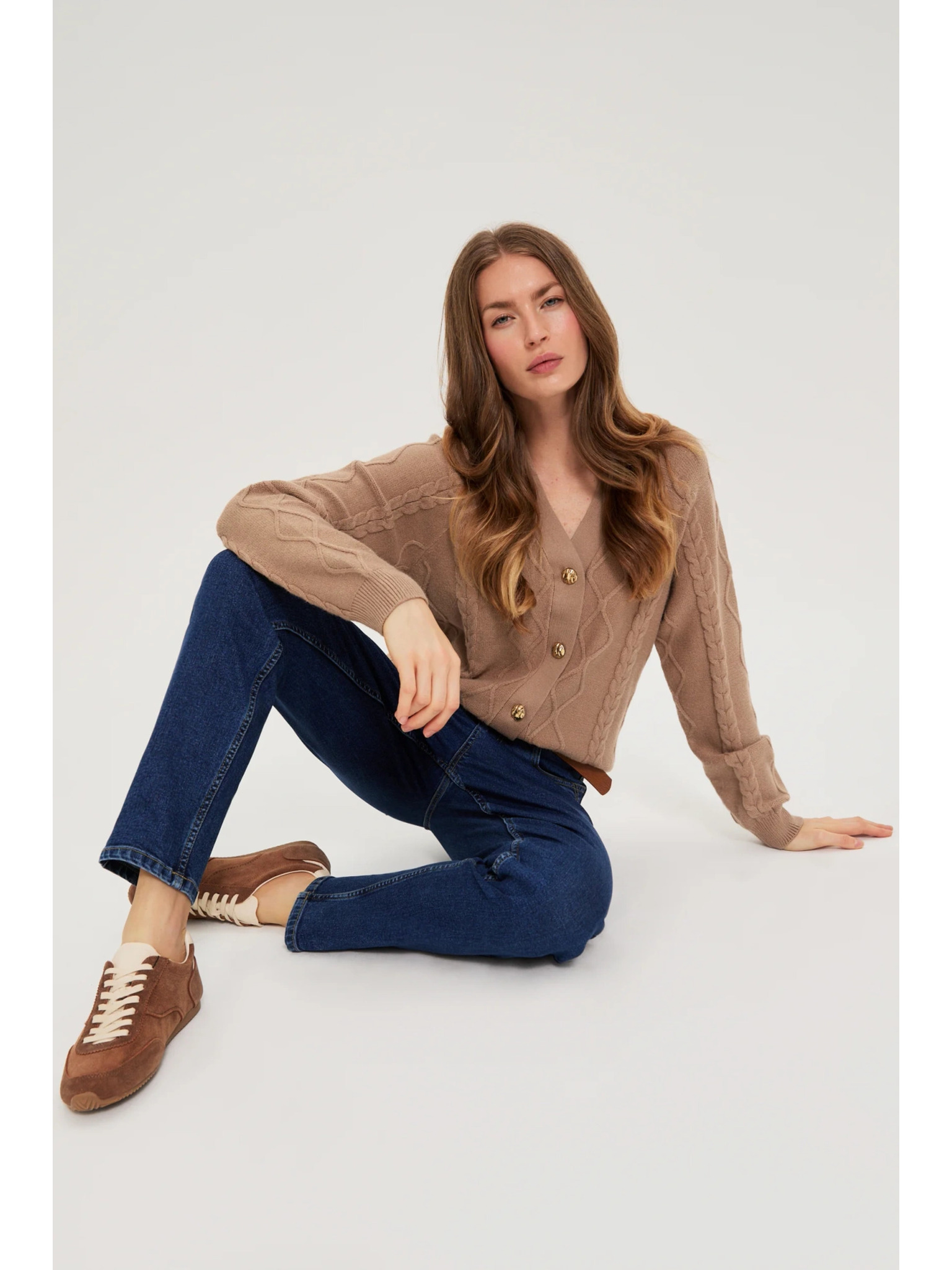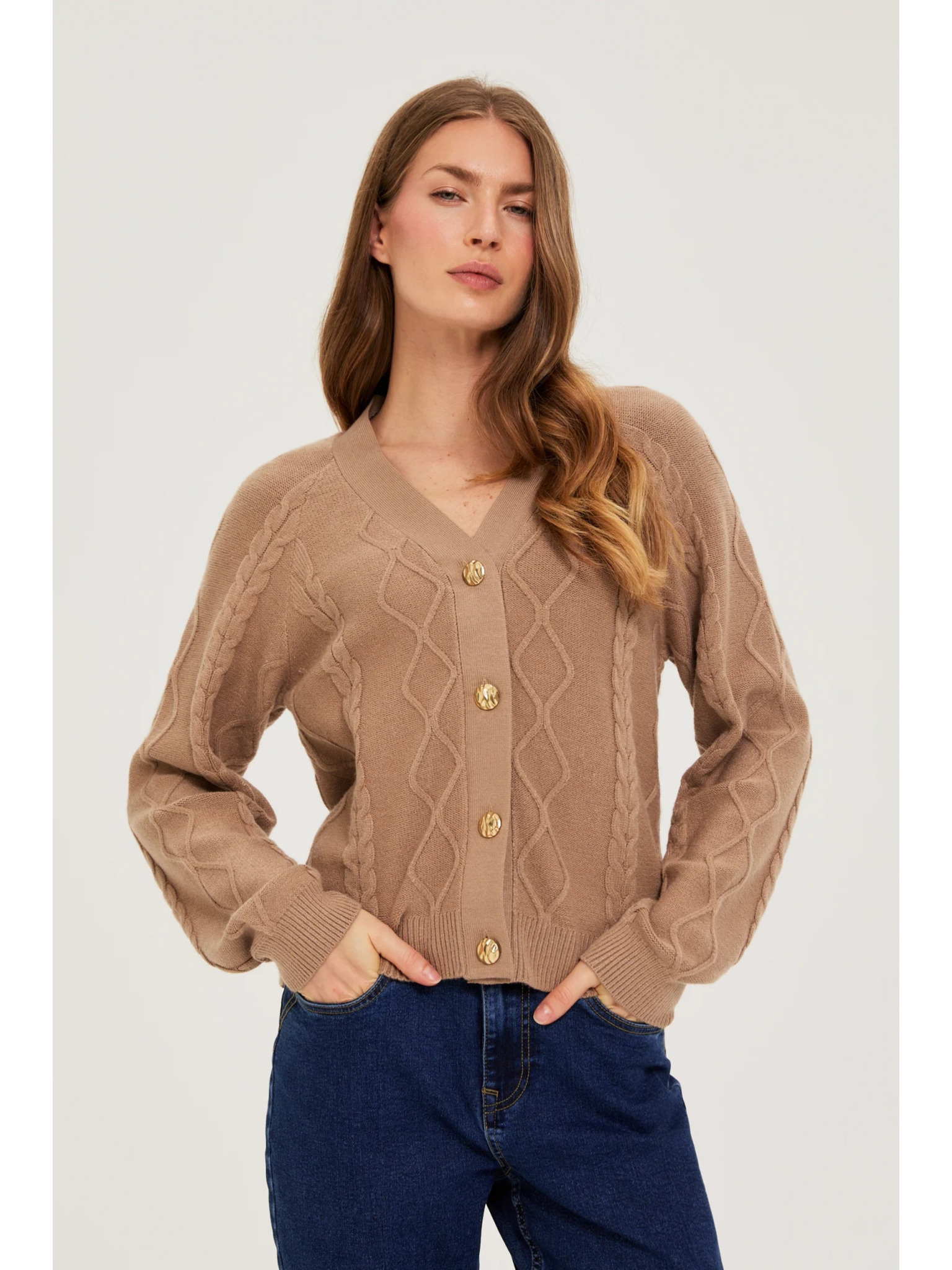 Кафяв кардиган с декоративно копче Moodo