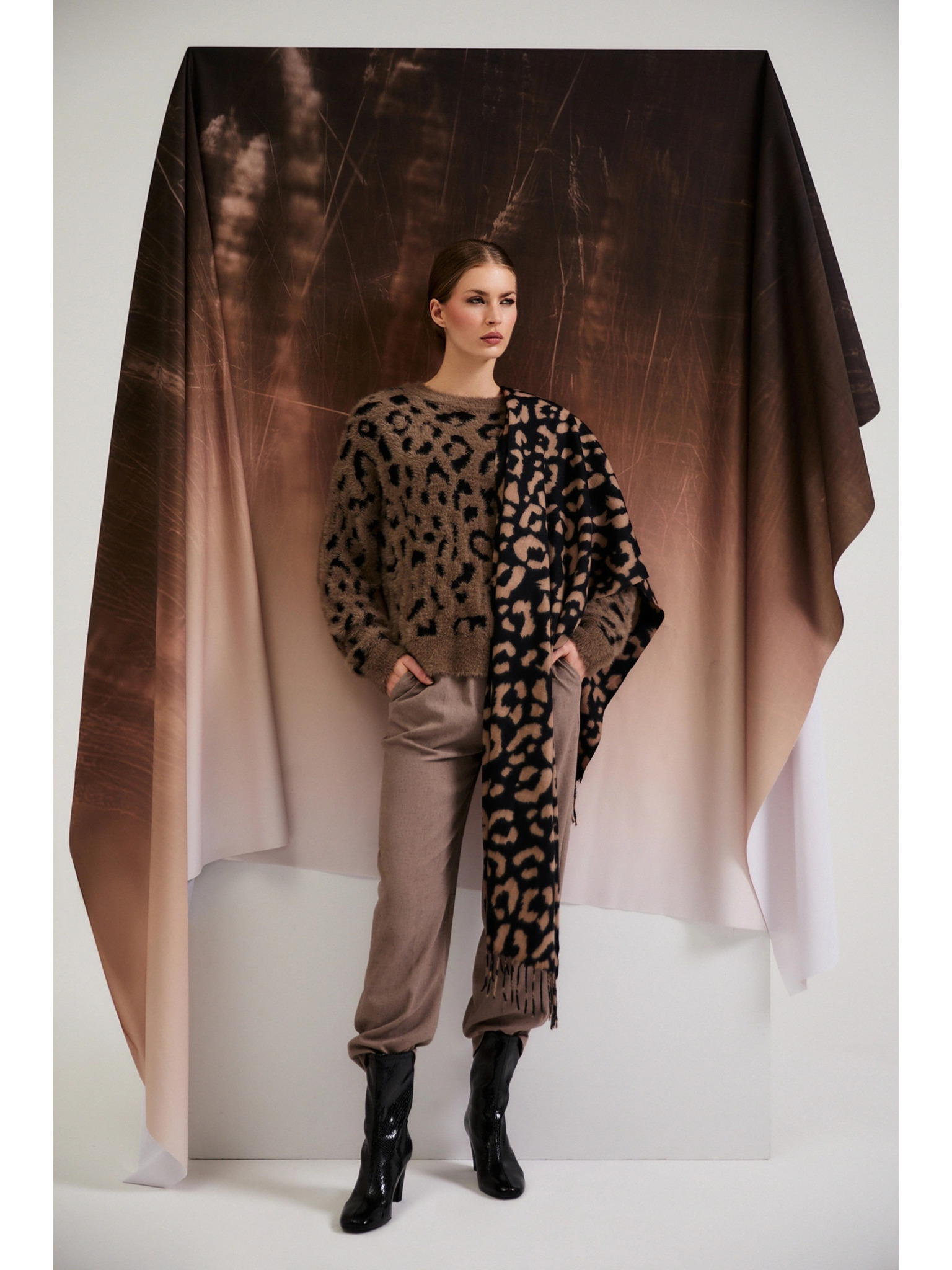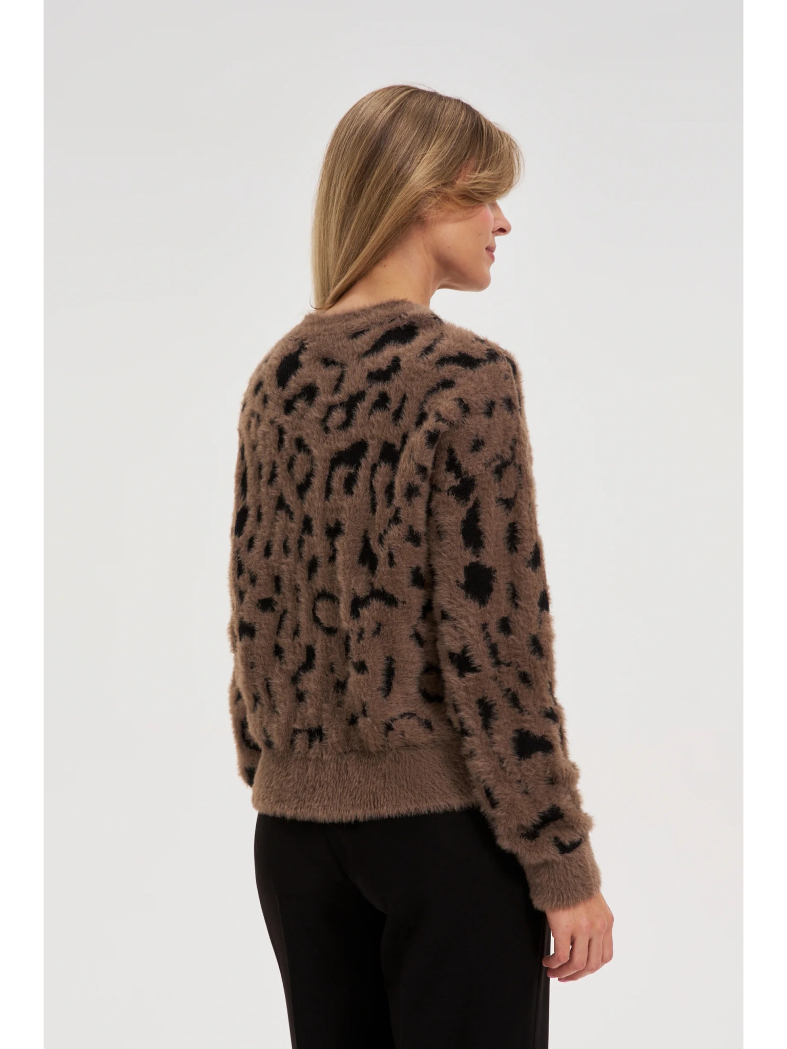 Суитшърт с леопардов принт кафяв Moodo