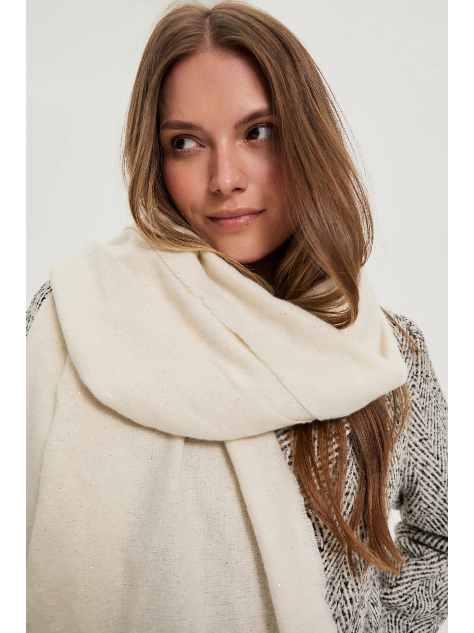 Шал на квадратчета в перлен цвят Moodo