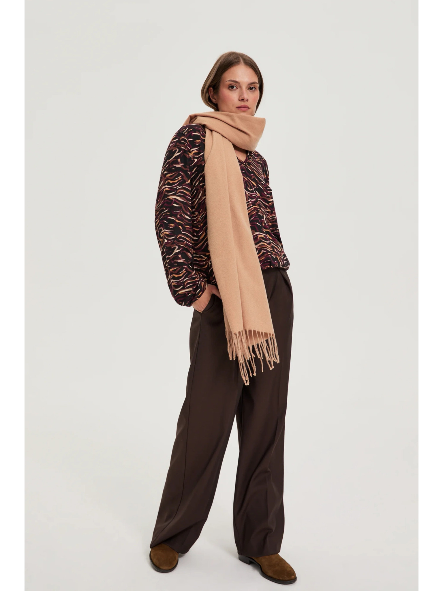 Шал с печат бежов Moodo