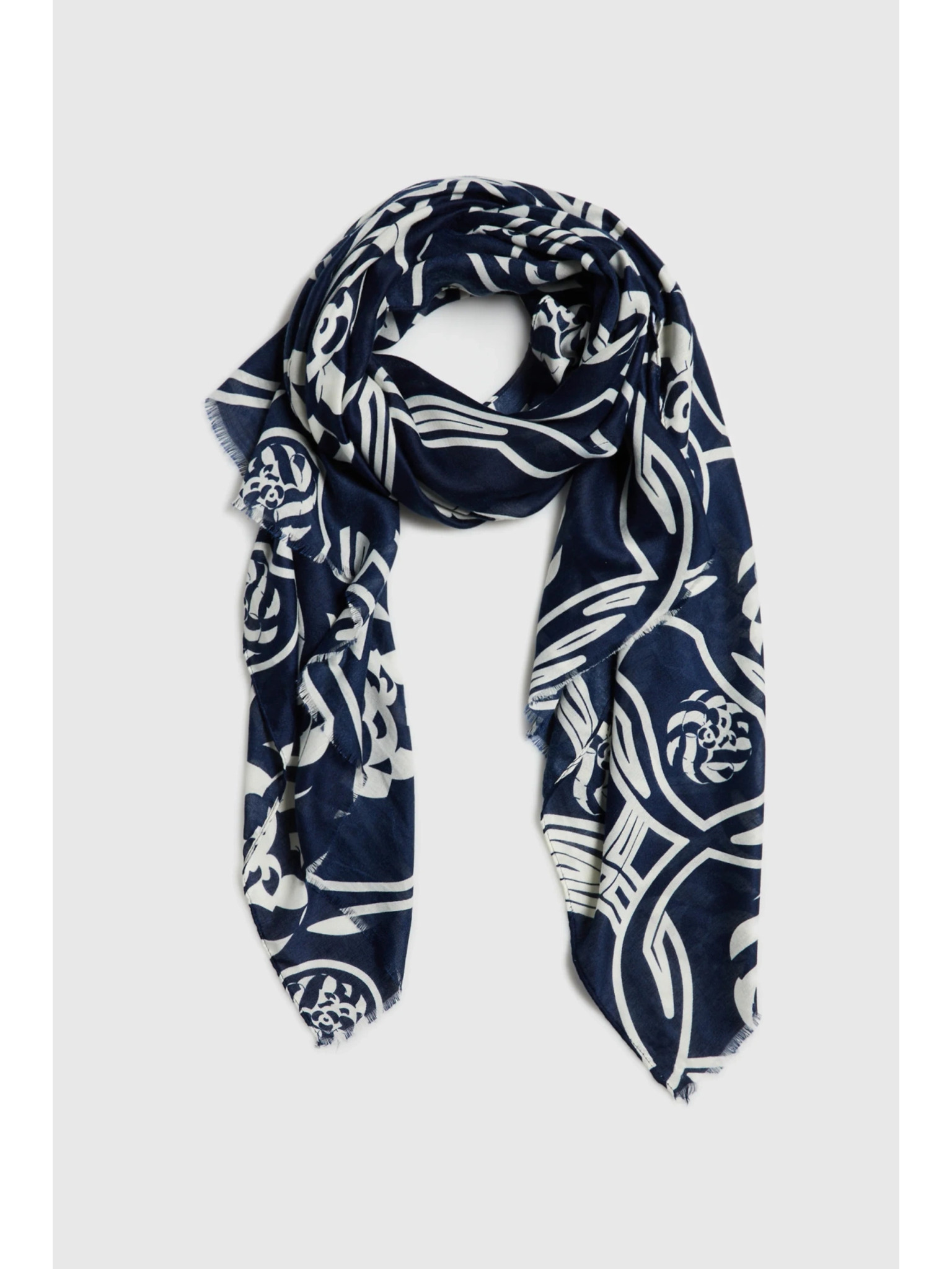 Шал с растителен десен в тъмносиньо Moodo
