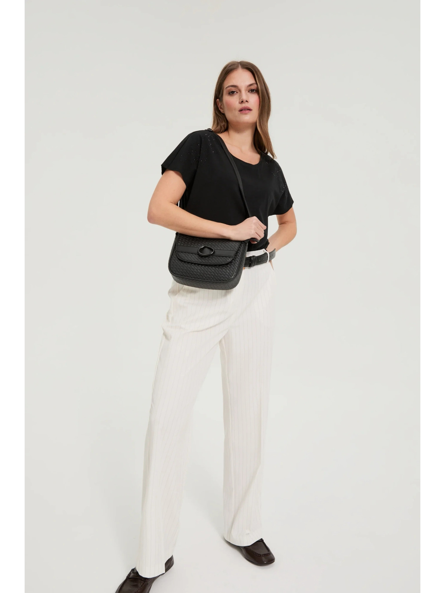 Черна чанта с широк колан Moodo