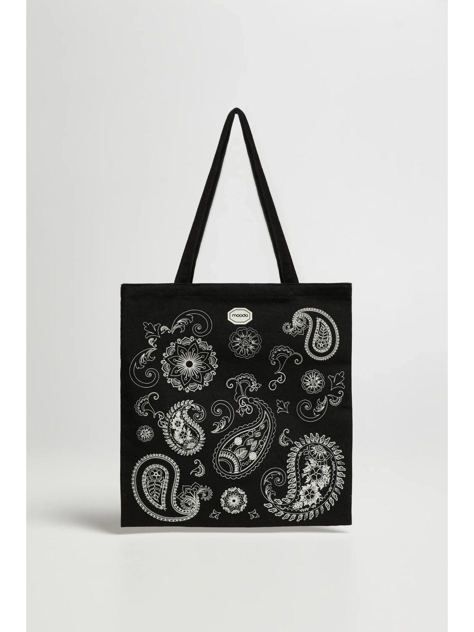 Черна пазарска чанта с принт Moodo
