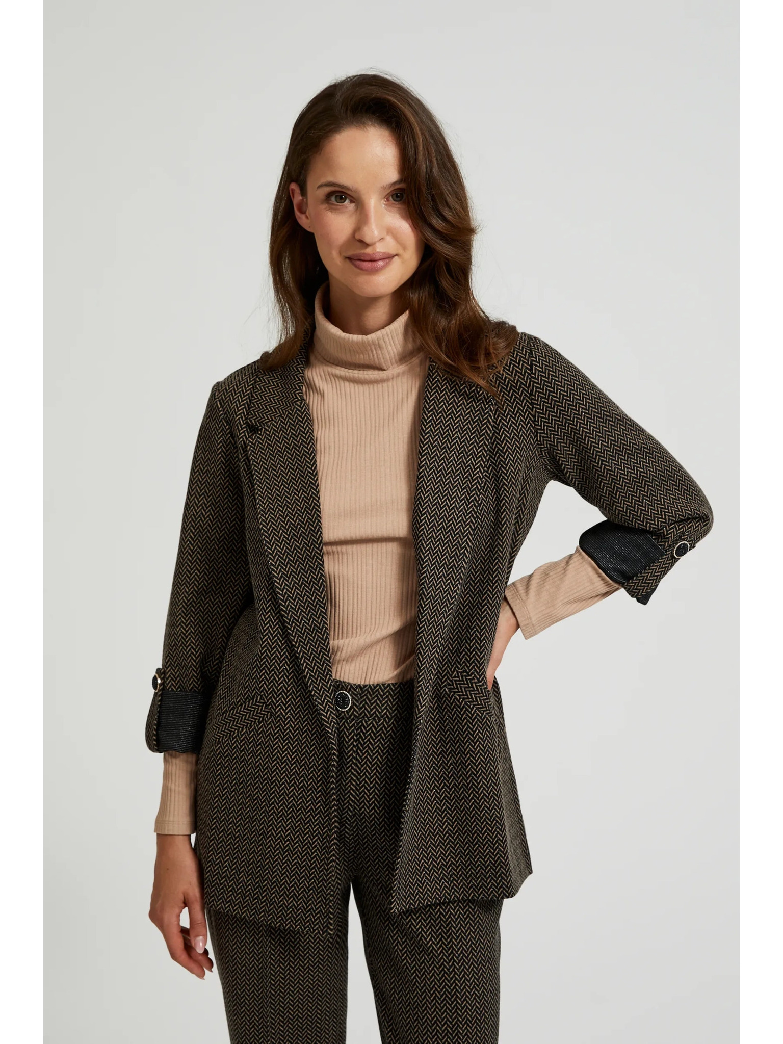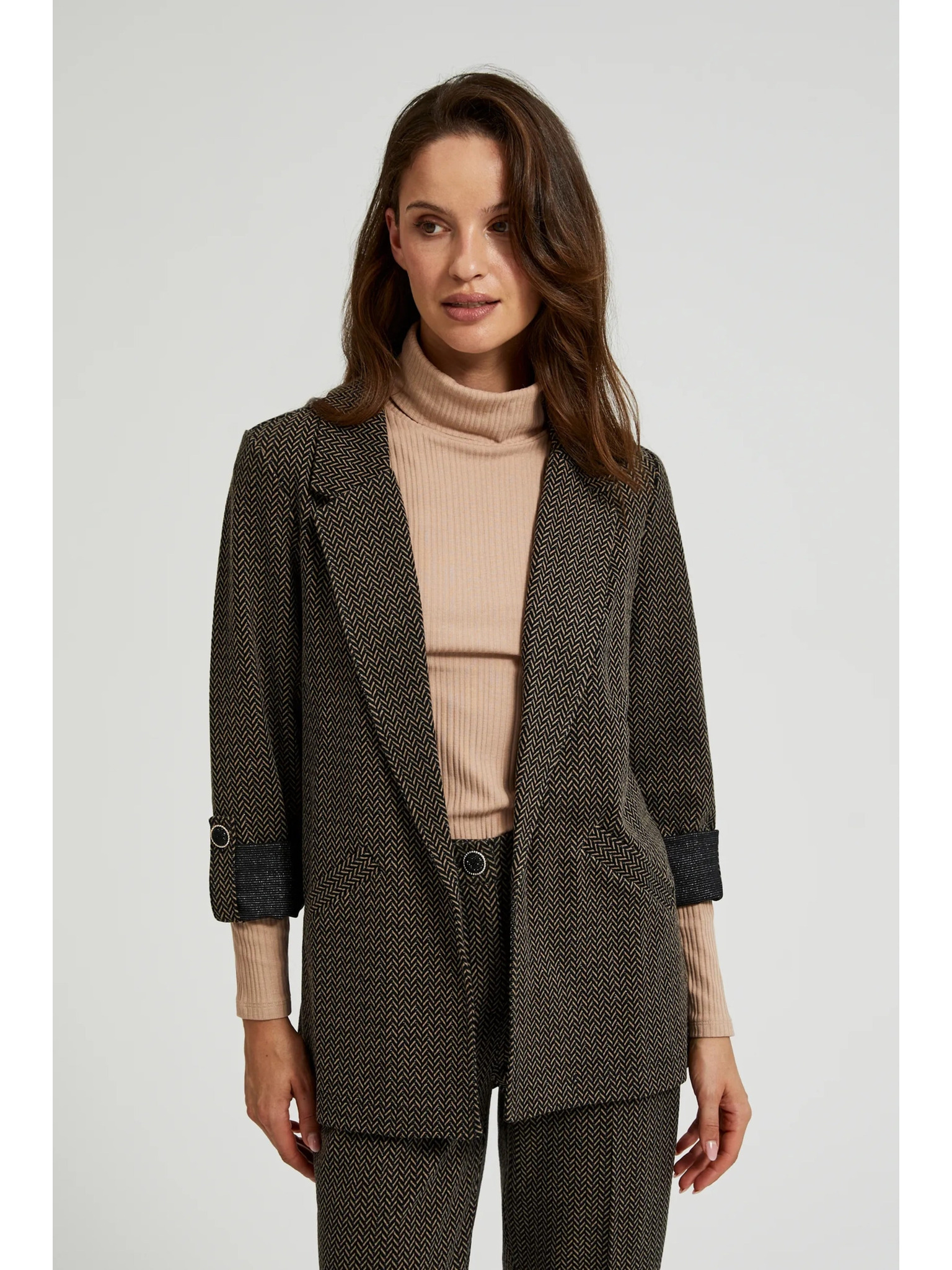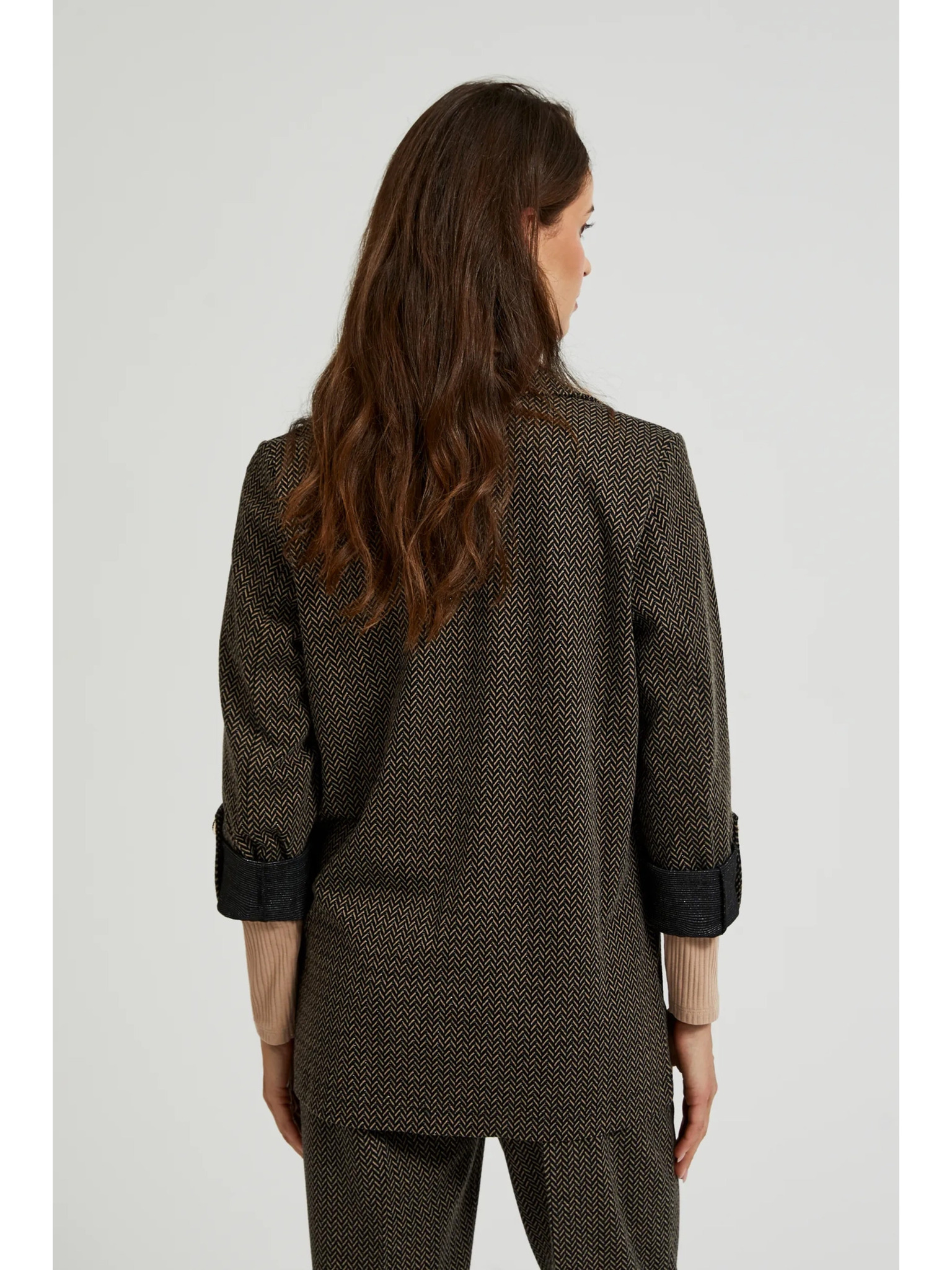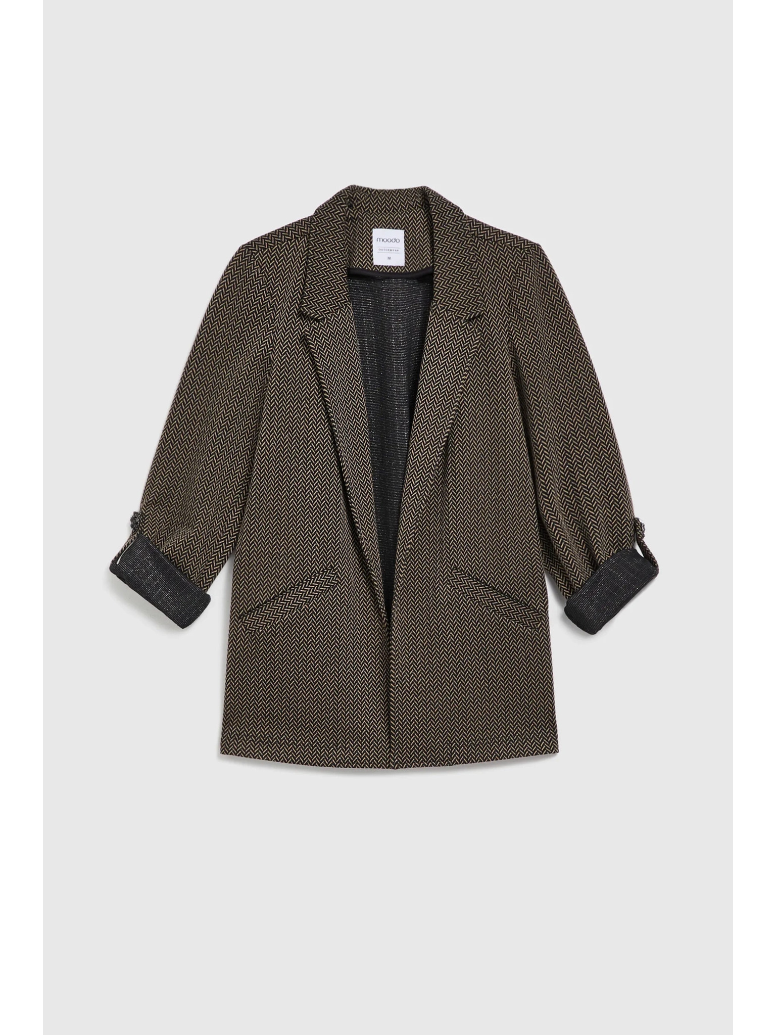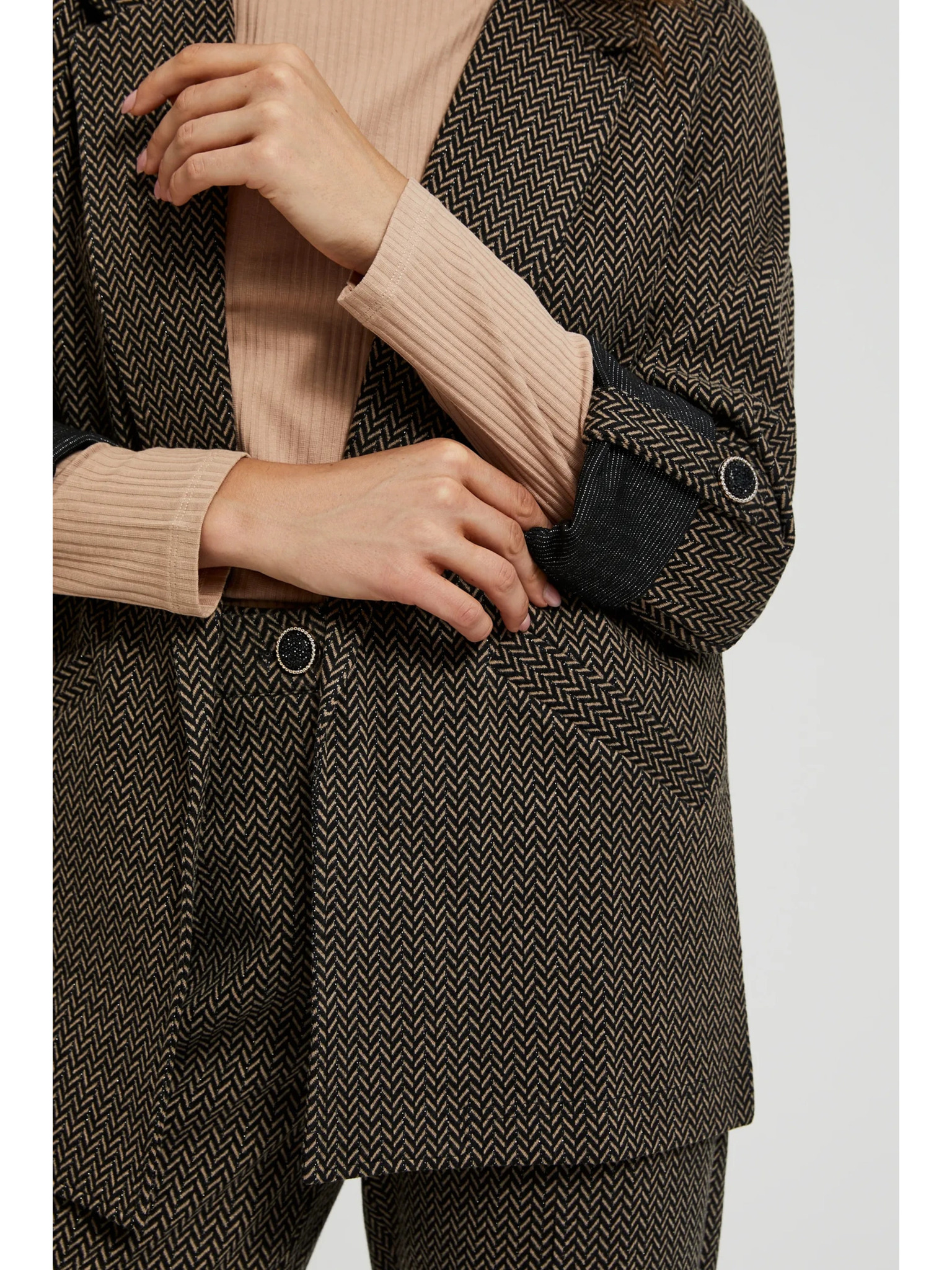 Черно сако с метален детайл и навити ръкави Moodo