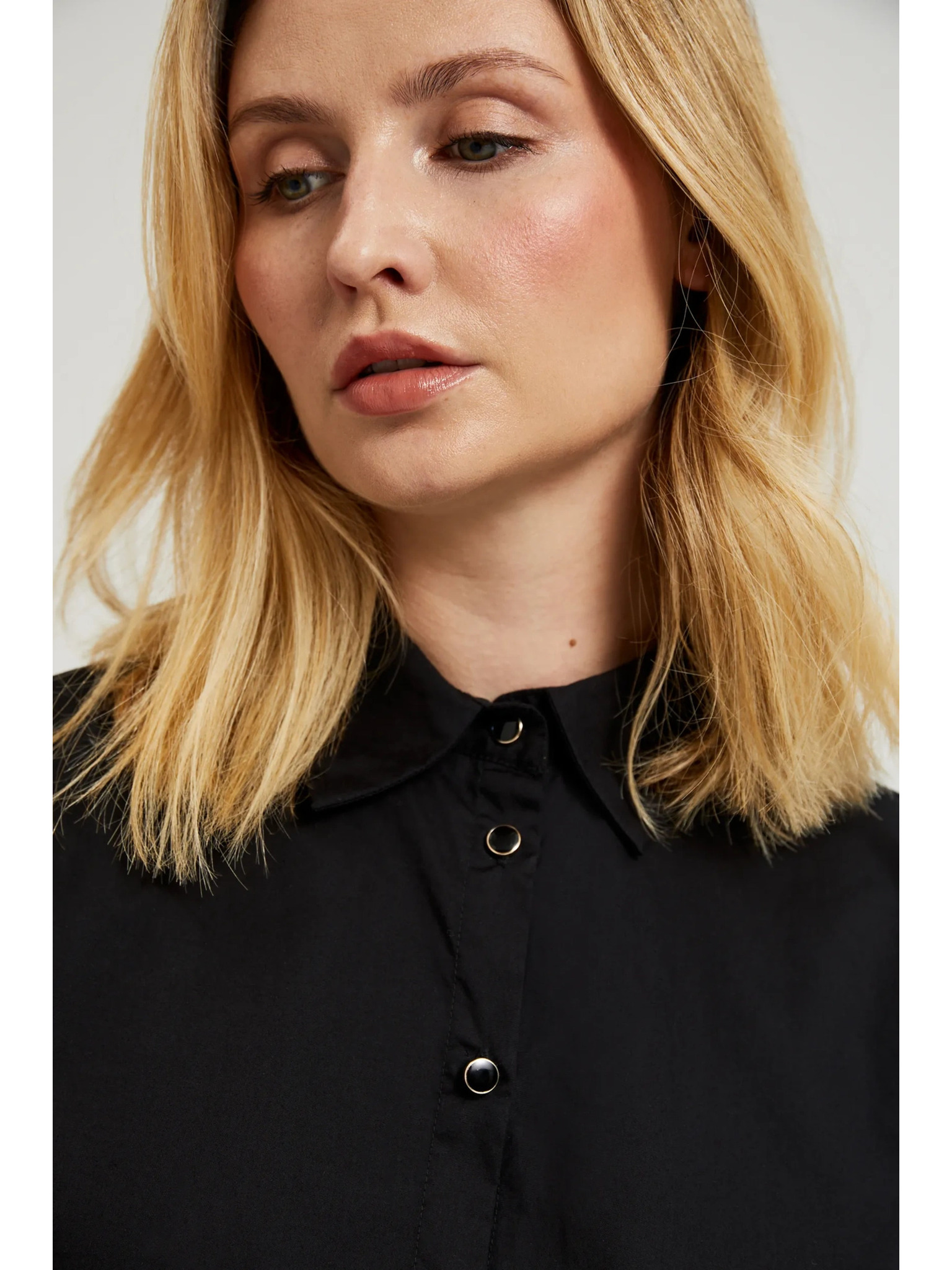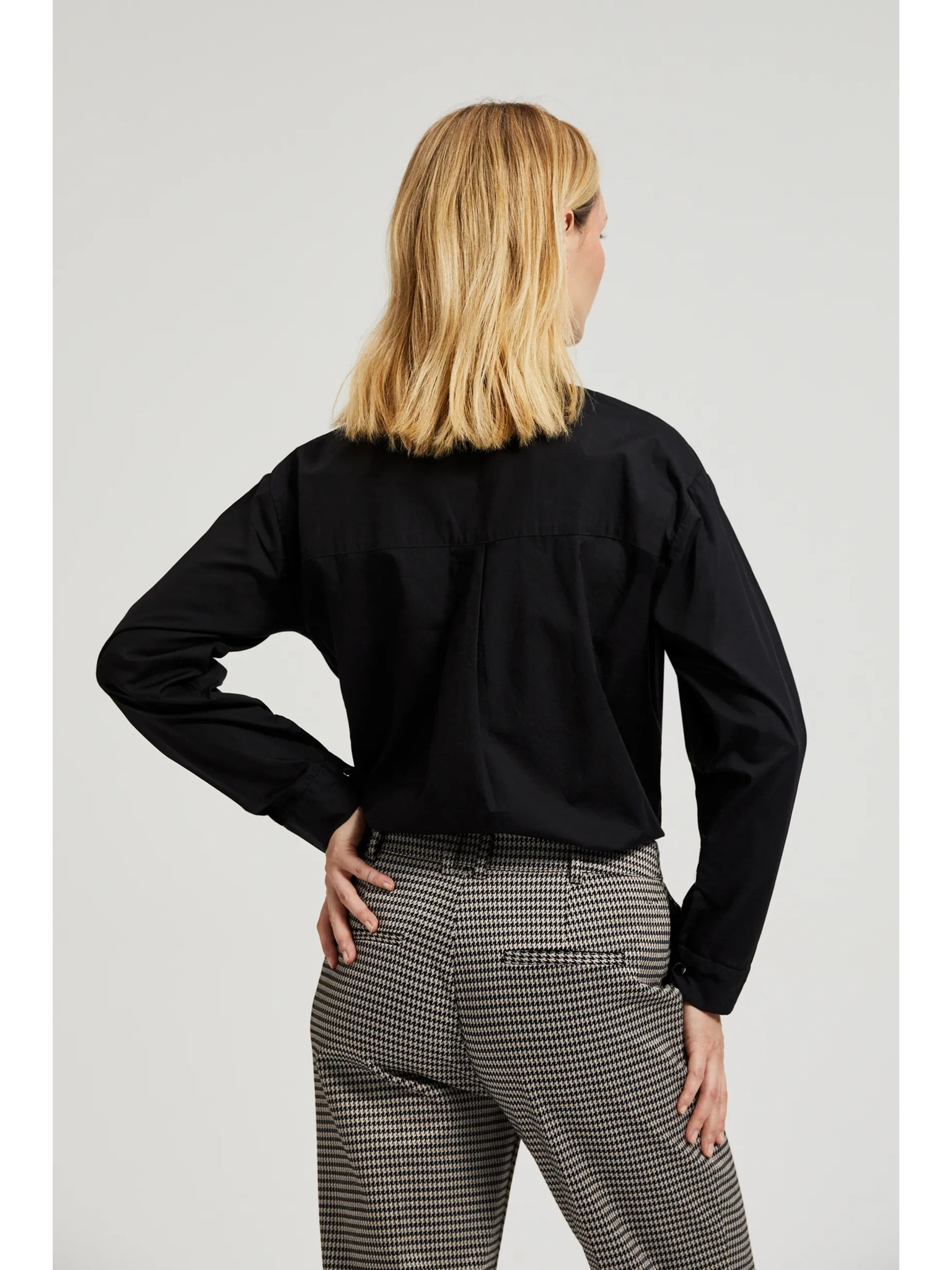 Черна риза с волани на ръкавите Moodo