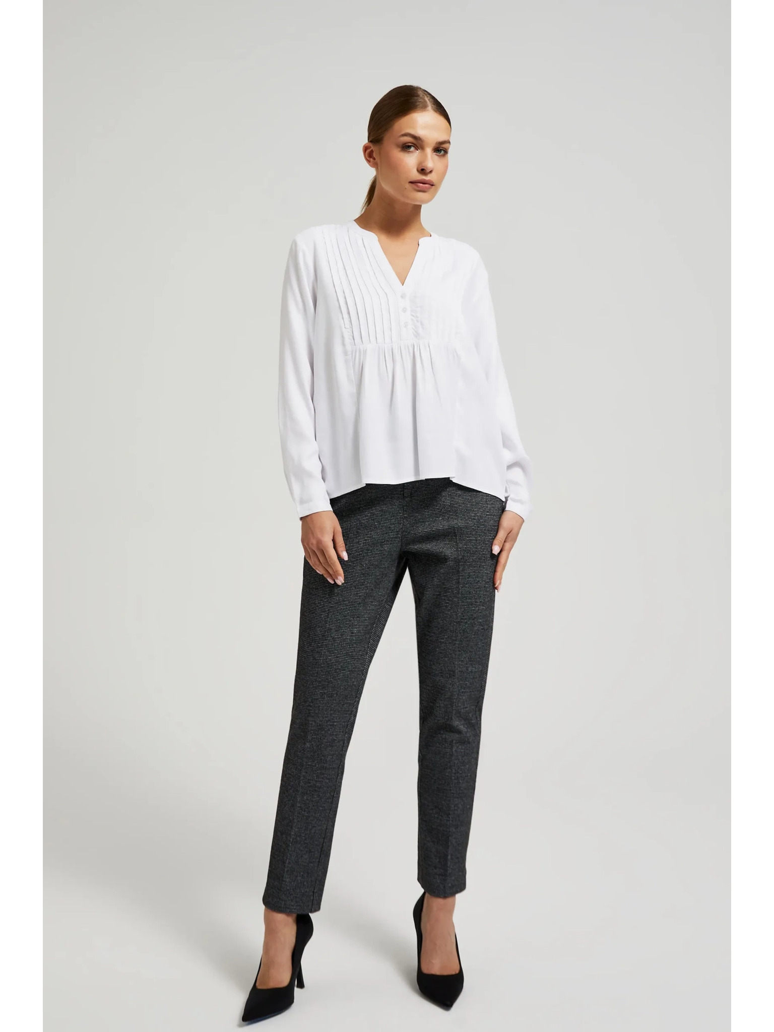 Бяла блуза с декоративни копчета