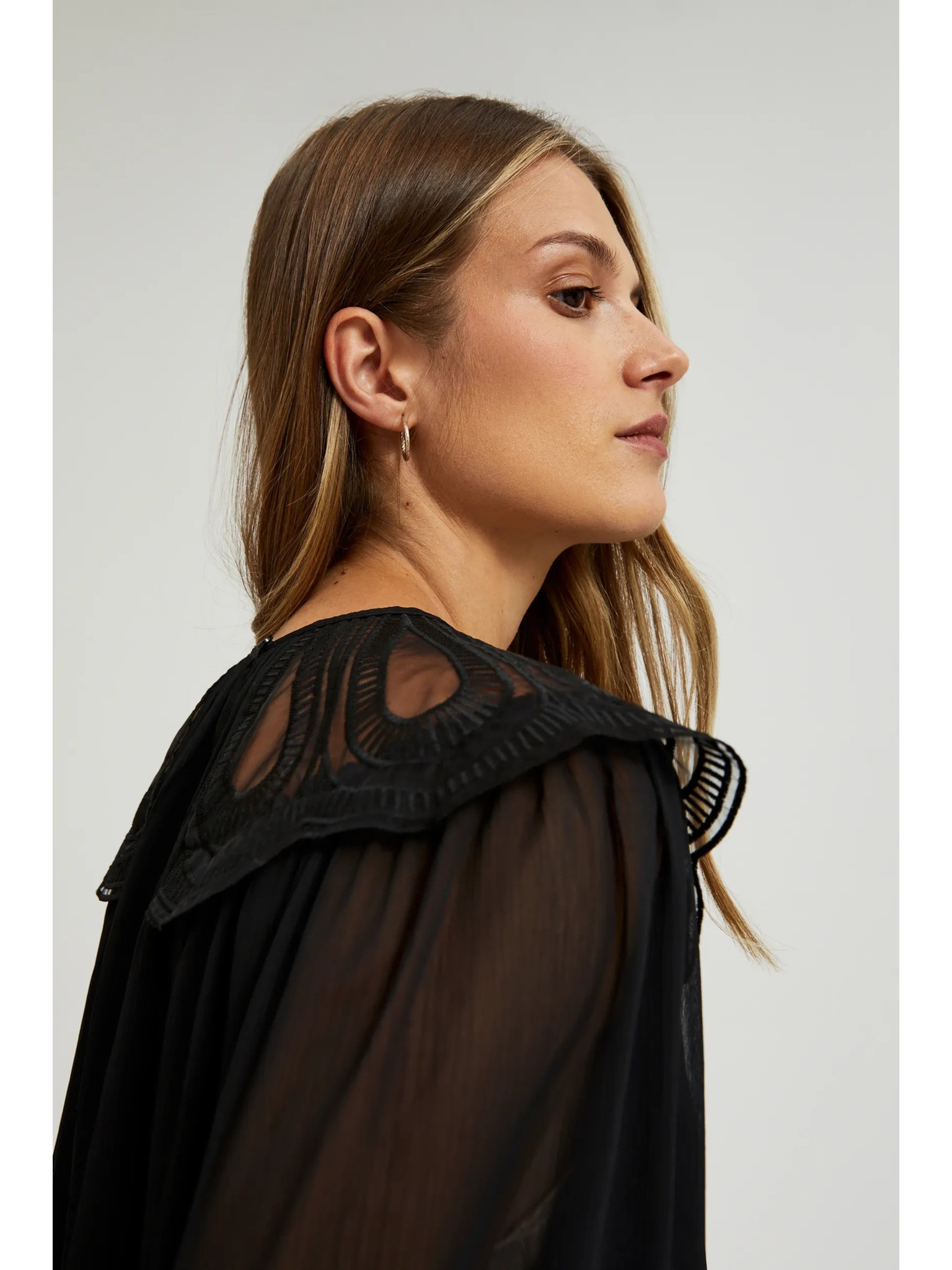 Черна риза с декоративно деколте Moodo