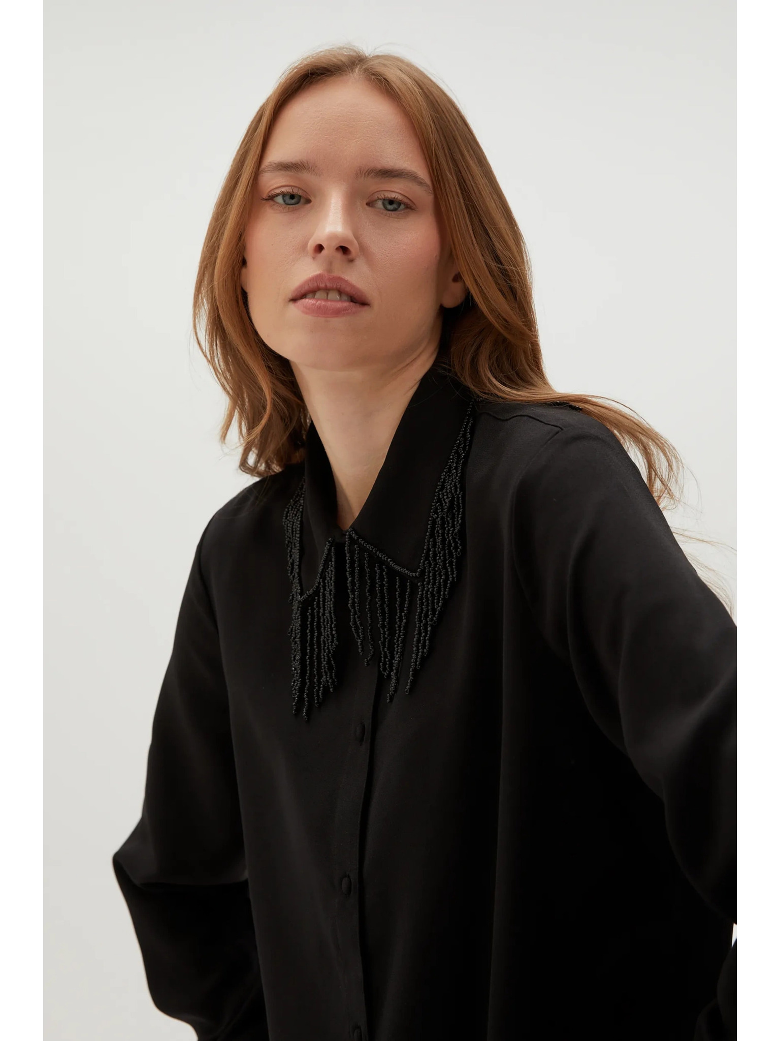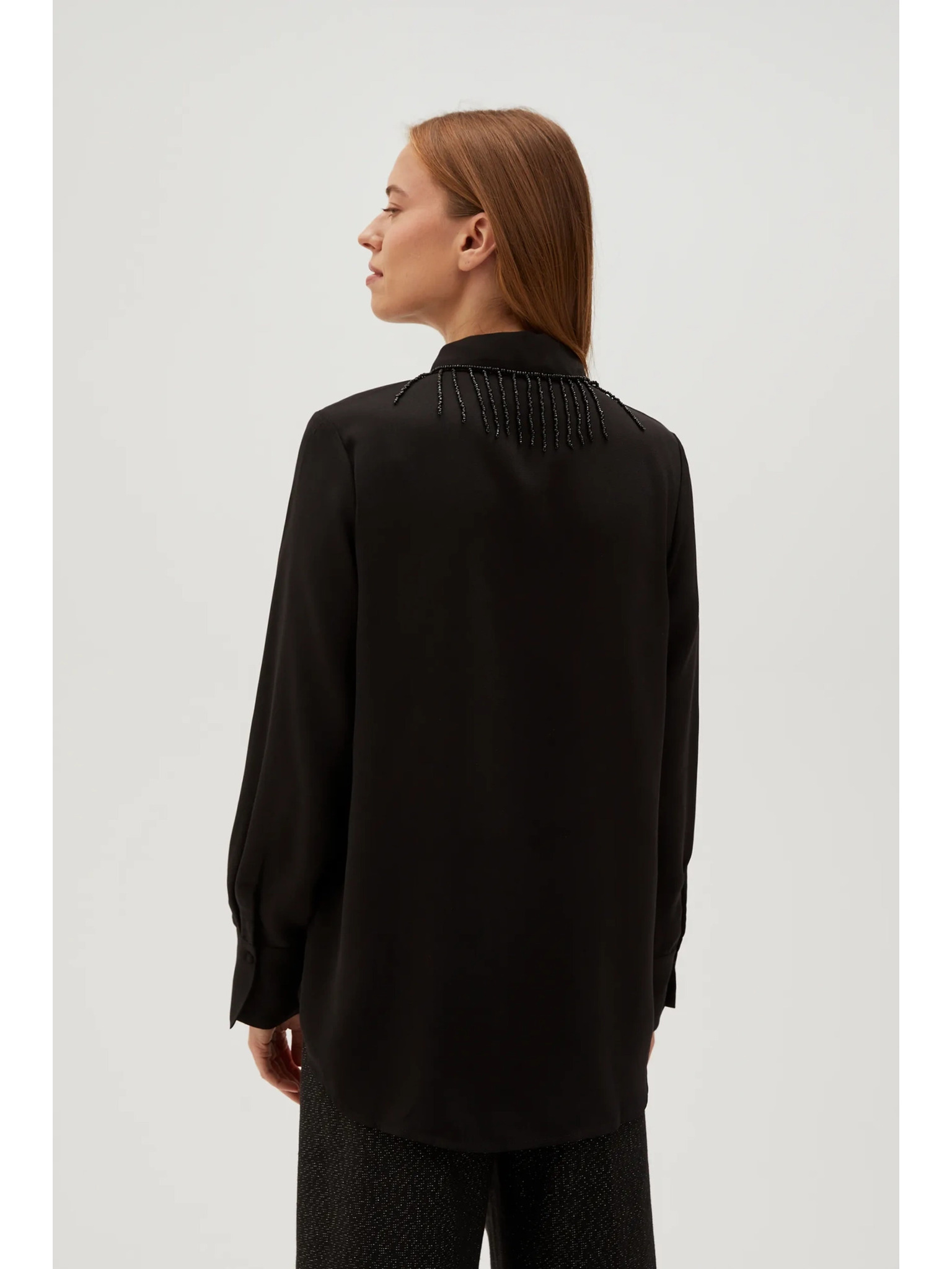 Черна блуза с ръчно пришити мъниста Moodo
