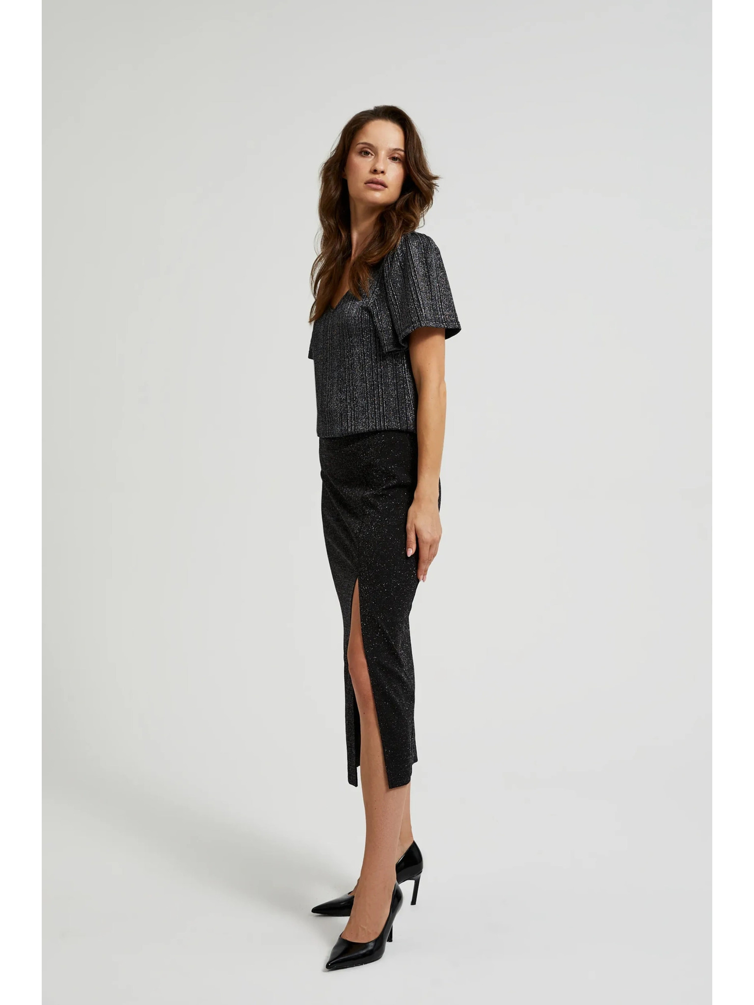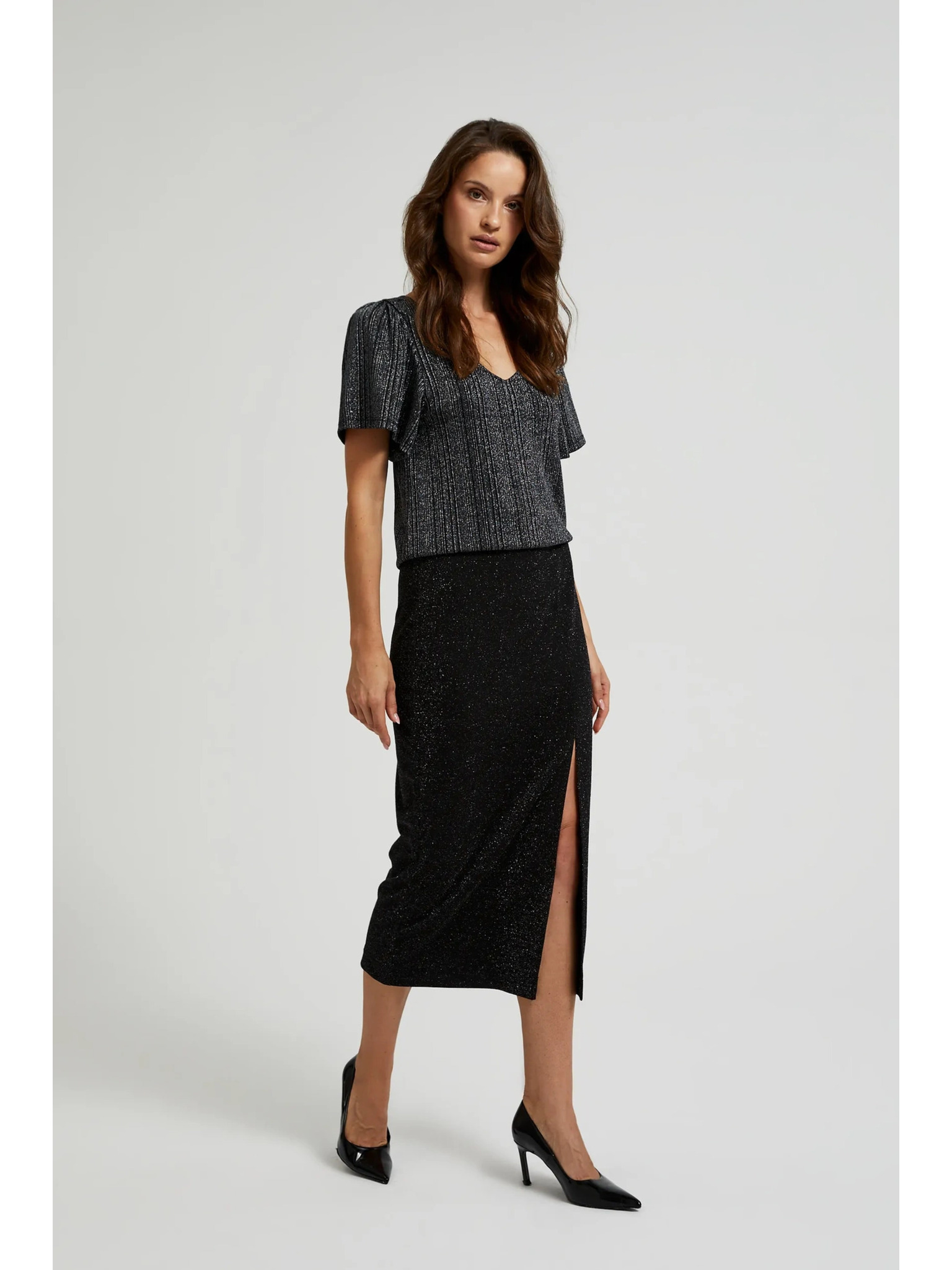 Миди пола с цепка в черно Moodo