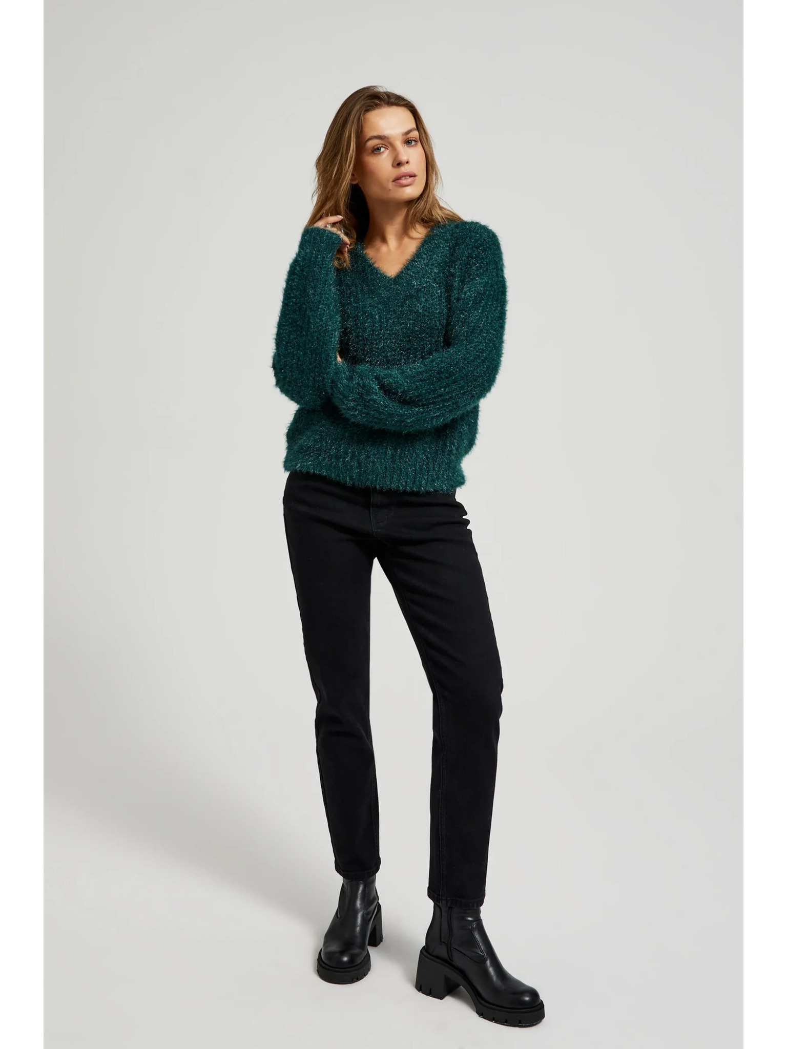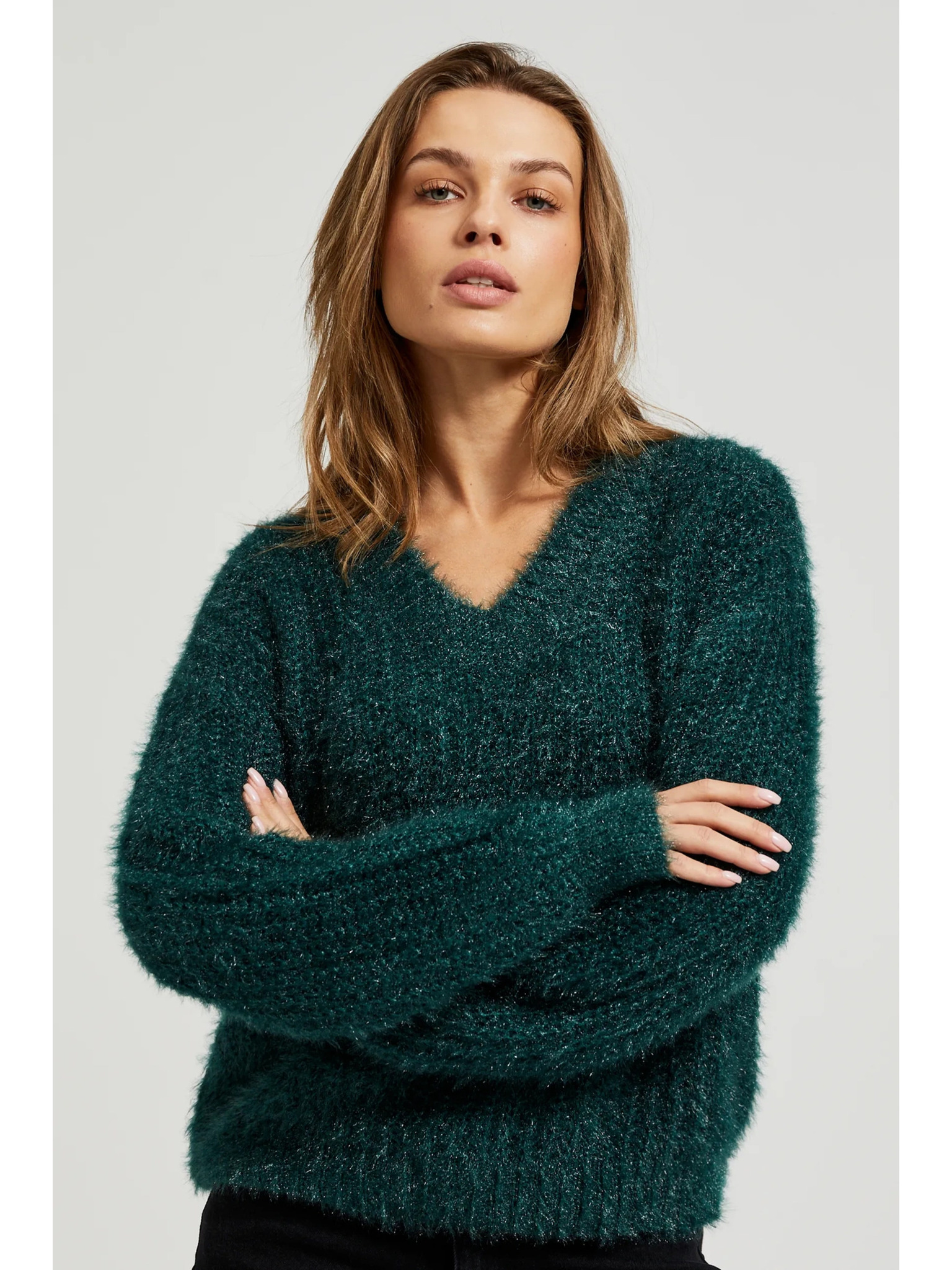 Дамски пуловер с метална нишка Moodo