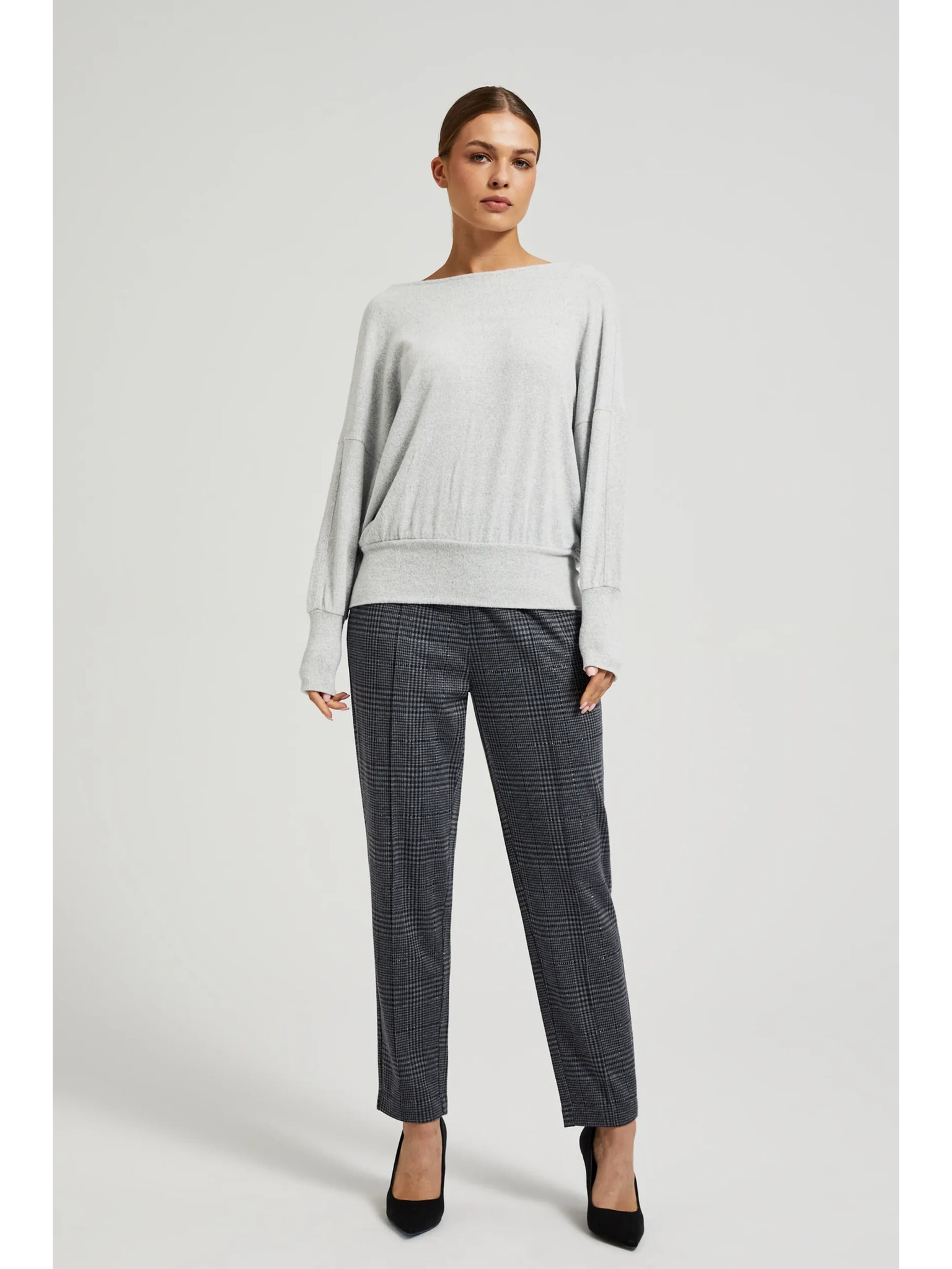 Суитшърт с лъскава нишка в сиво Moodo