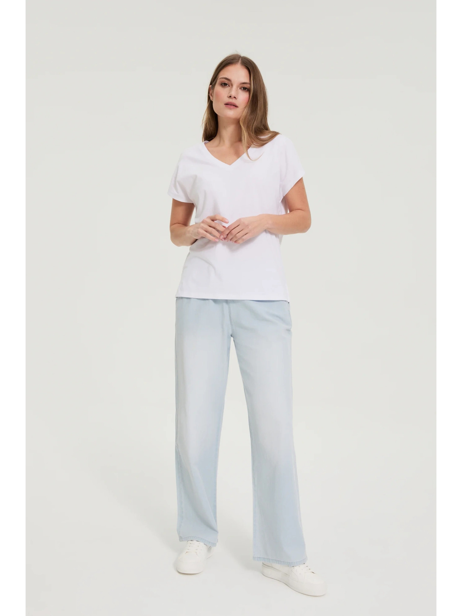 Бяла блуза с V-образно деколте Moodo