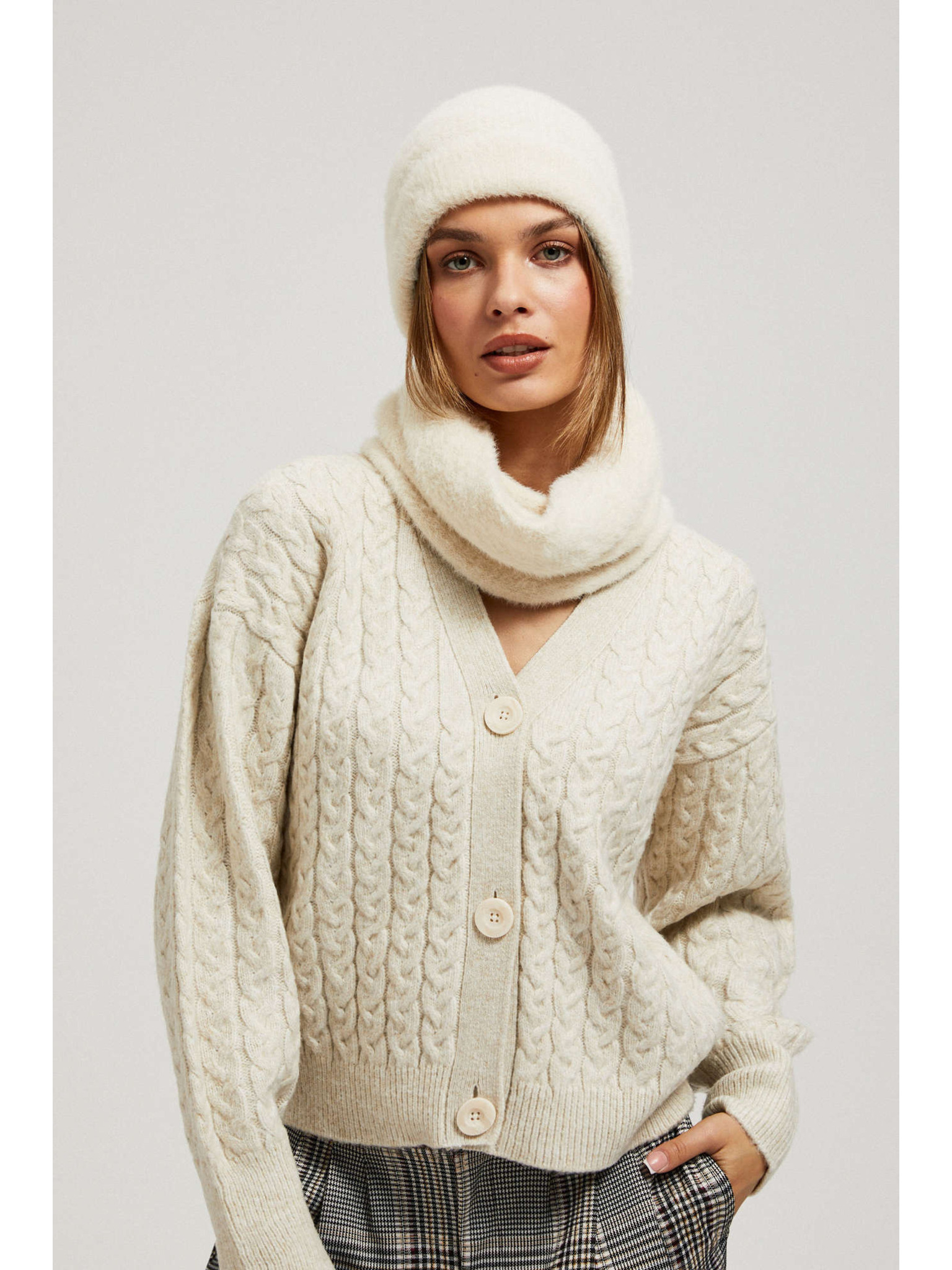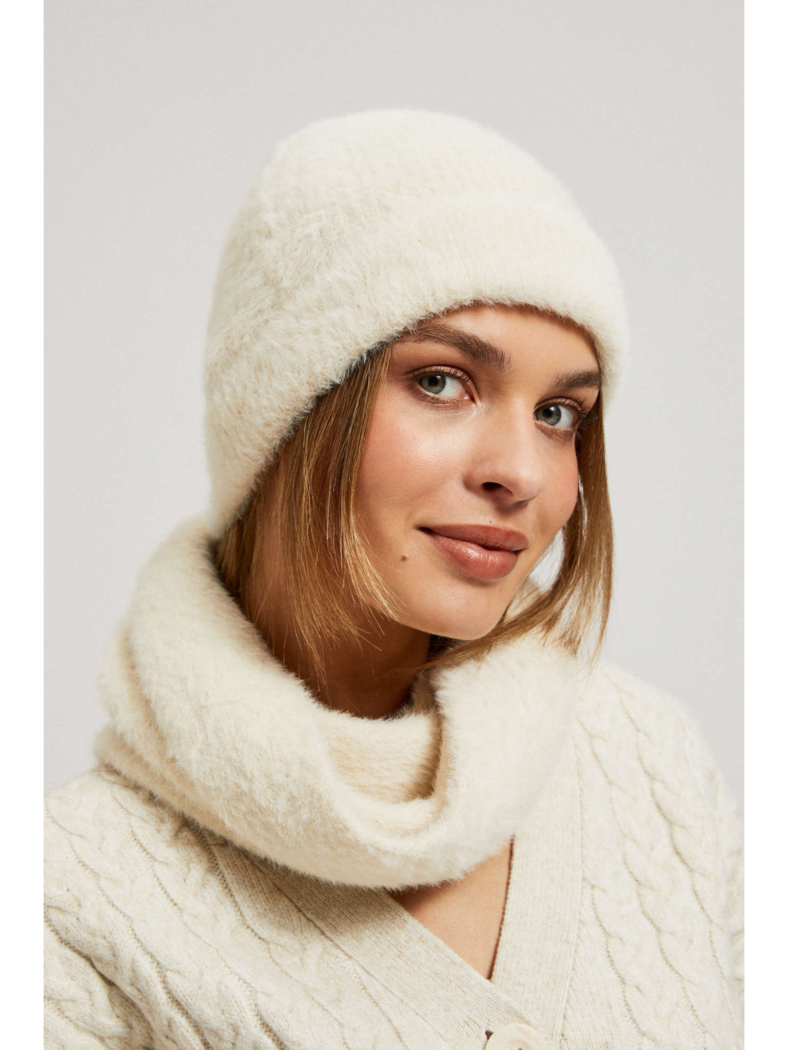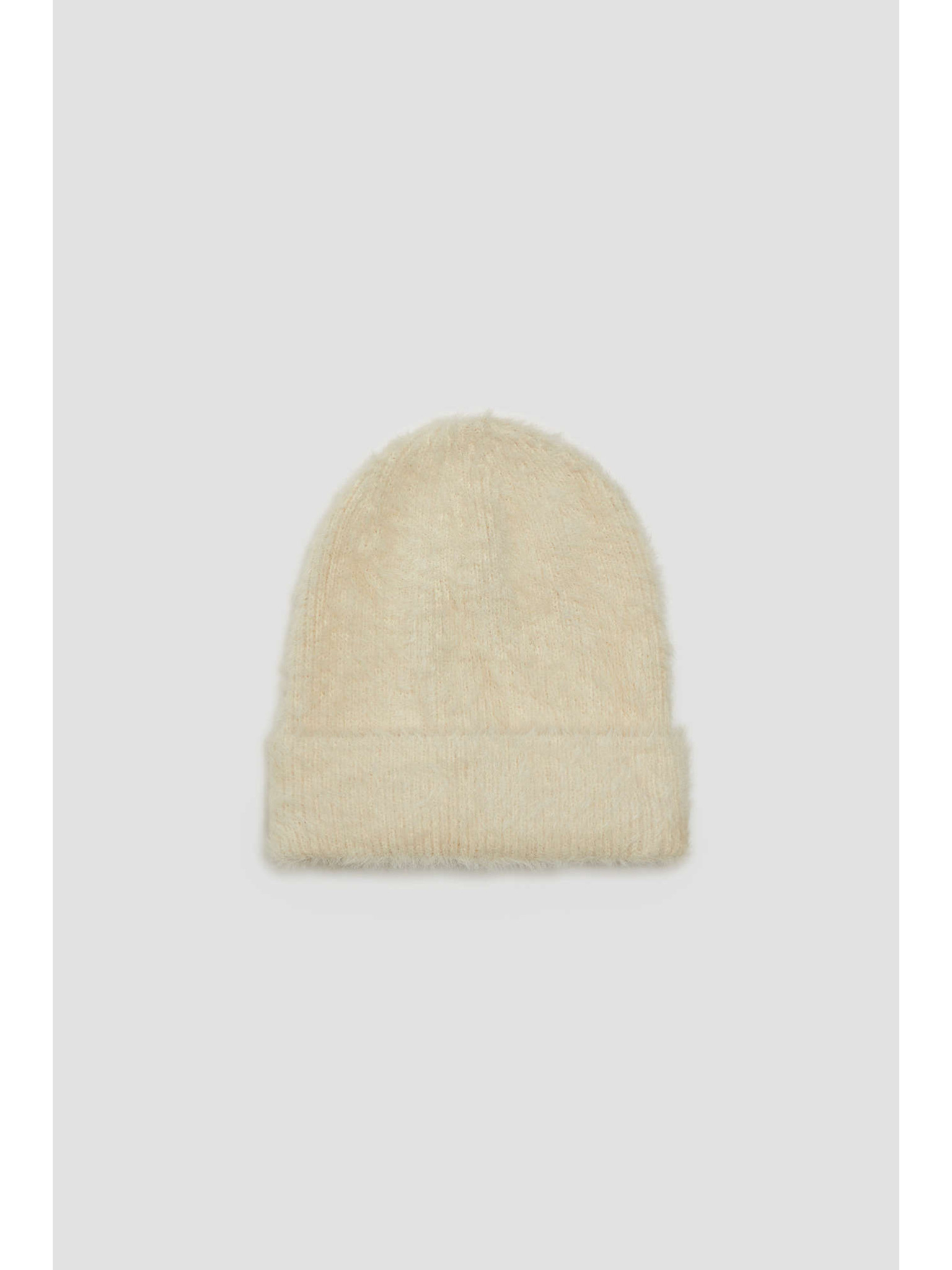Топла бежова шапка с вълнена добавка Moodo