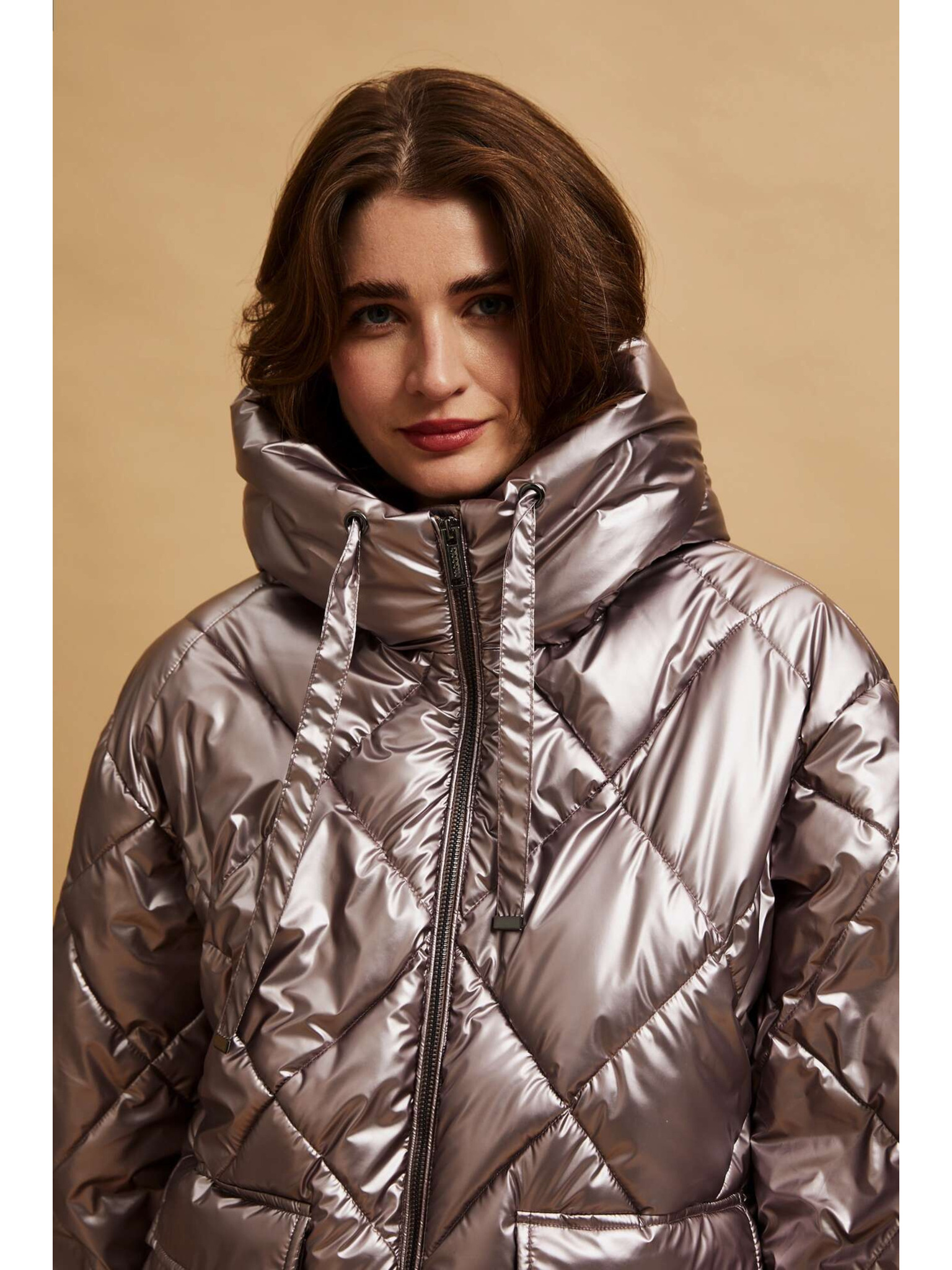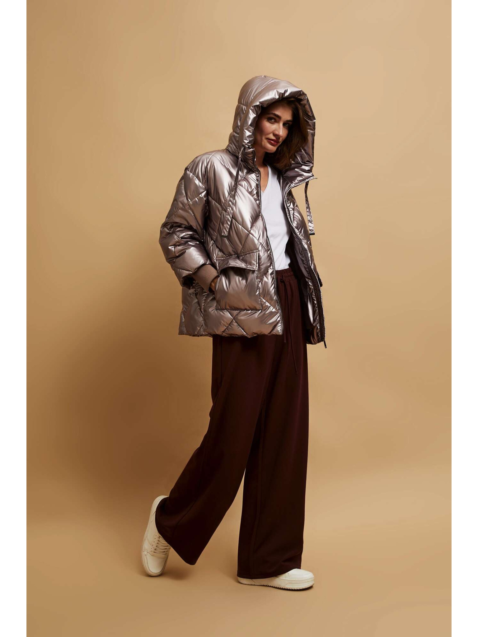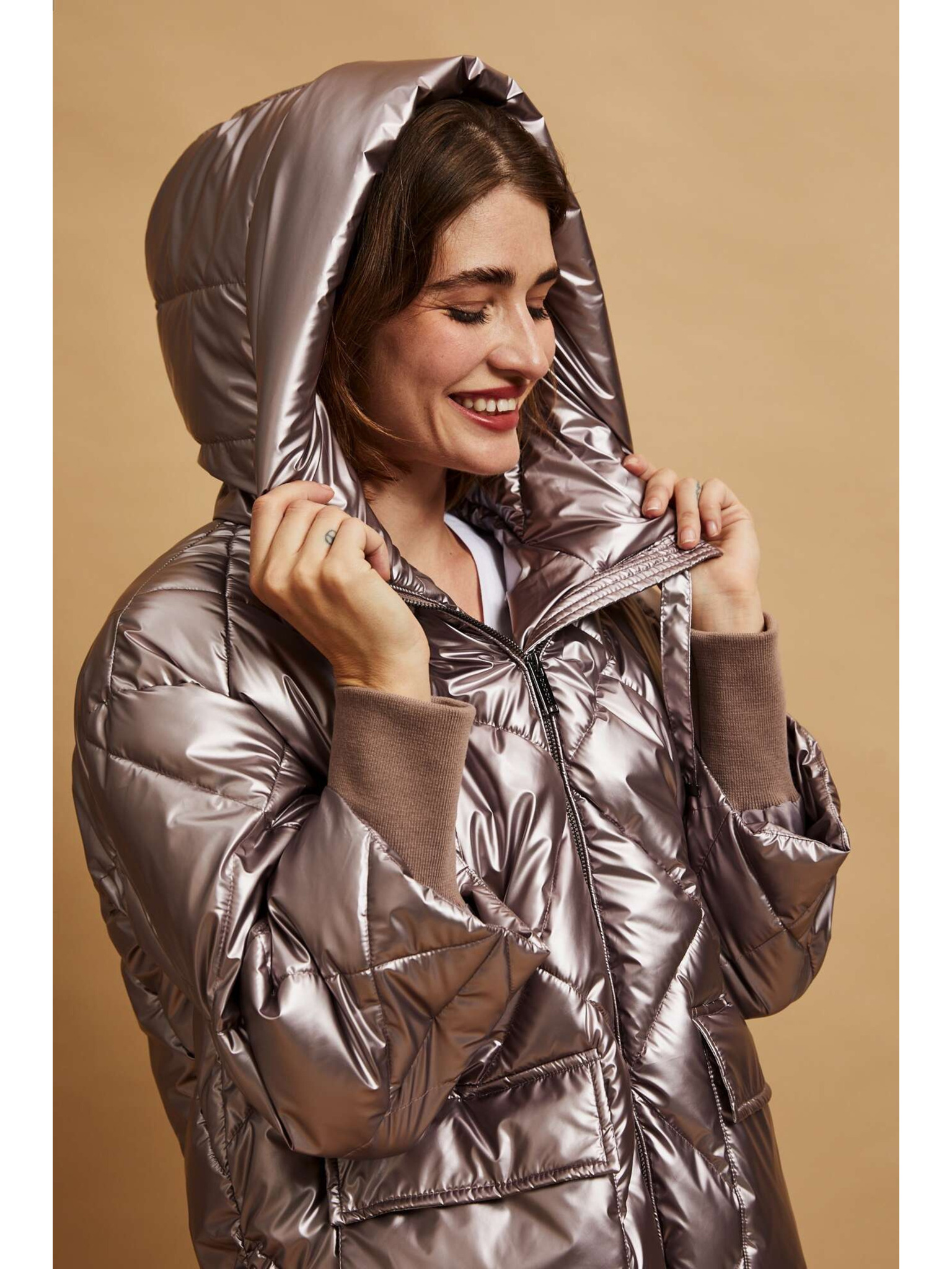 Стегнато яке с качулка бежово Moodo