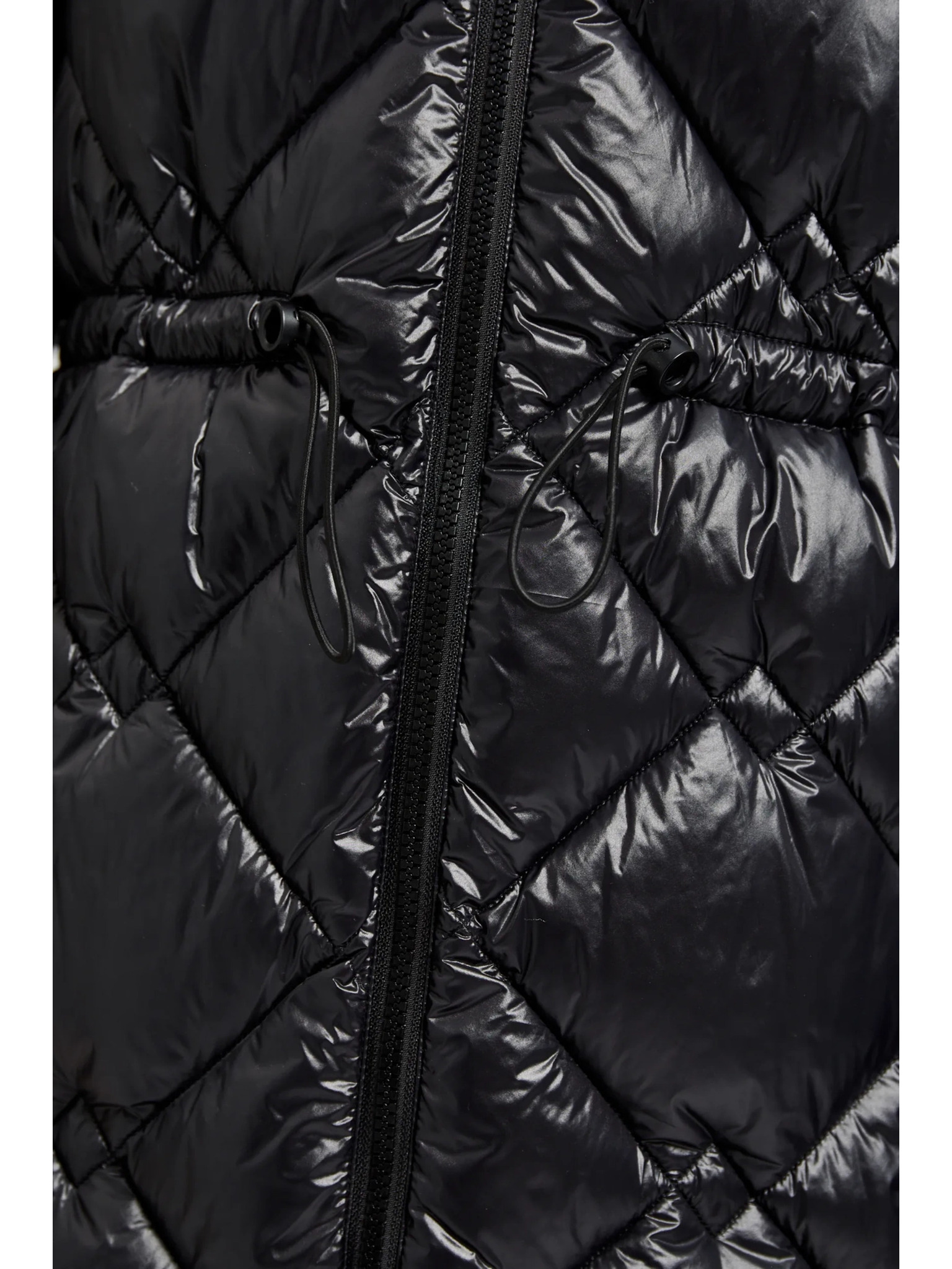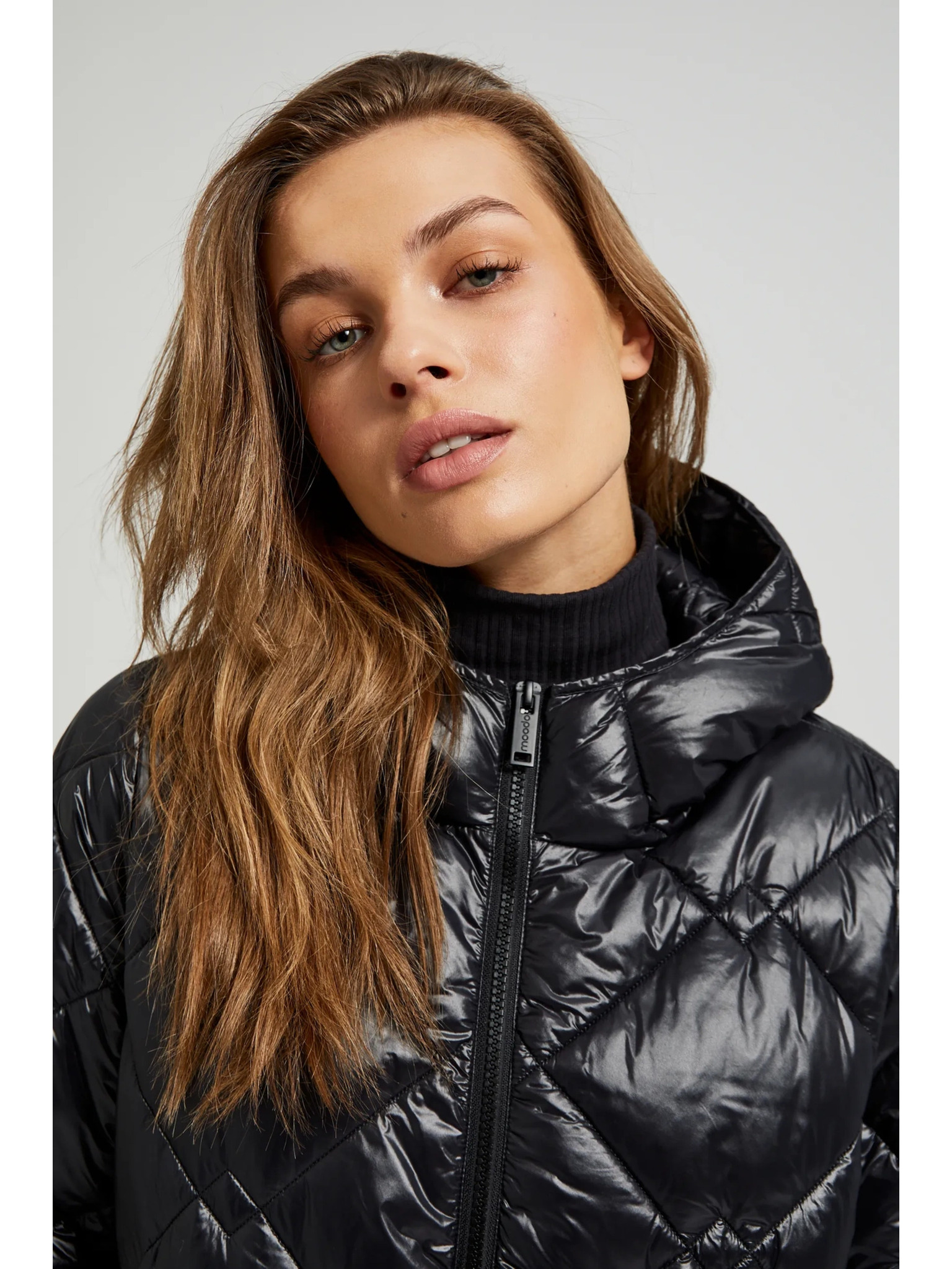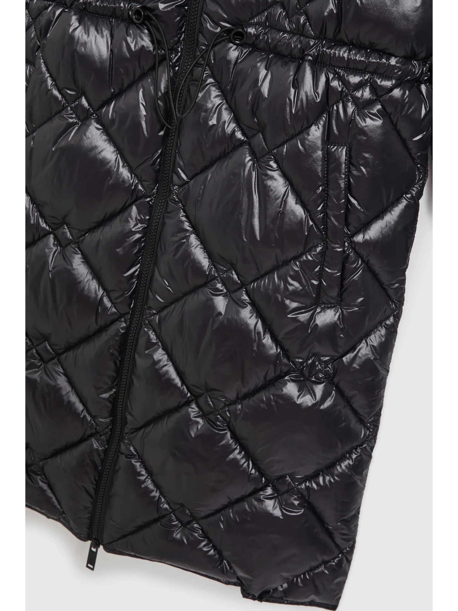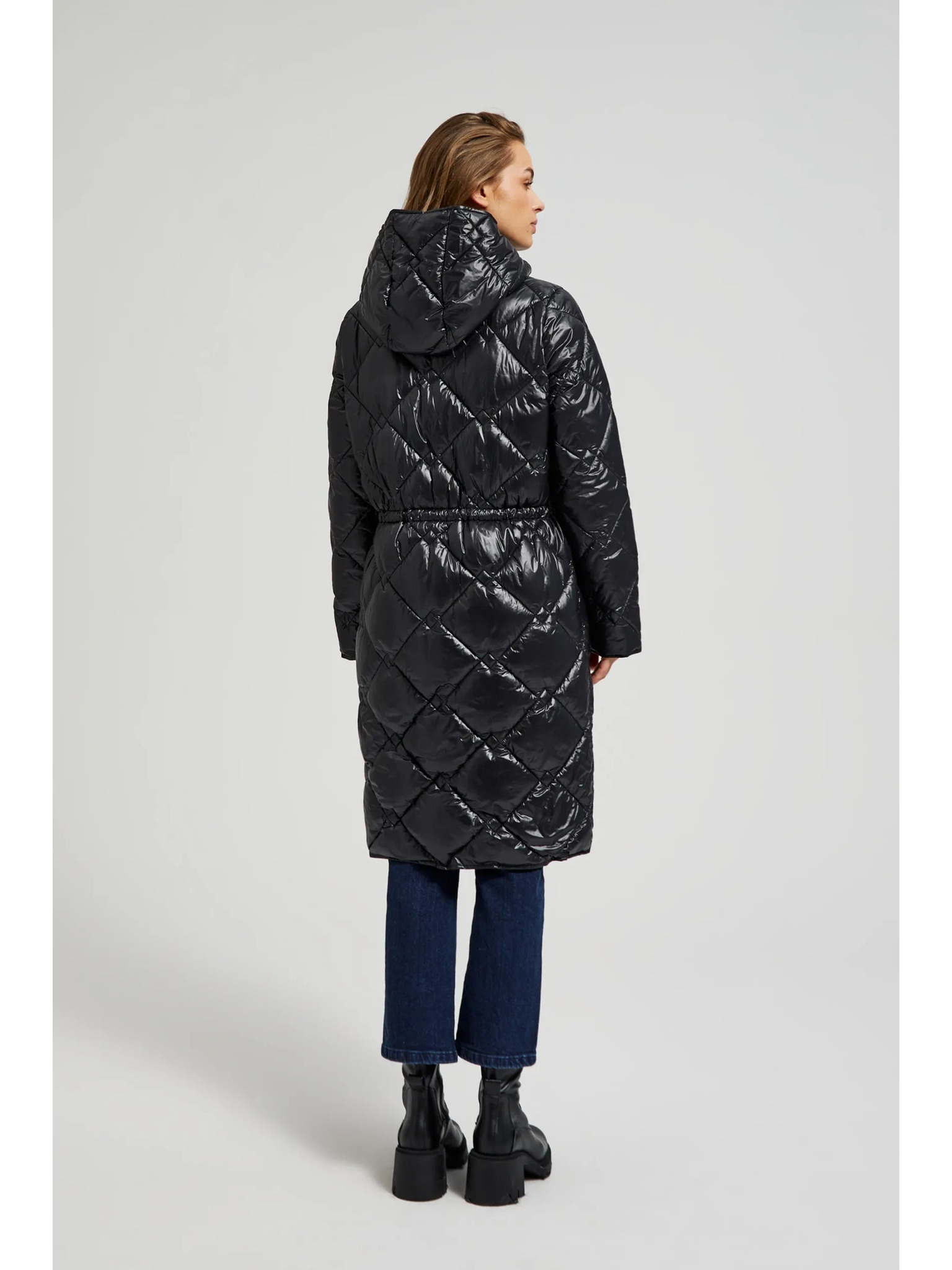 Дълго стегнато яке с качулка в черно Moodo
