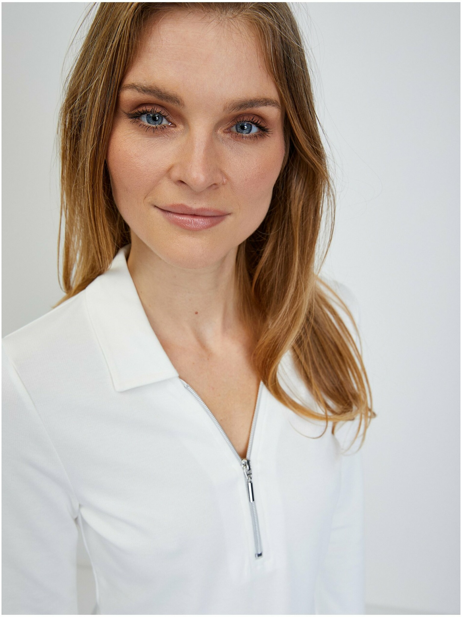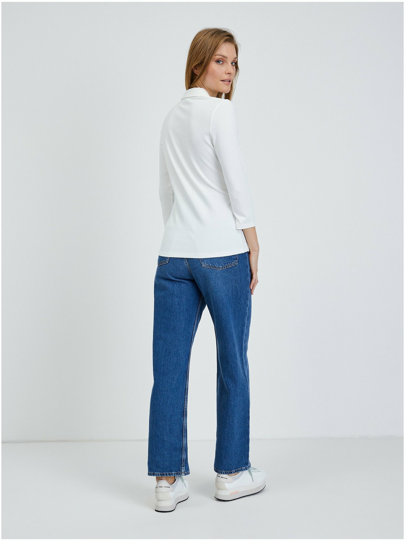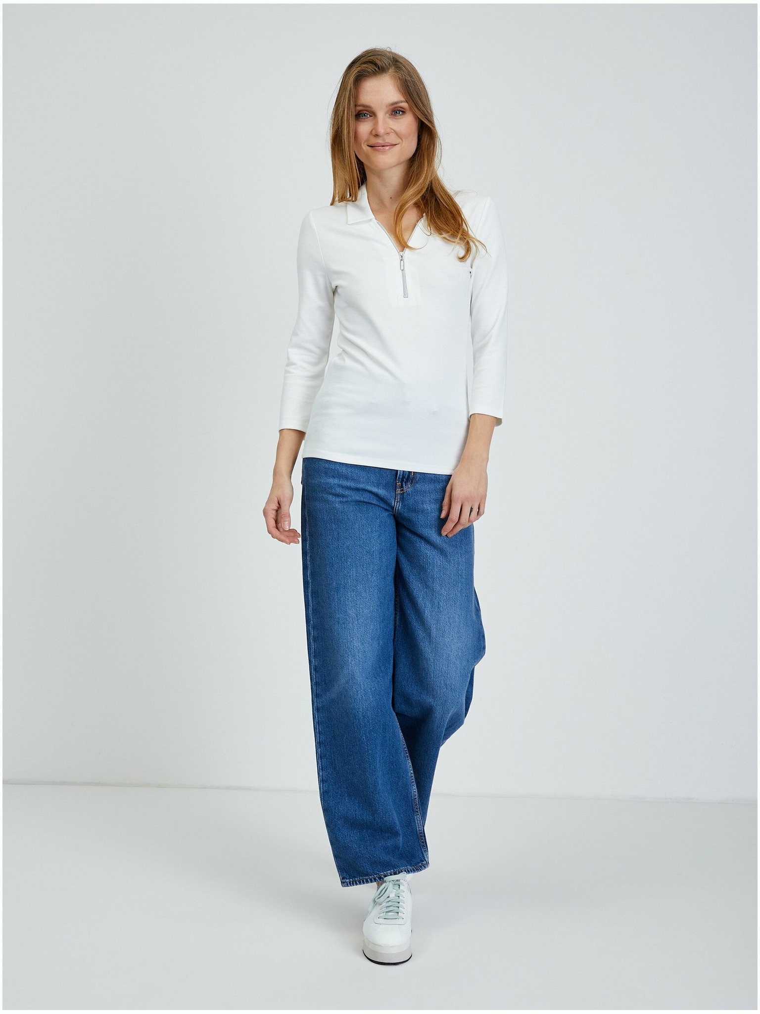 Прилепнала бяла блуза с дълъг ръкав Moodo