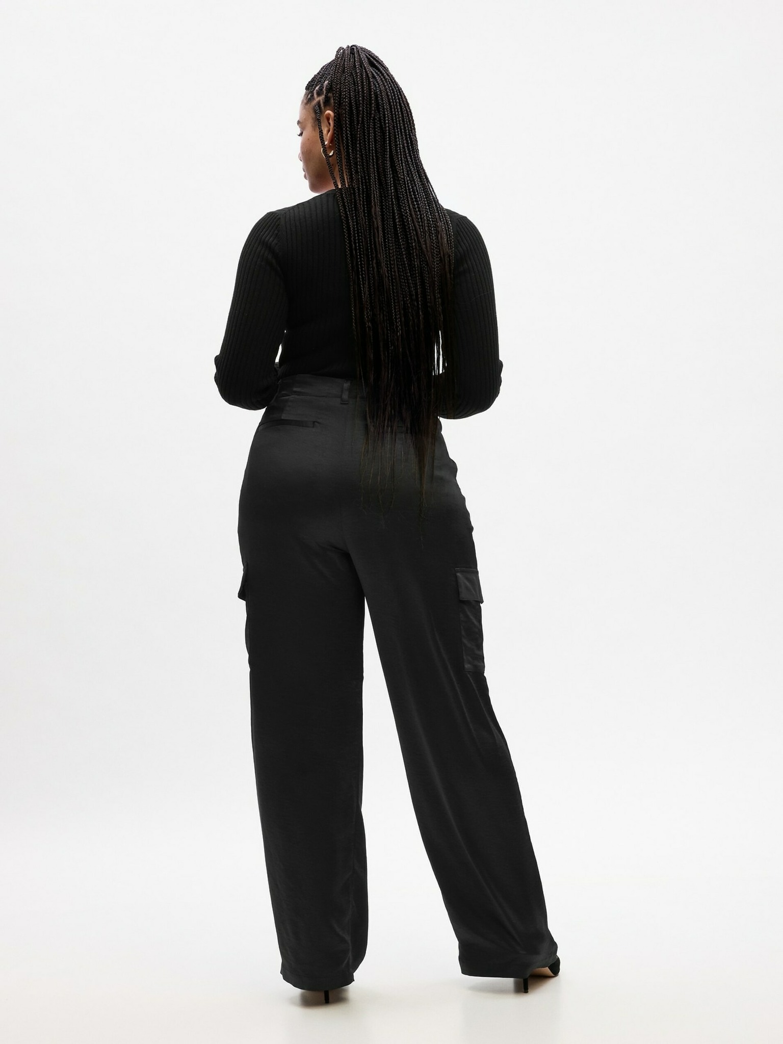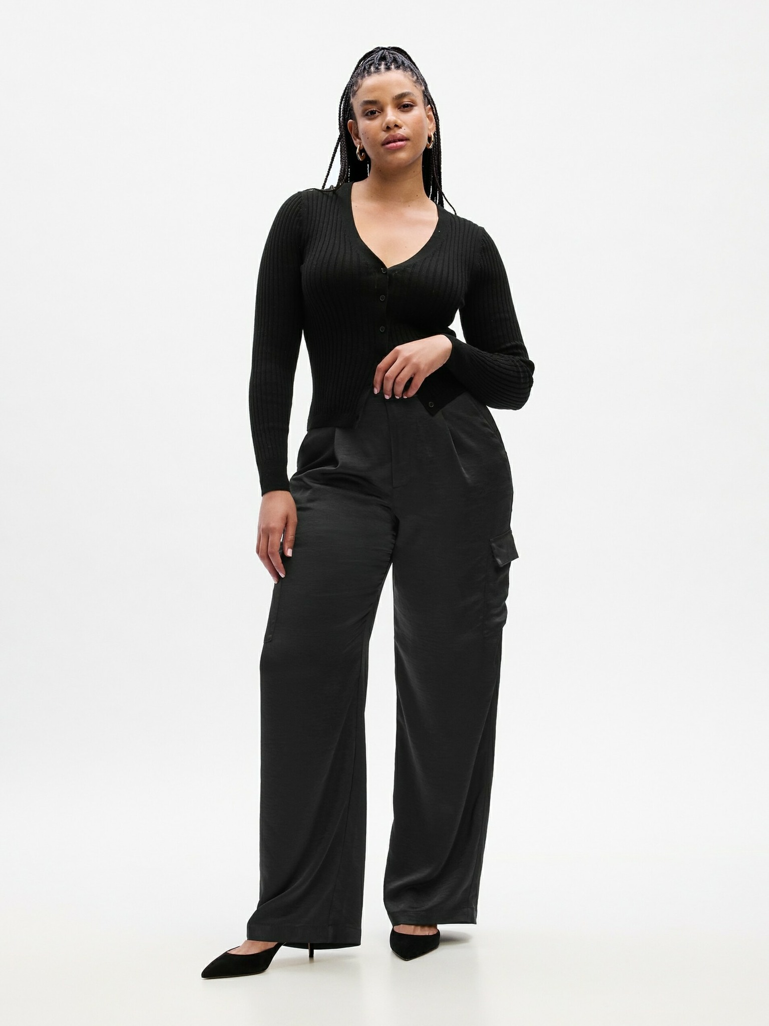 Черни панталони с широки крачоли от ребрест материал Moodo