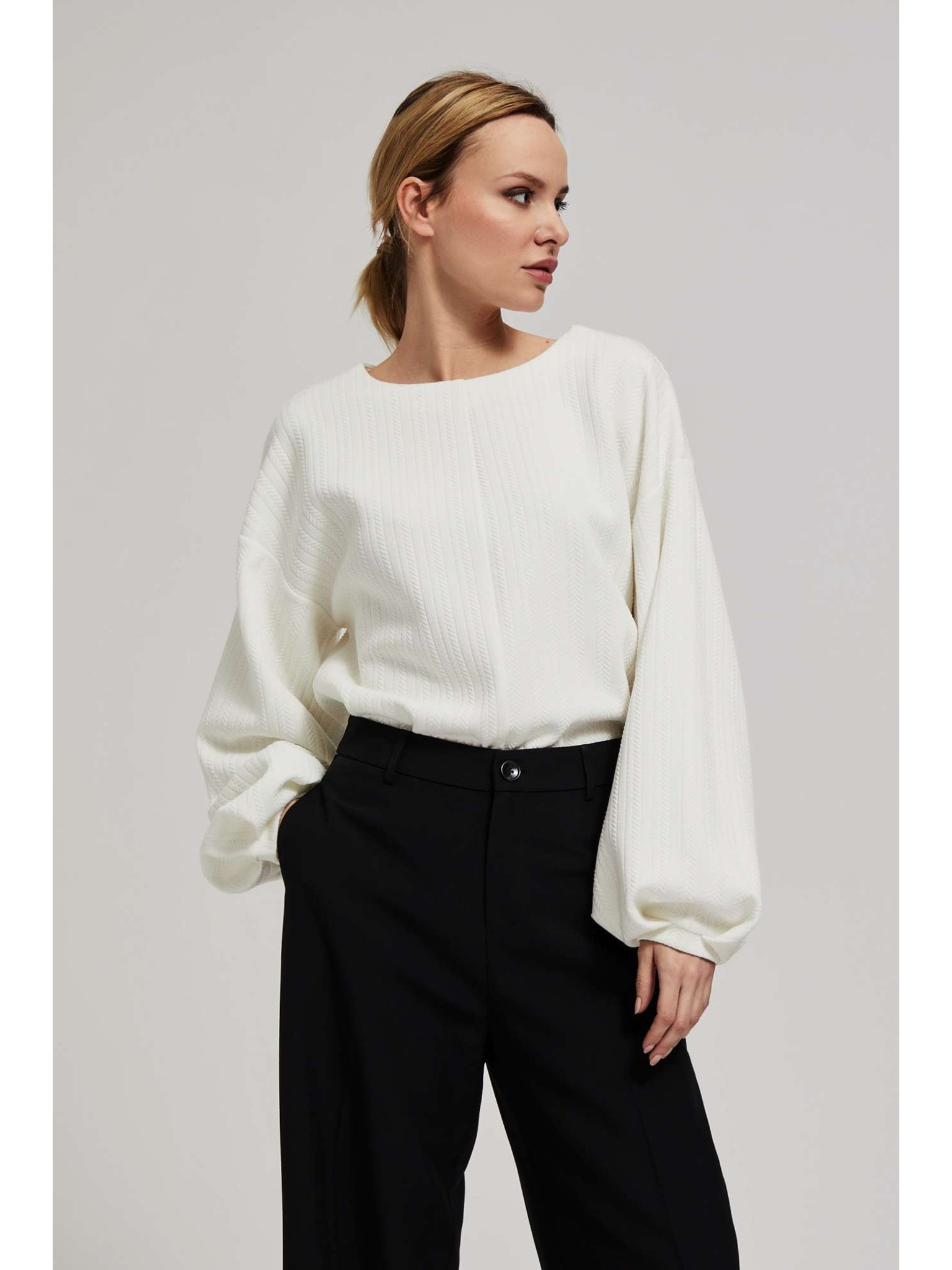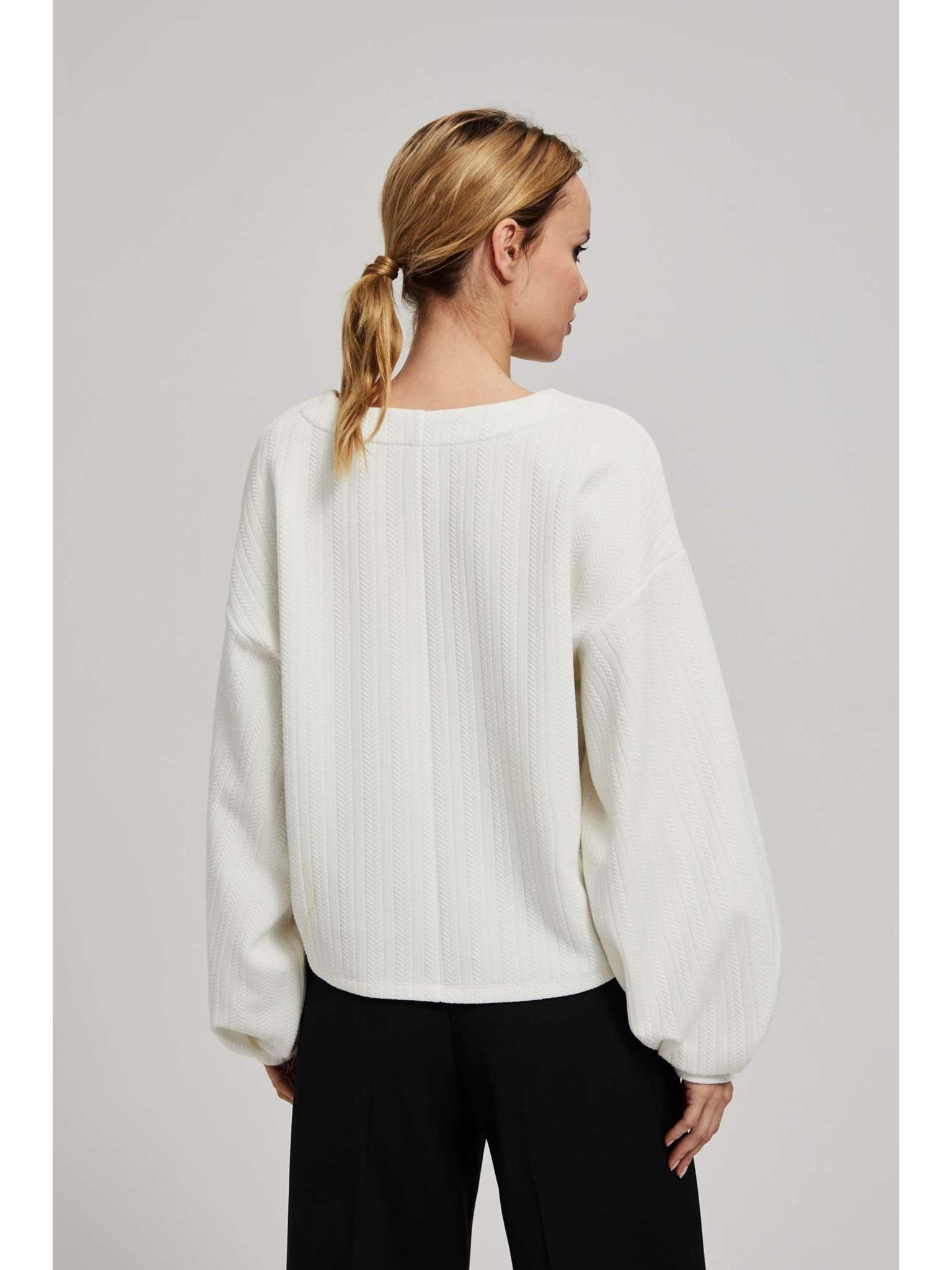 Суитшърт от структуриран материал бял Moodo