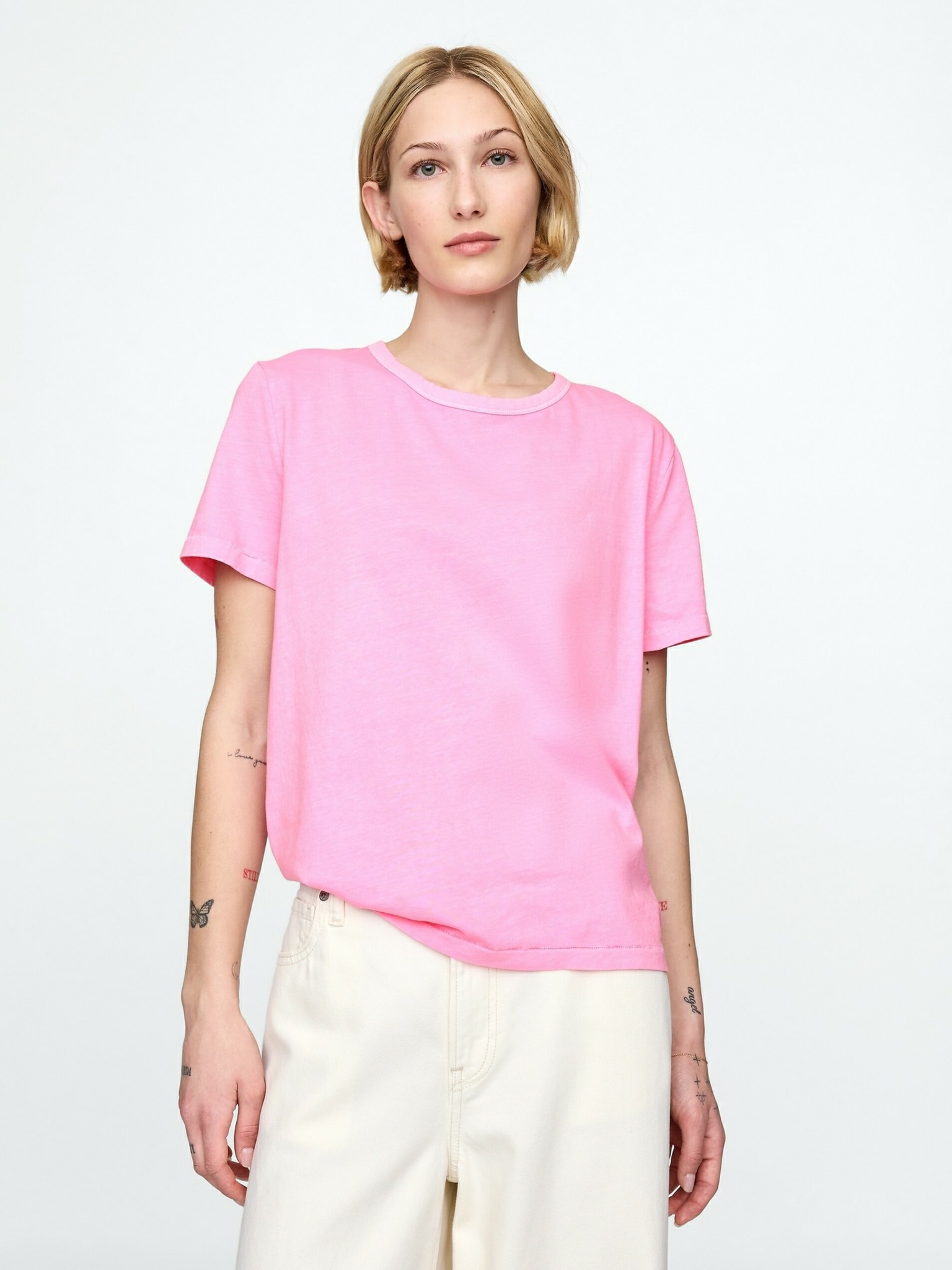 Розова тениска с V-образно деколте Moodo