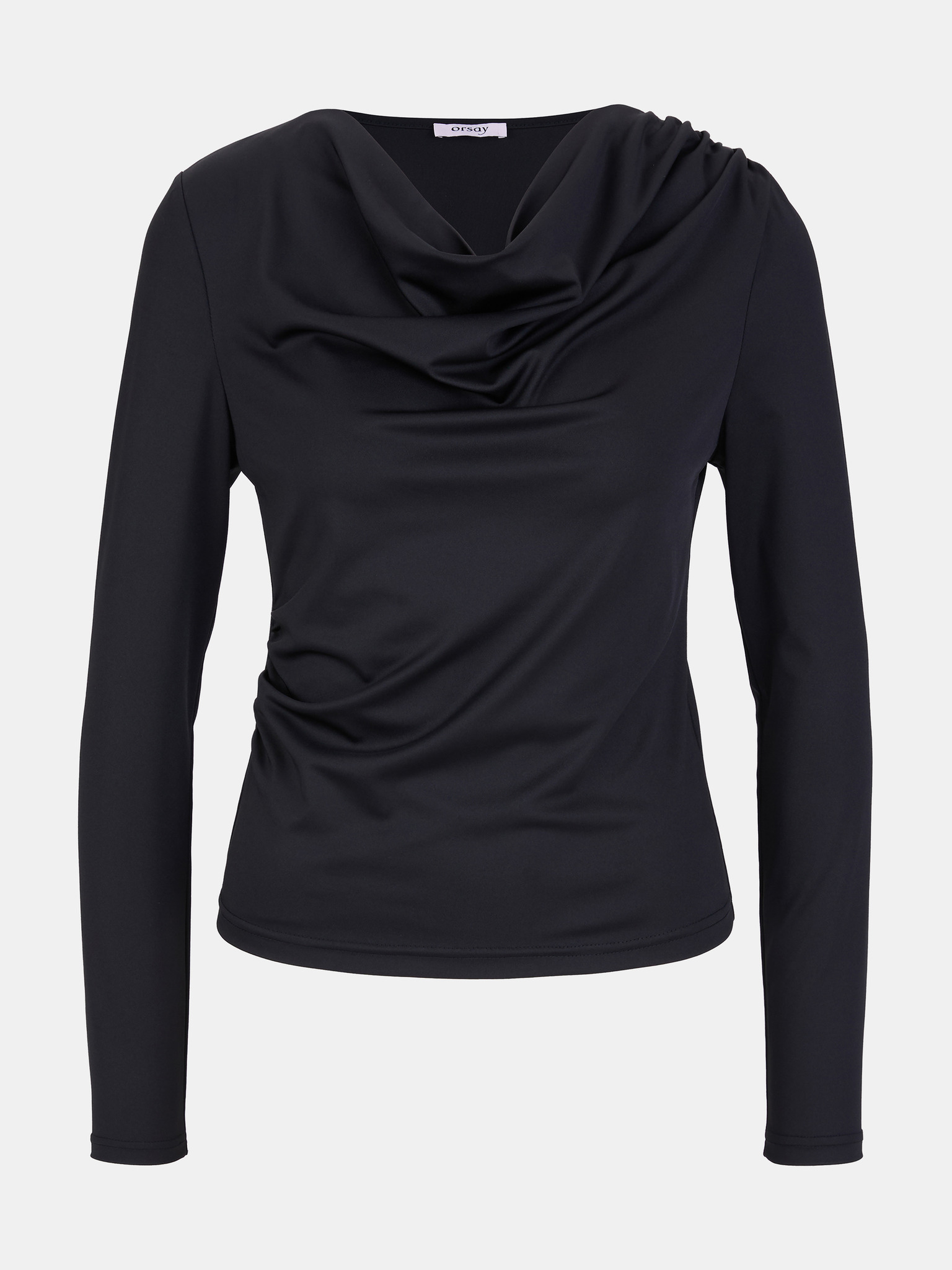 Черна блуза с набрано деколте и дълъг ръкав