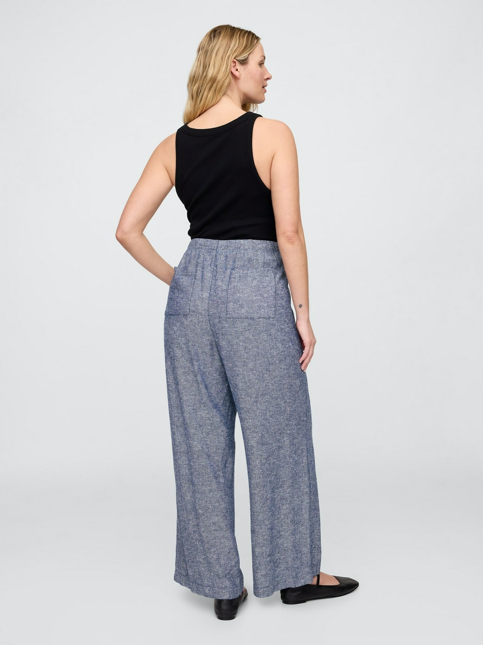 Широки ленени панталони GAP