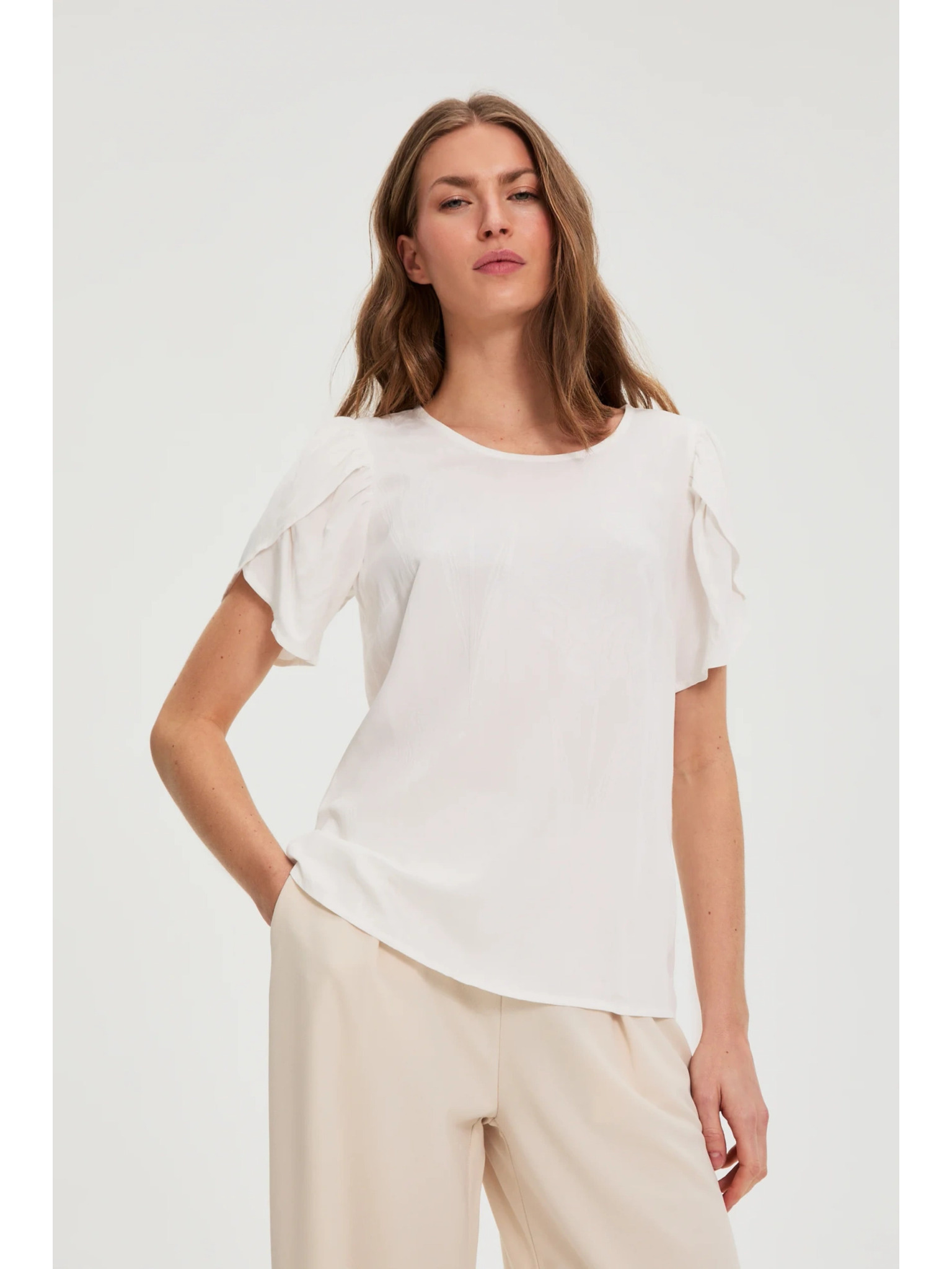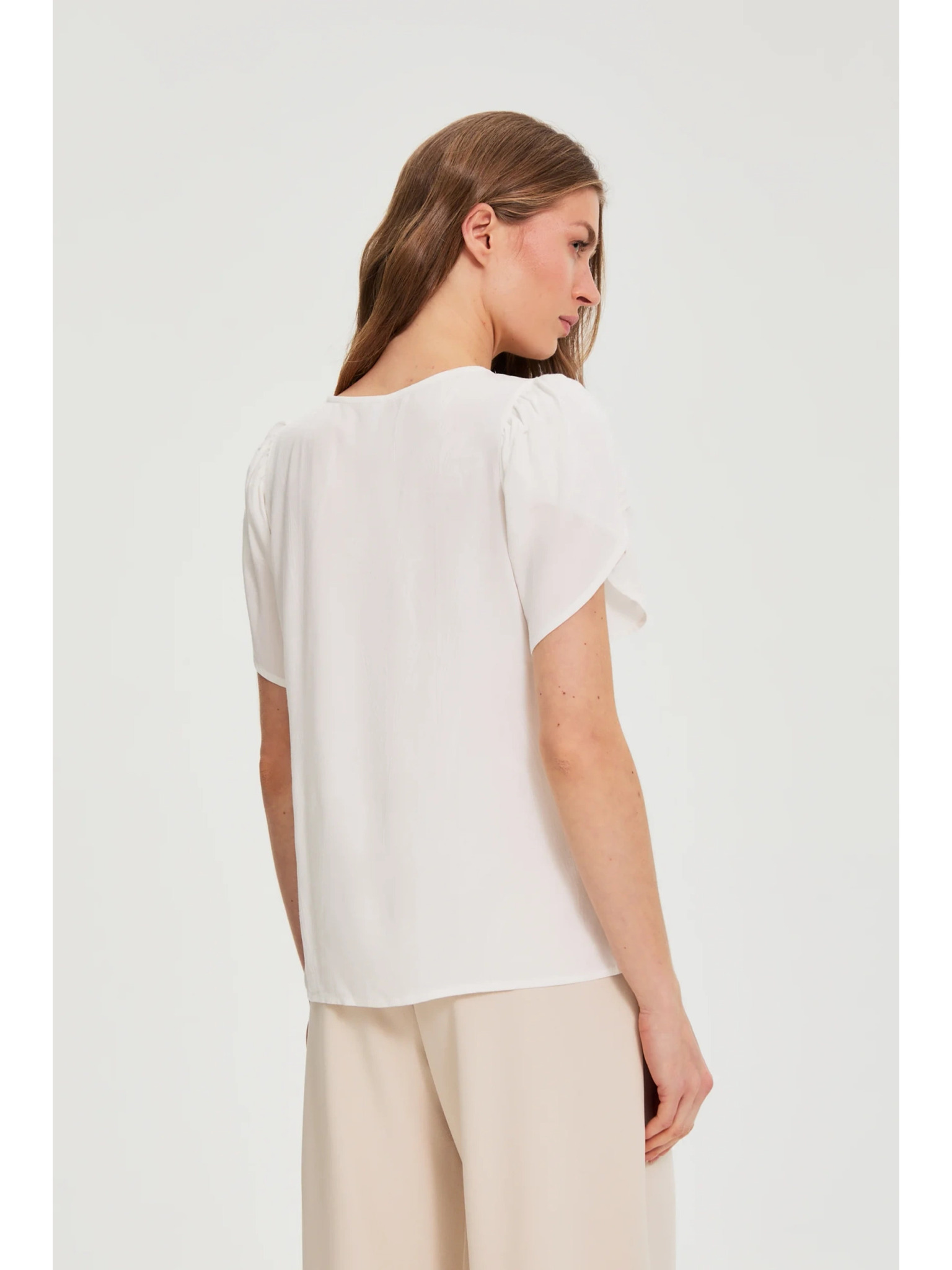 Бяла блуза с къс ръкав