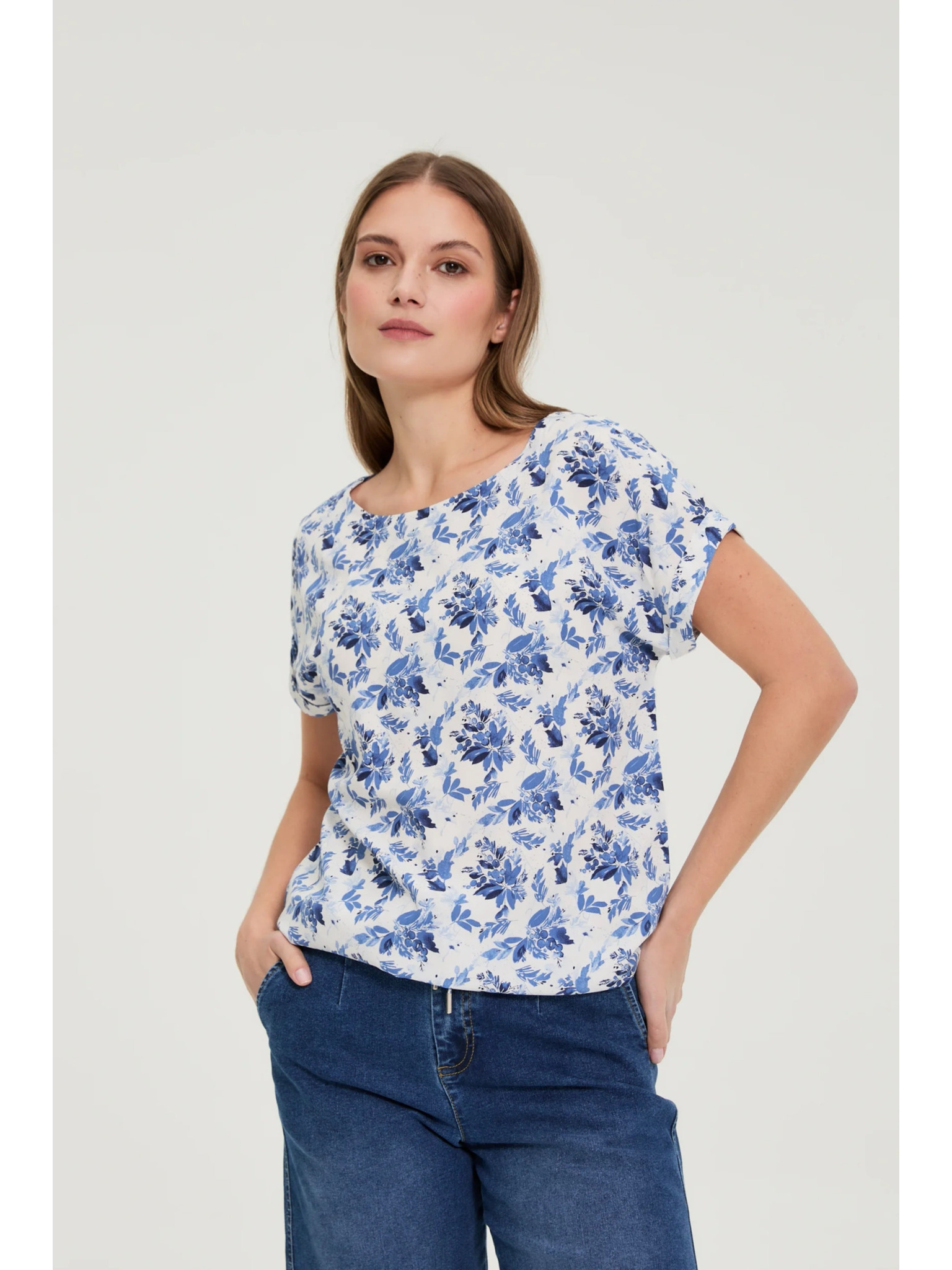 Дамска риза Moodo – бяла/синя
