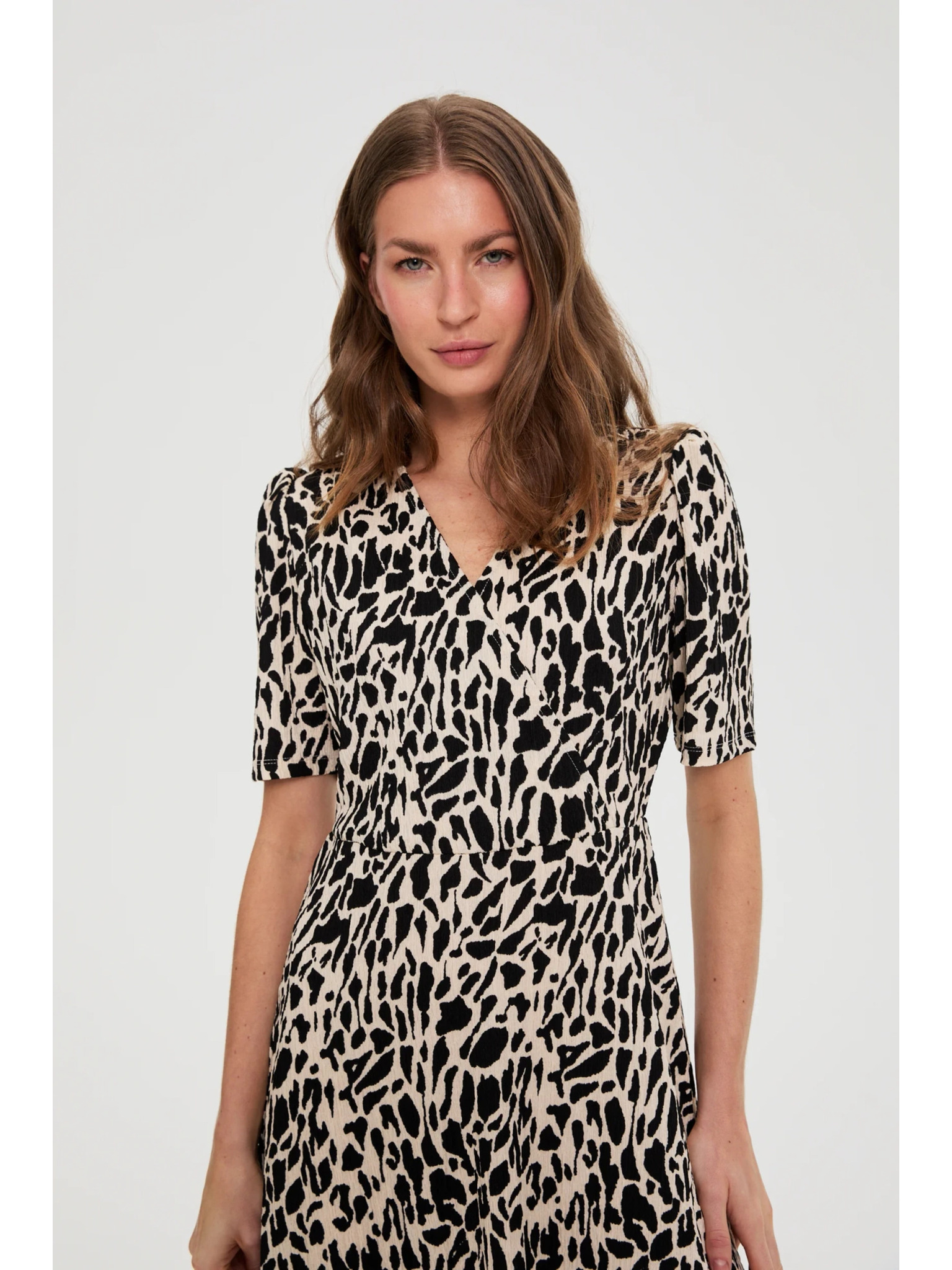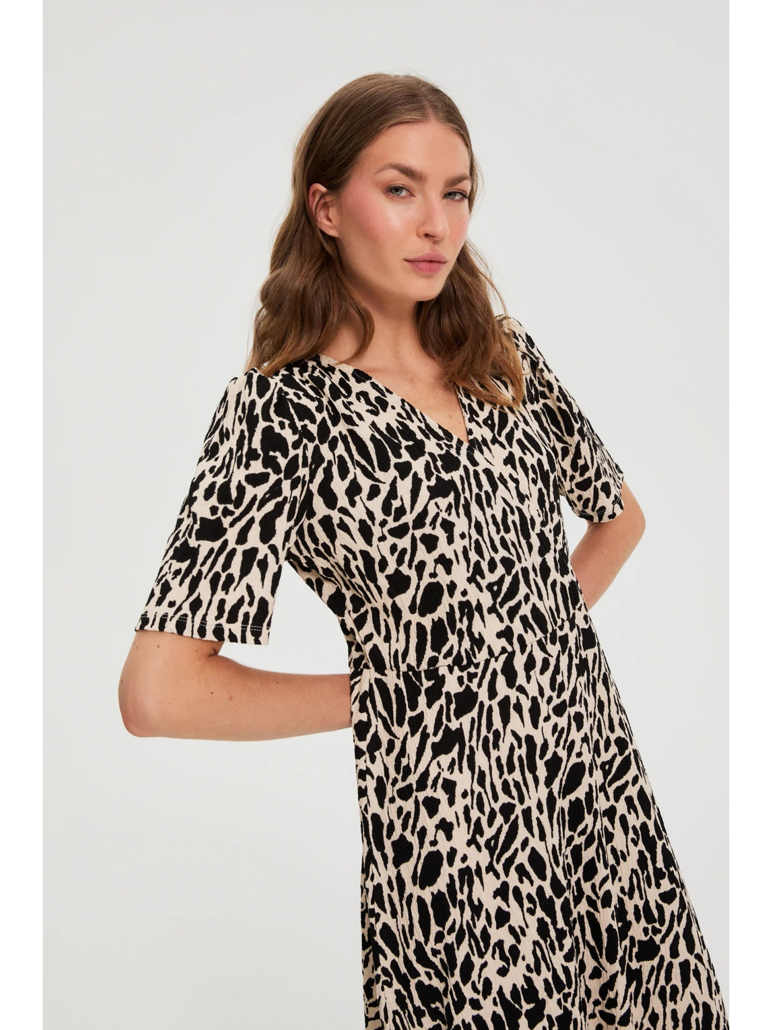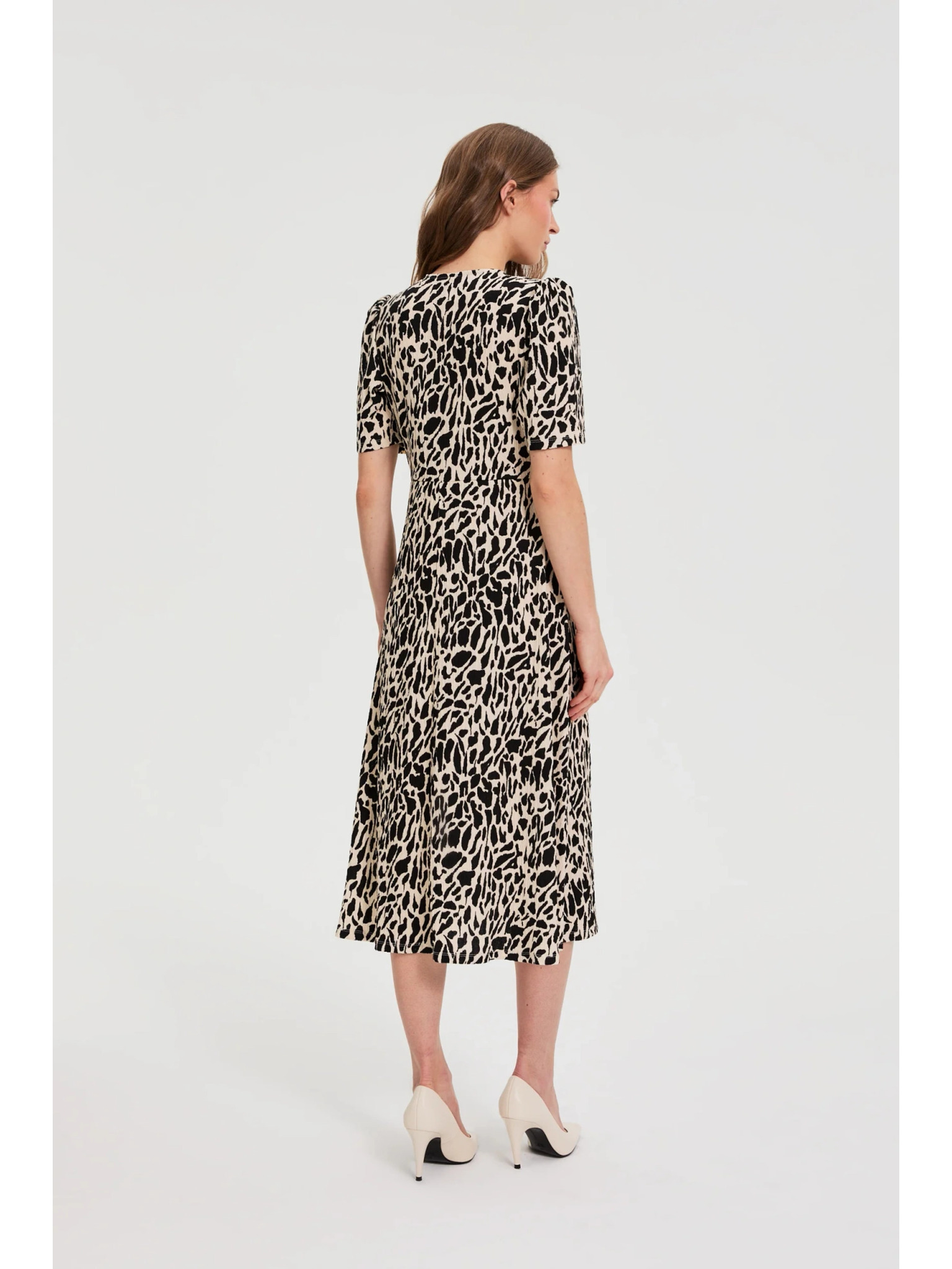 Бежово-кафява дамска рокля на шарки Moodo