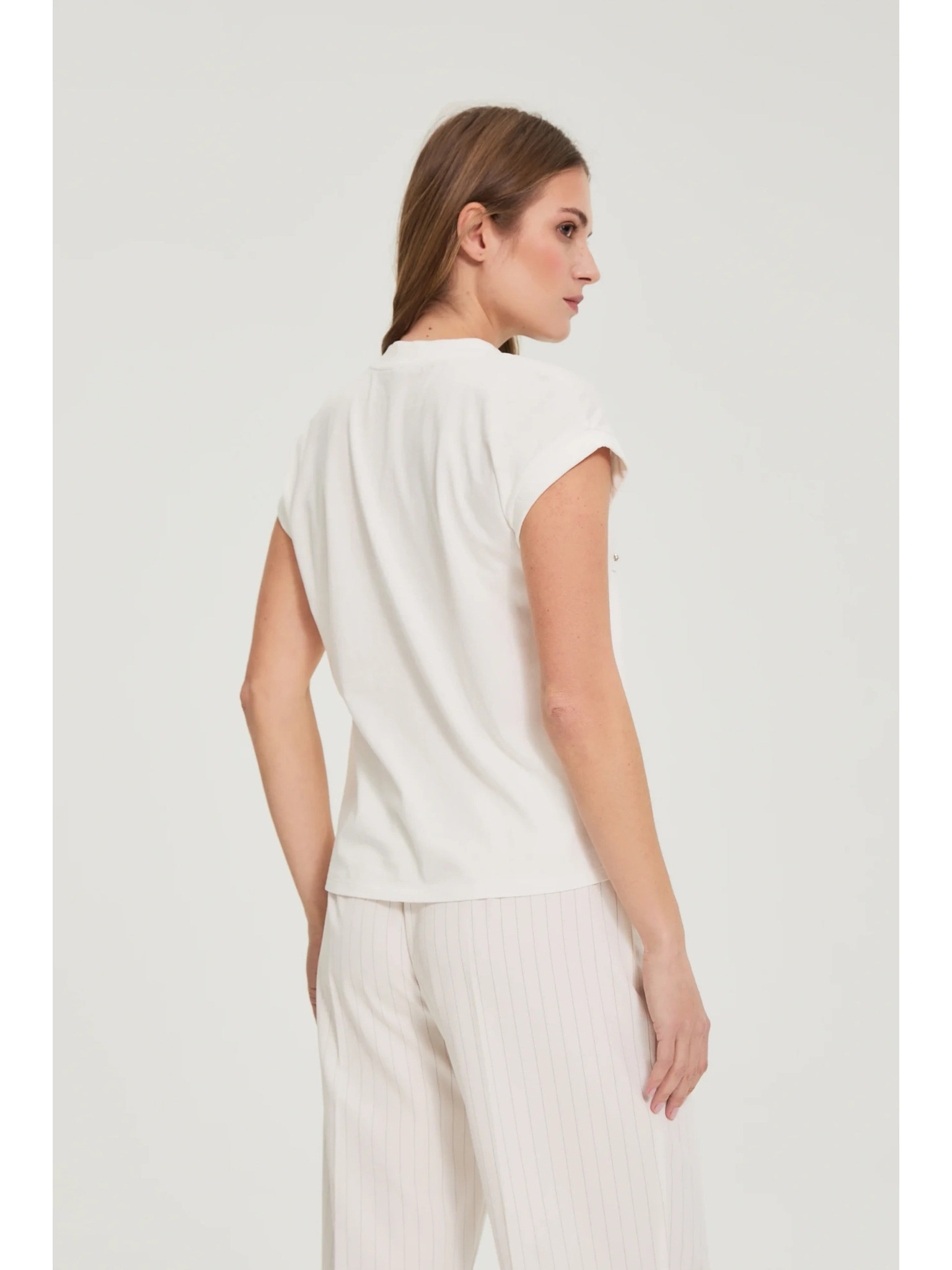 Памучна блуза с V деколте бяла Moodo