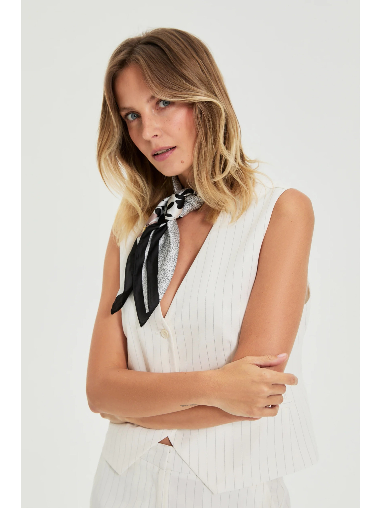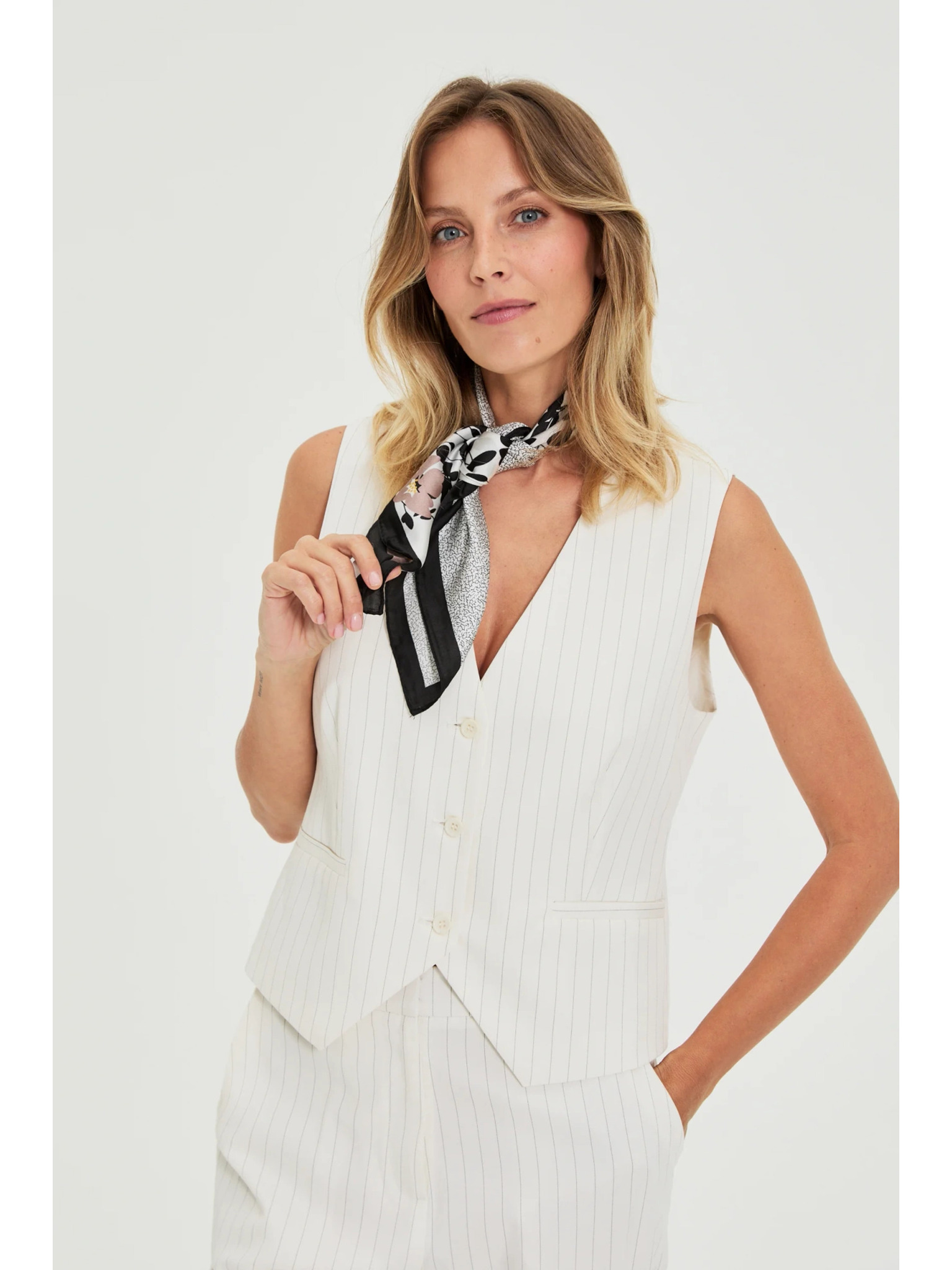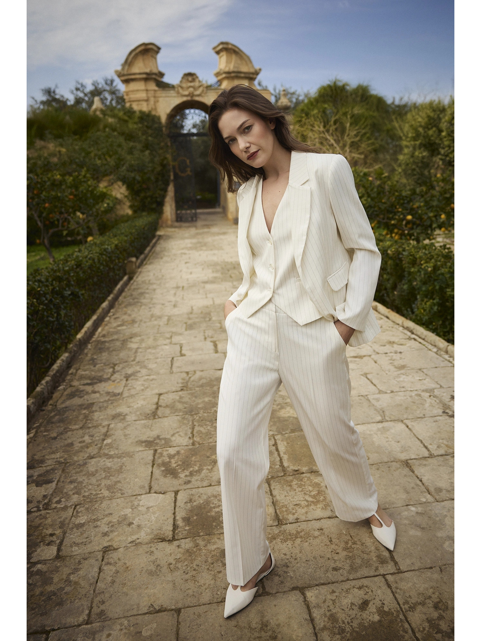 Бяло вискозно сако с ивици Moodo