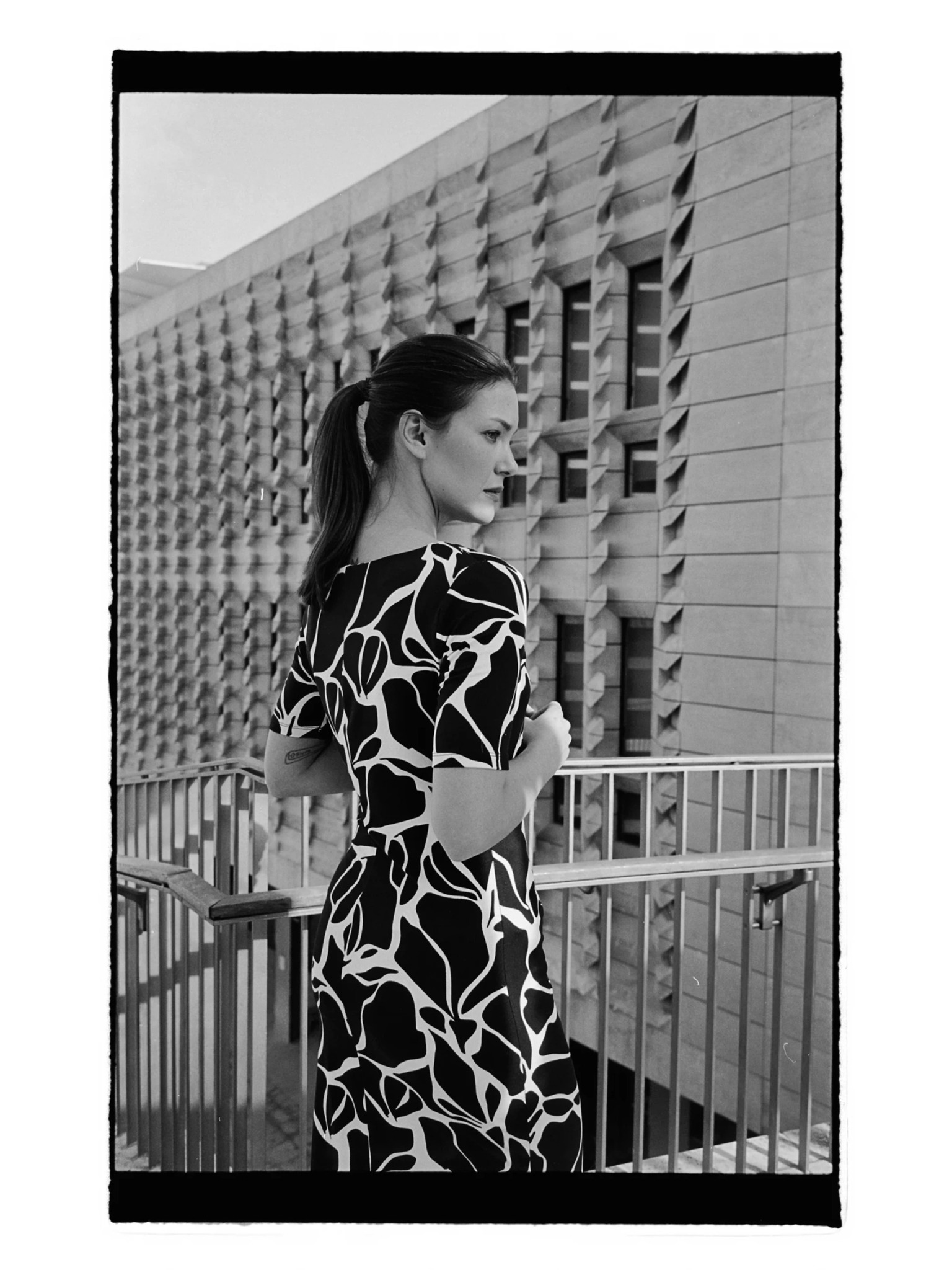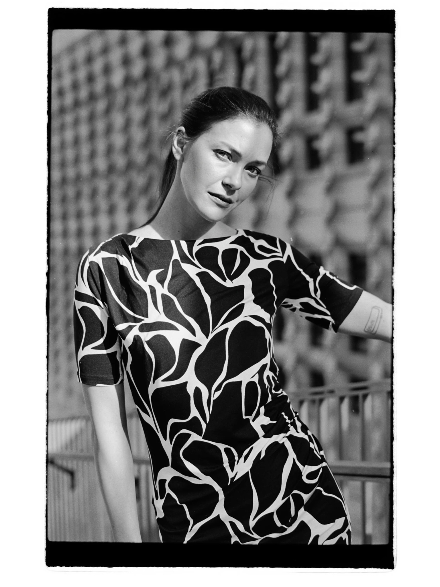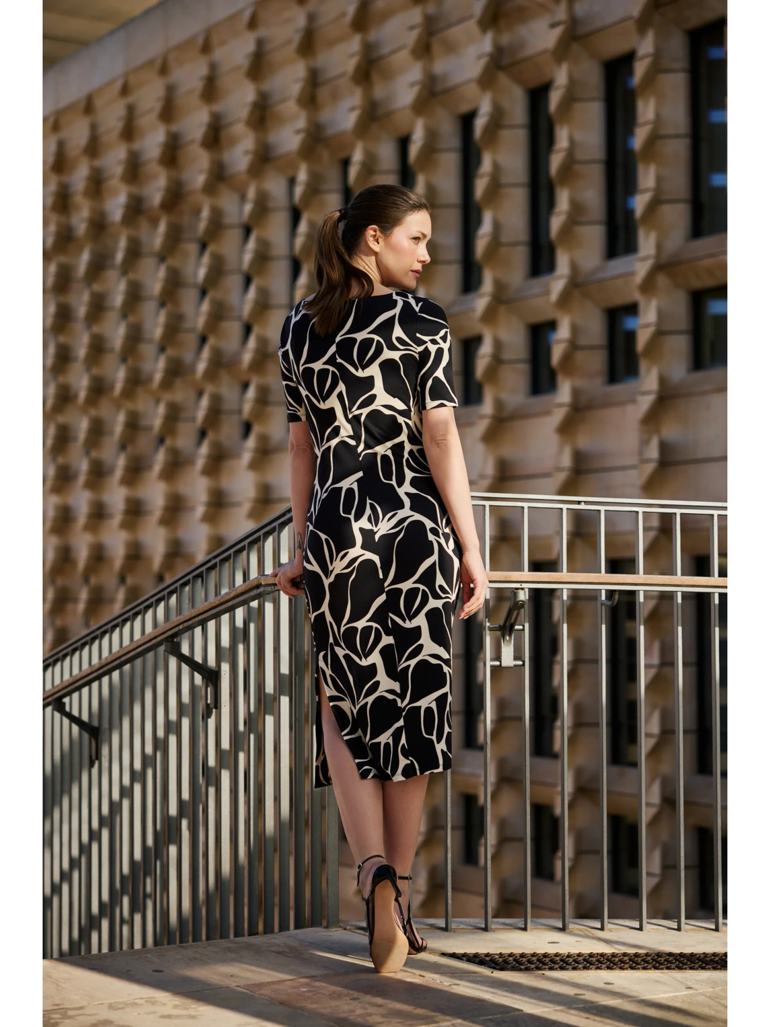 Бежово-кафява дамска рокля на шарки Moodo