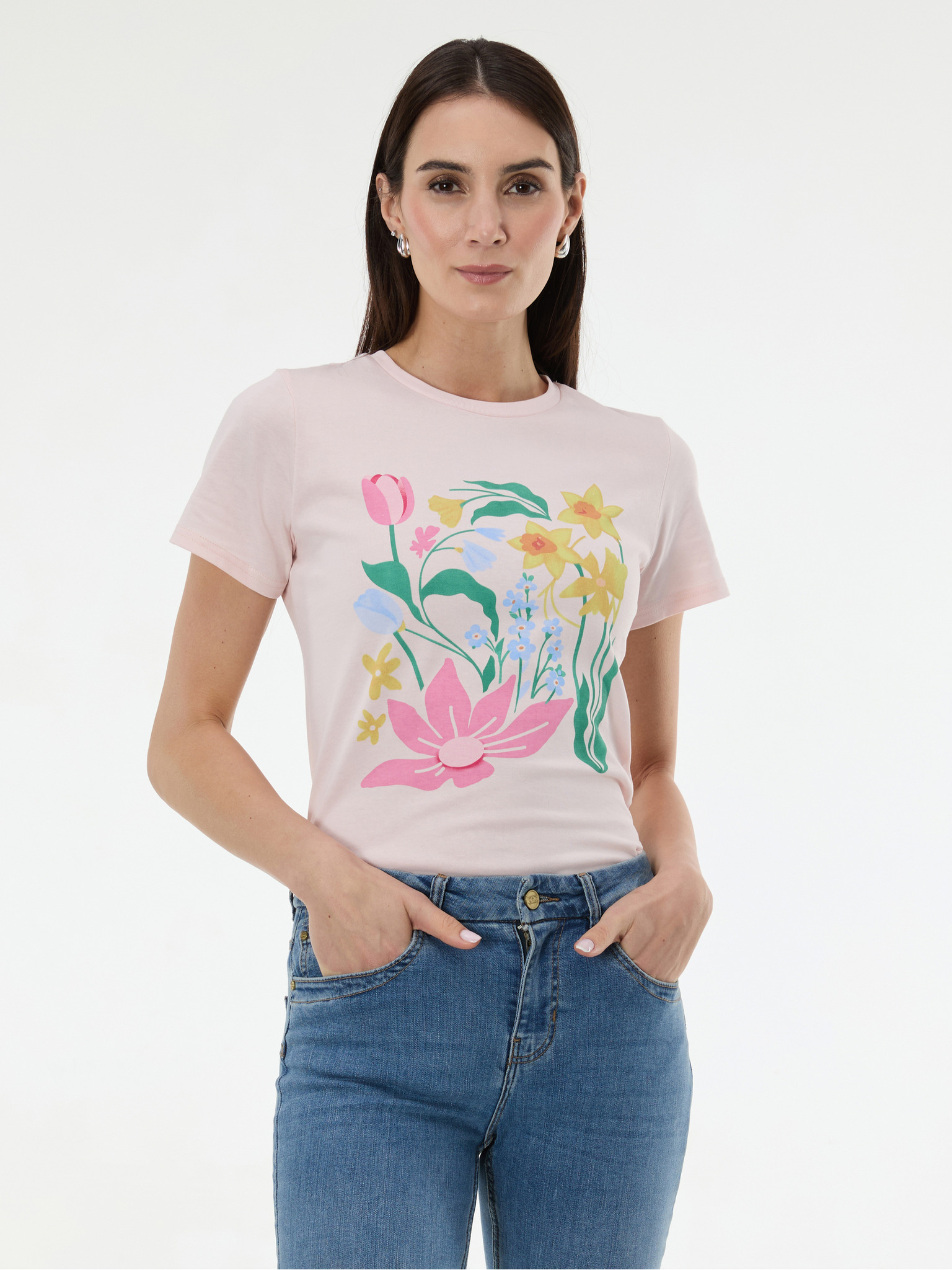 Светлорозова дамска тениска с принт ORSAY