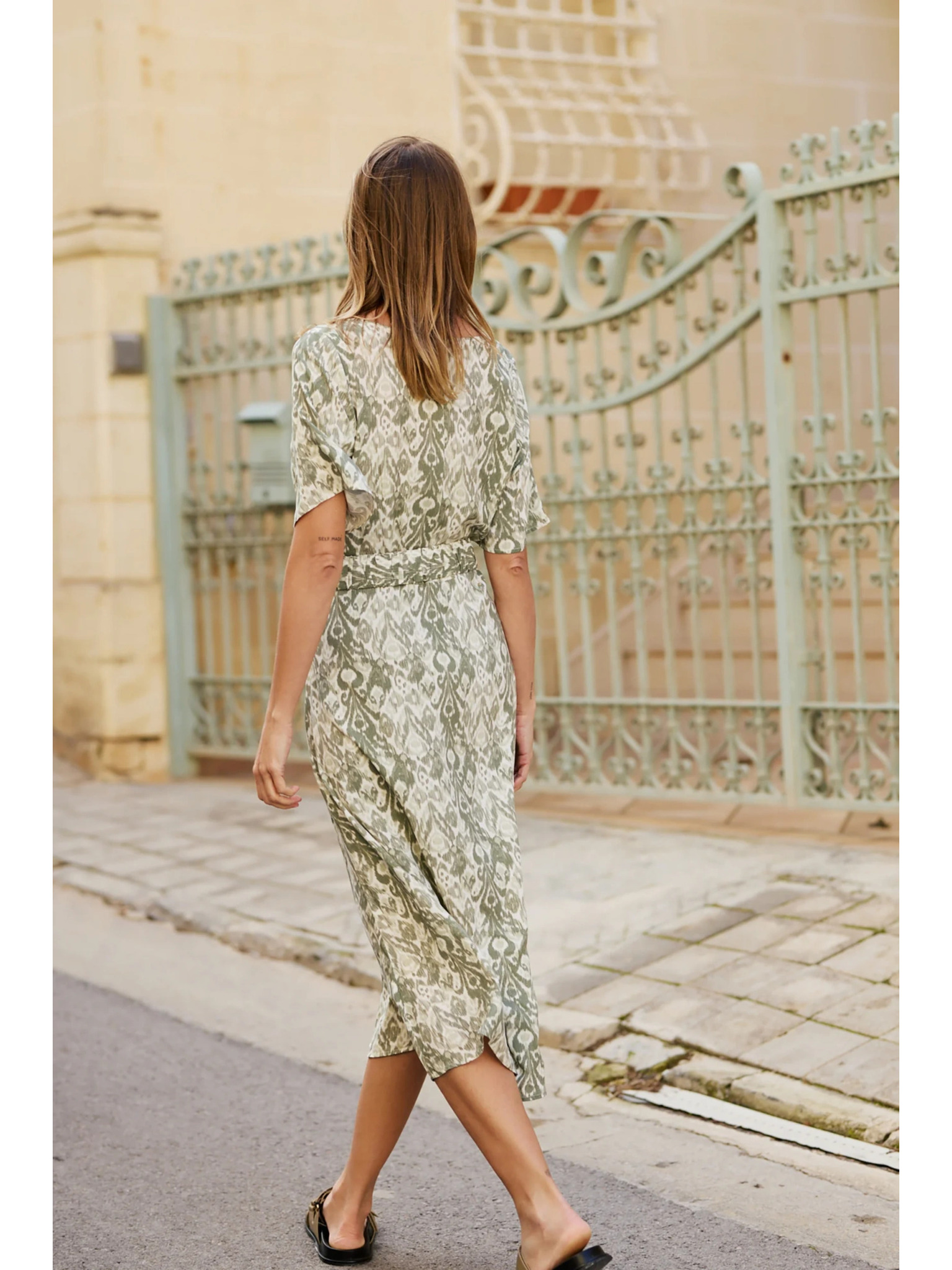 Зелена шарена рокля Moodo