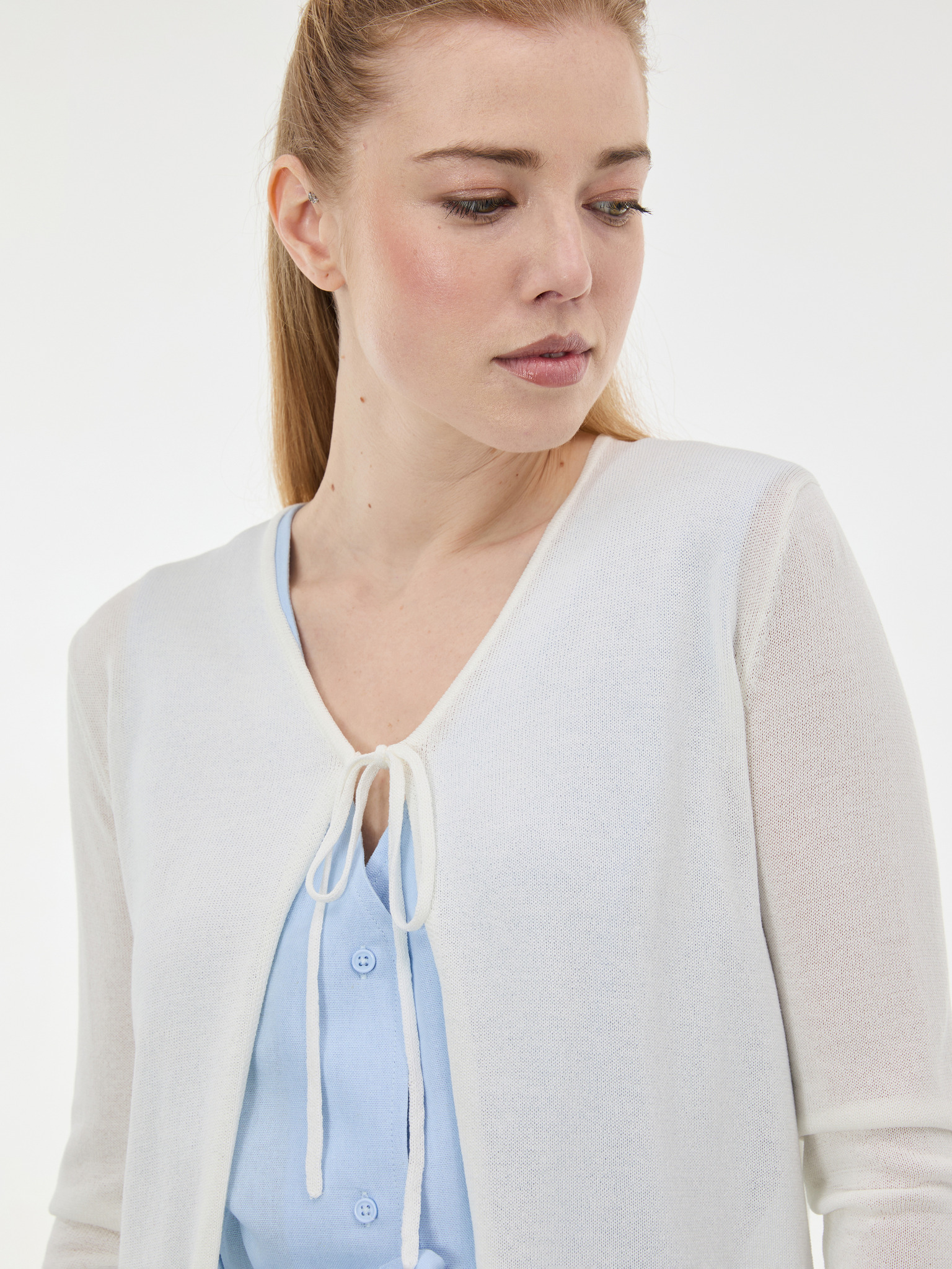 Раиран кардиган в цвят екрю Moodo