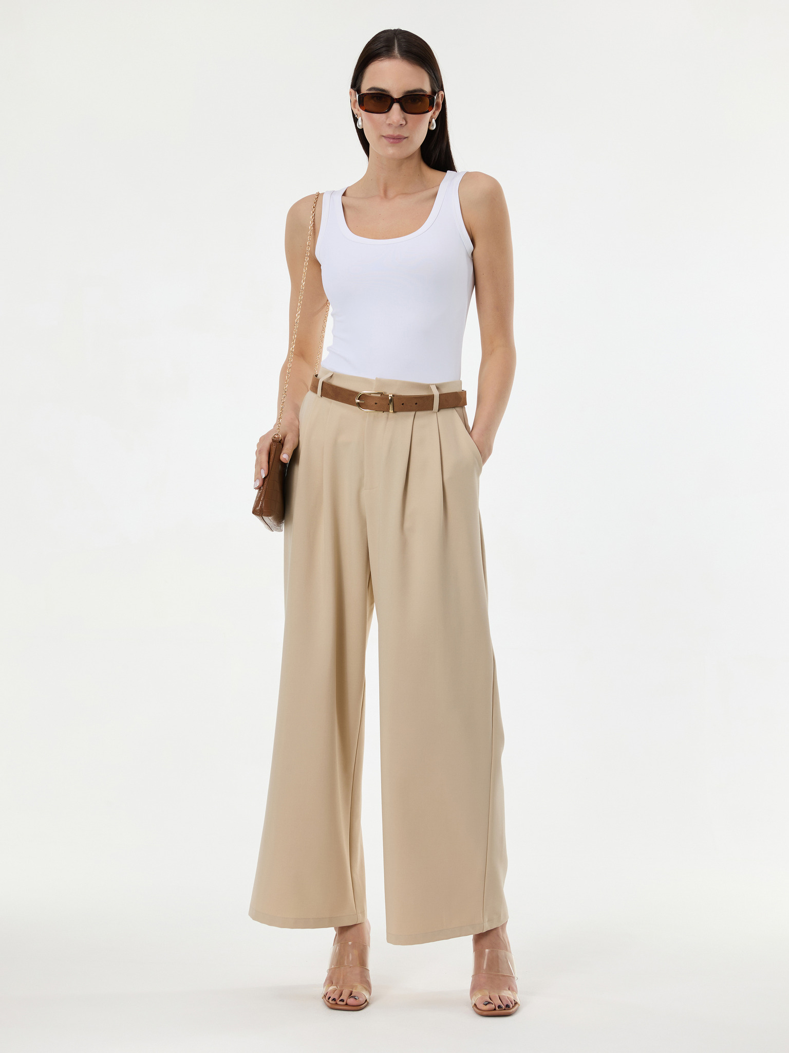 Бежов дамски широк панталон ORSAY