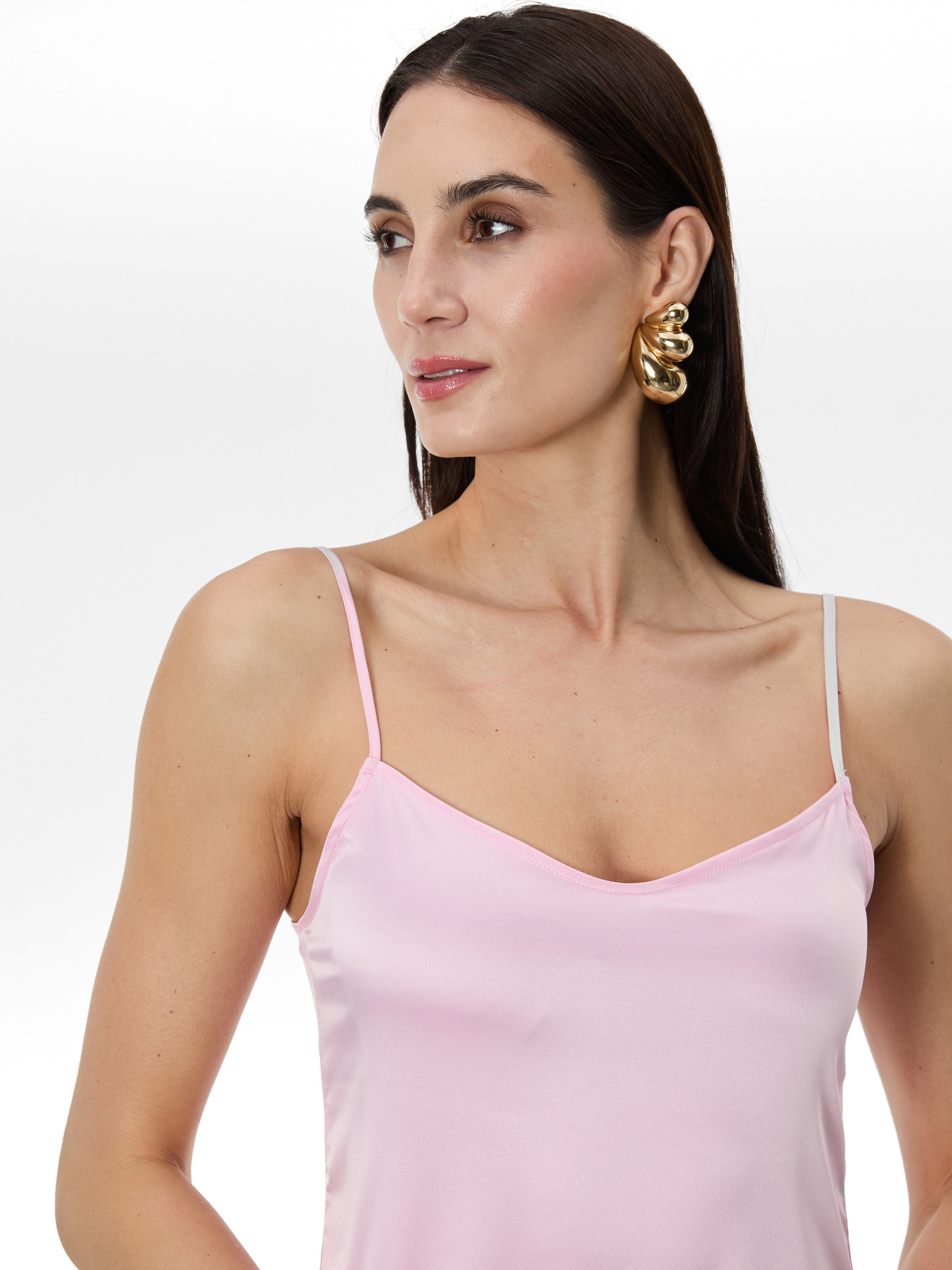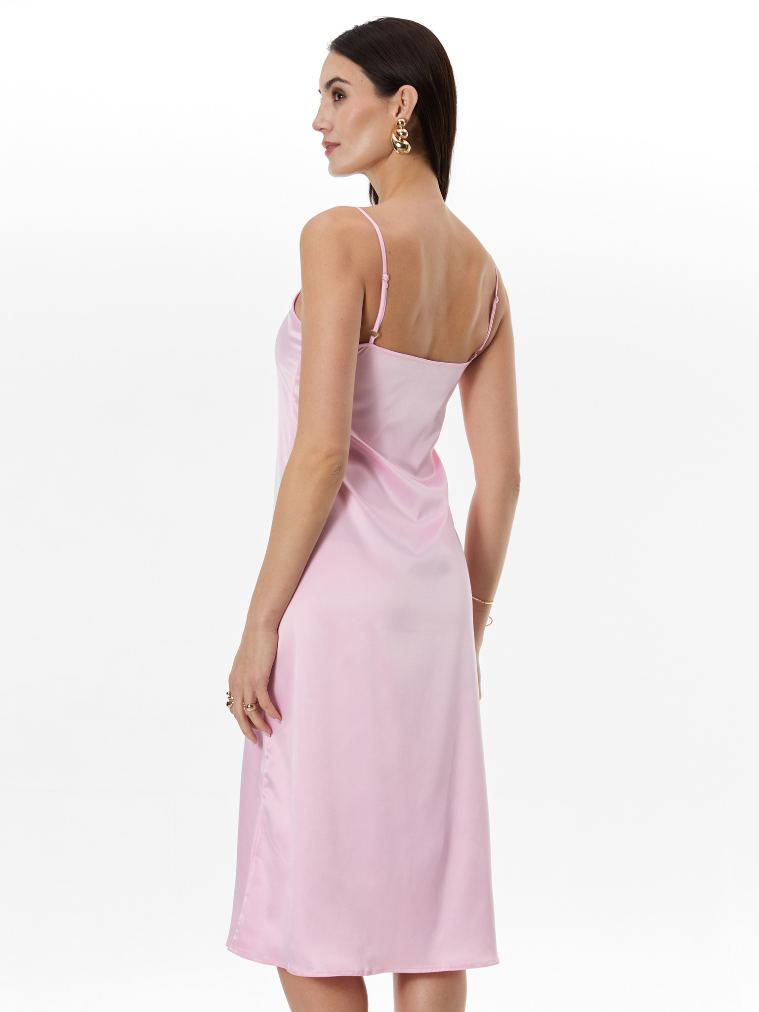 Дамски миди рокли със сърцевиден деколте и тесни презрамки VIENA DLR193 - розови EDOTI