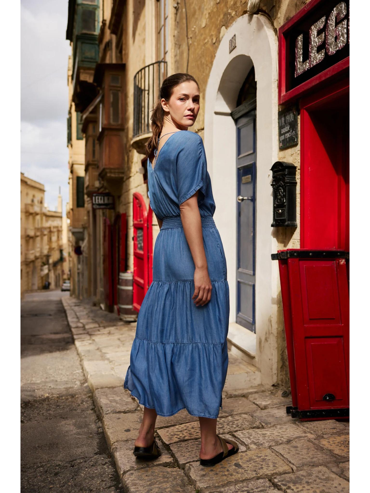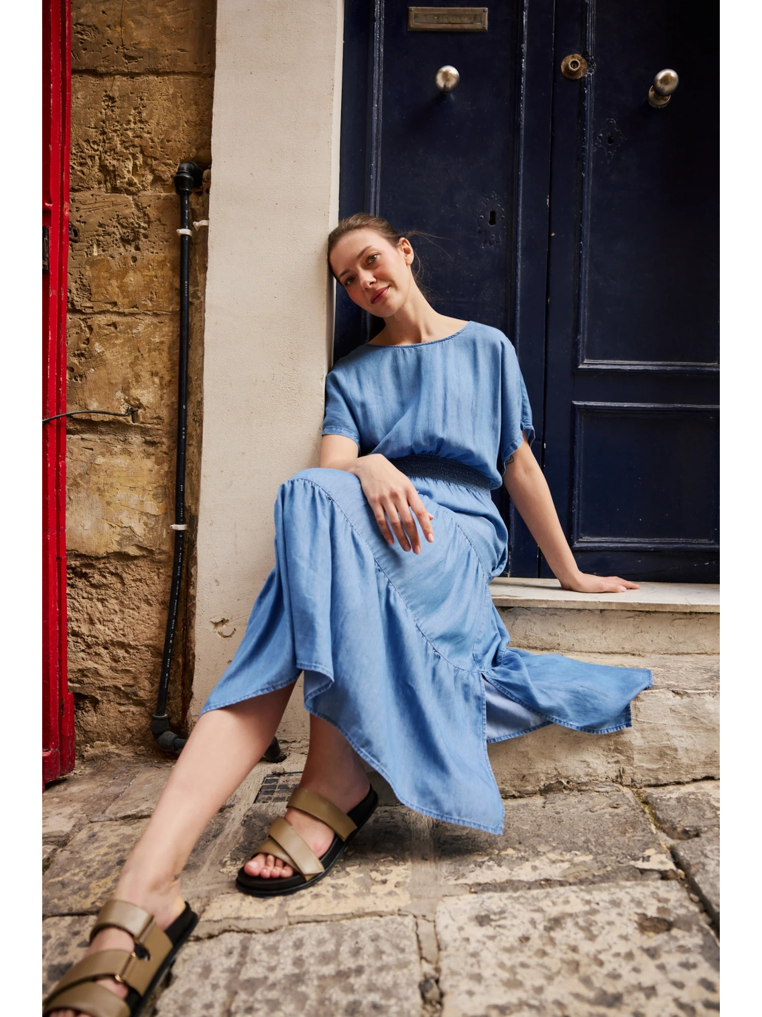 Синя прилепнала миди пола