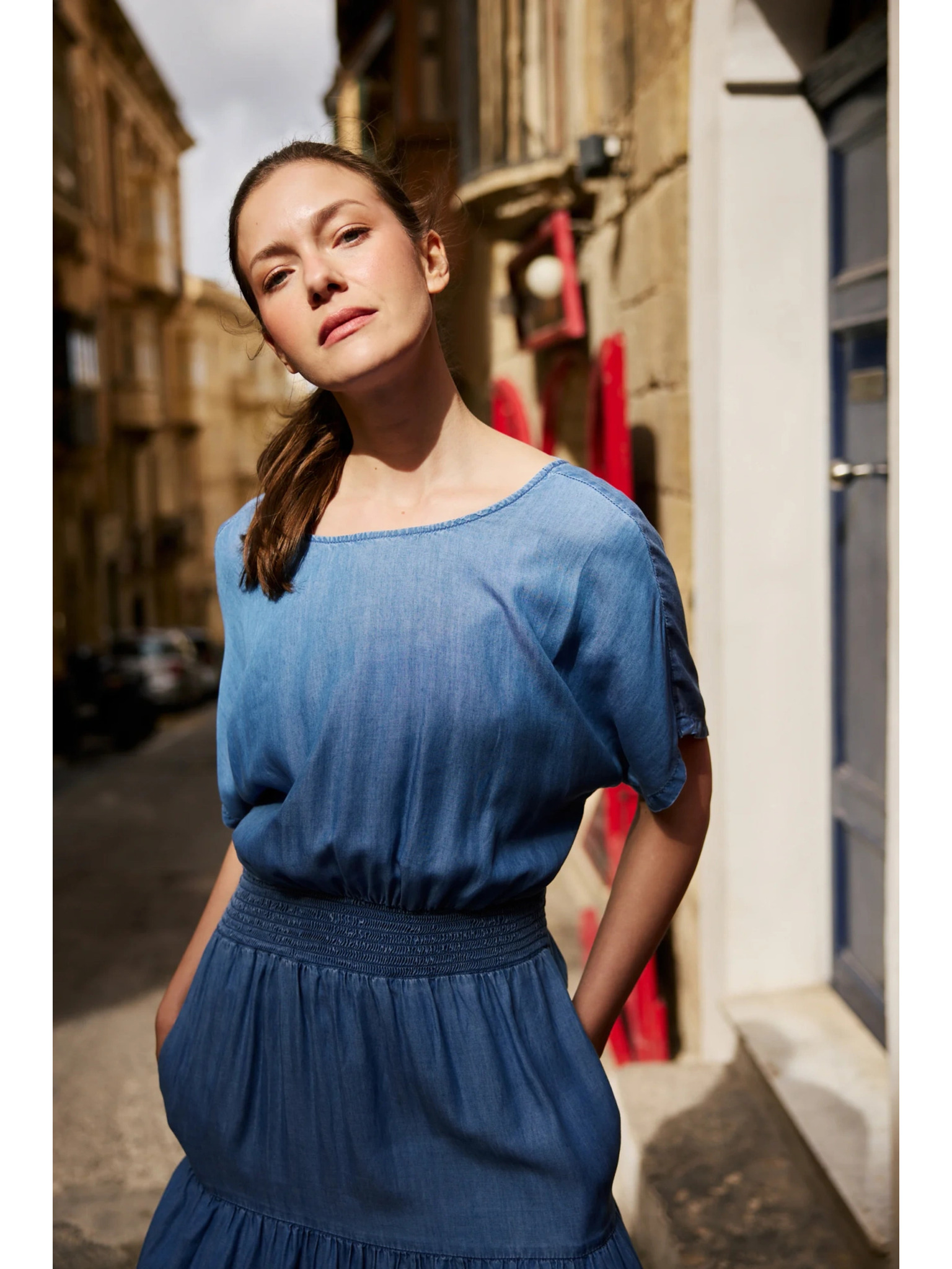 Светлосиня свободна пола