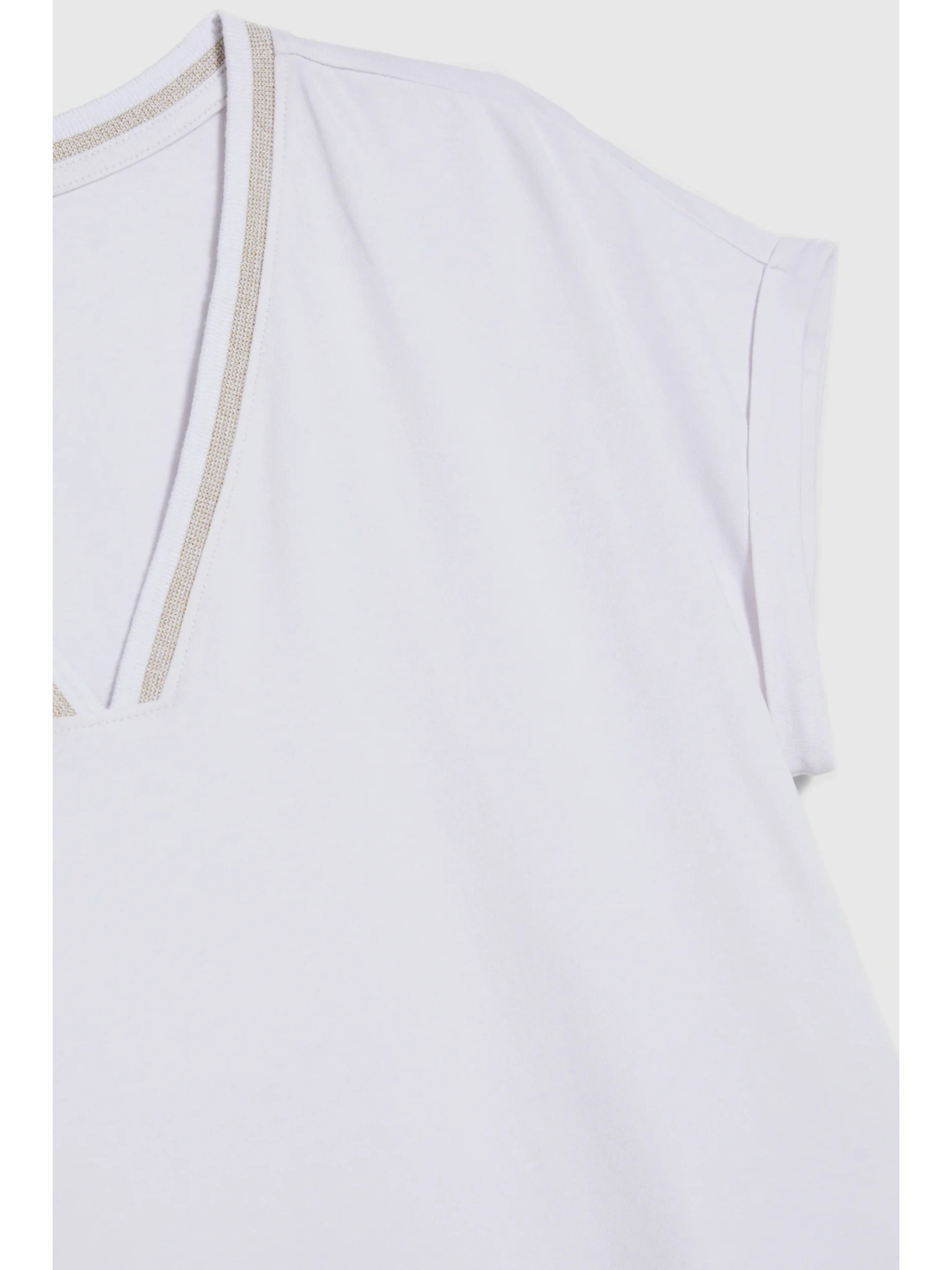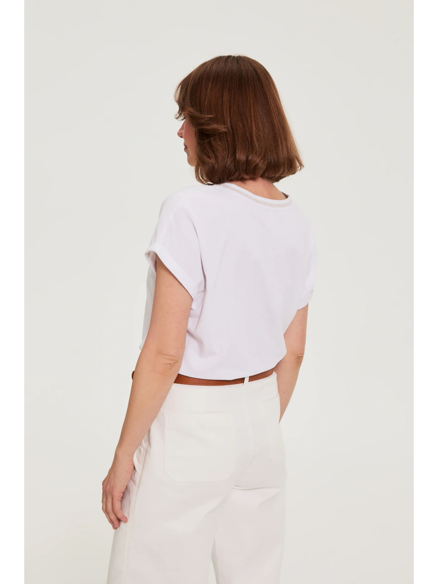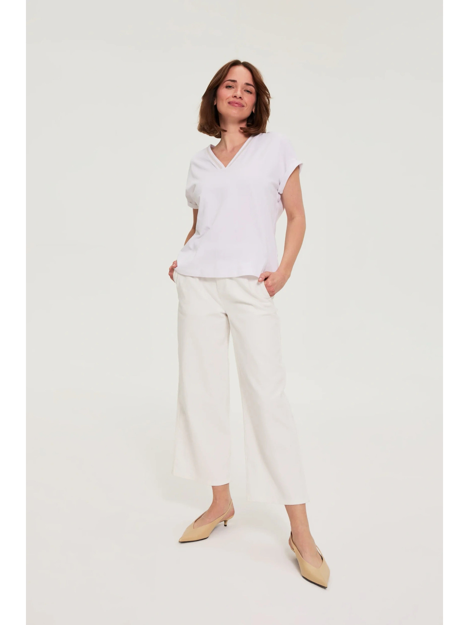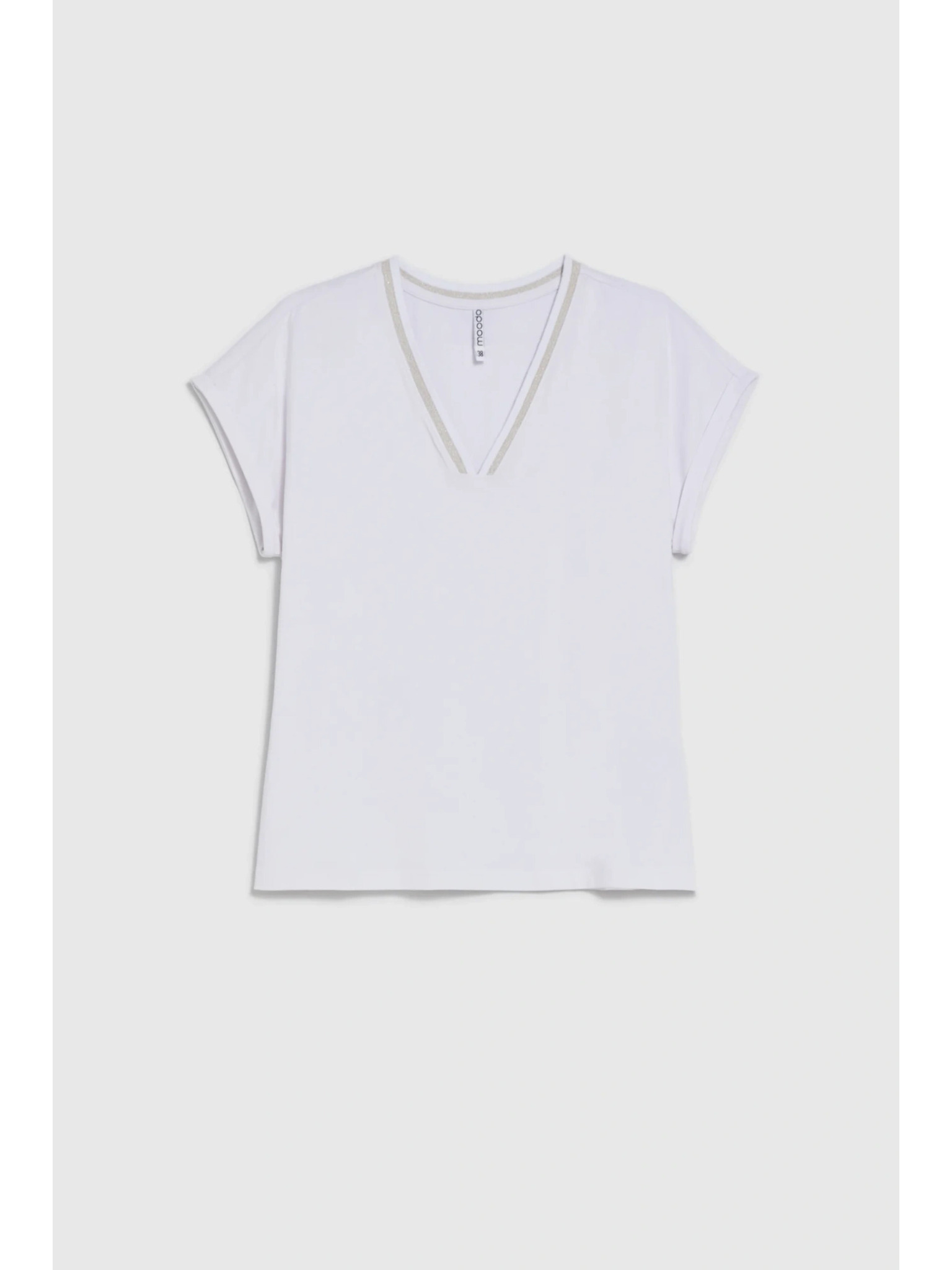 Памучна тениска с V-образно деколте бяла Moodo