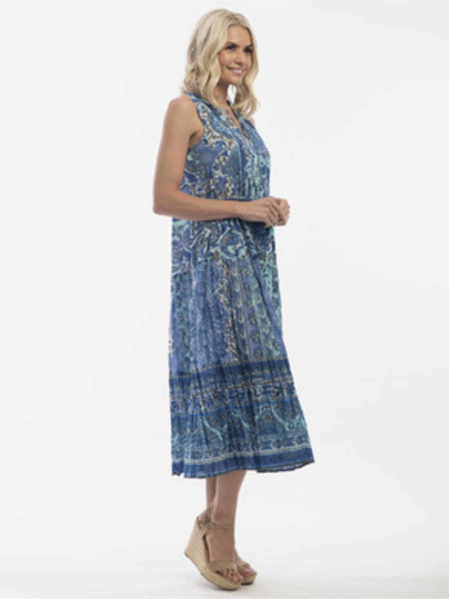 Синя дамска рокля на цветя с лен Orientique