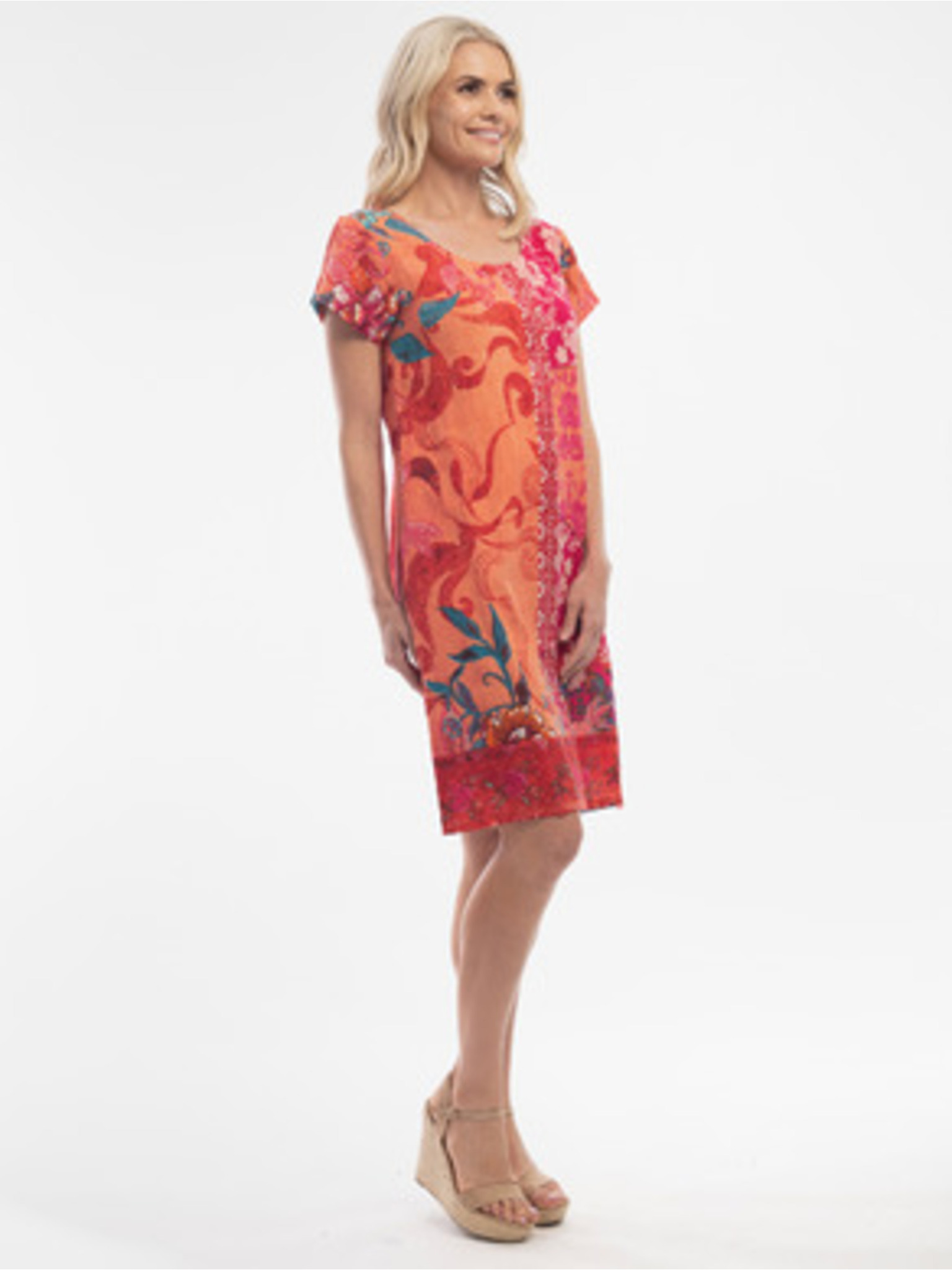 Синя дамска рокля на цветя с лен Orientique