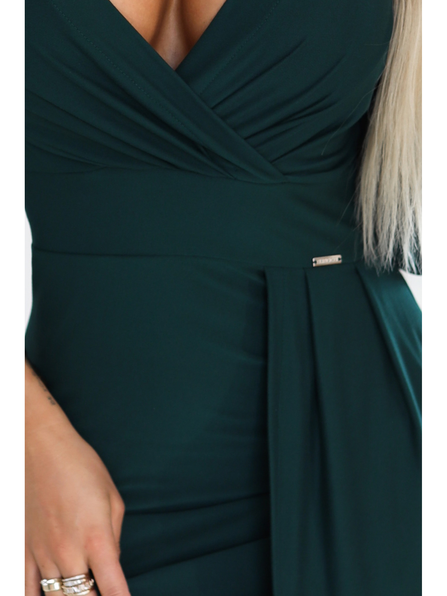 Секси миди рокля с панделка на деколтето - тъмно зелено