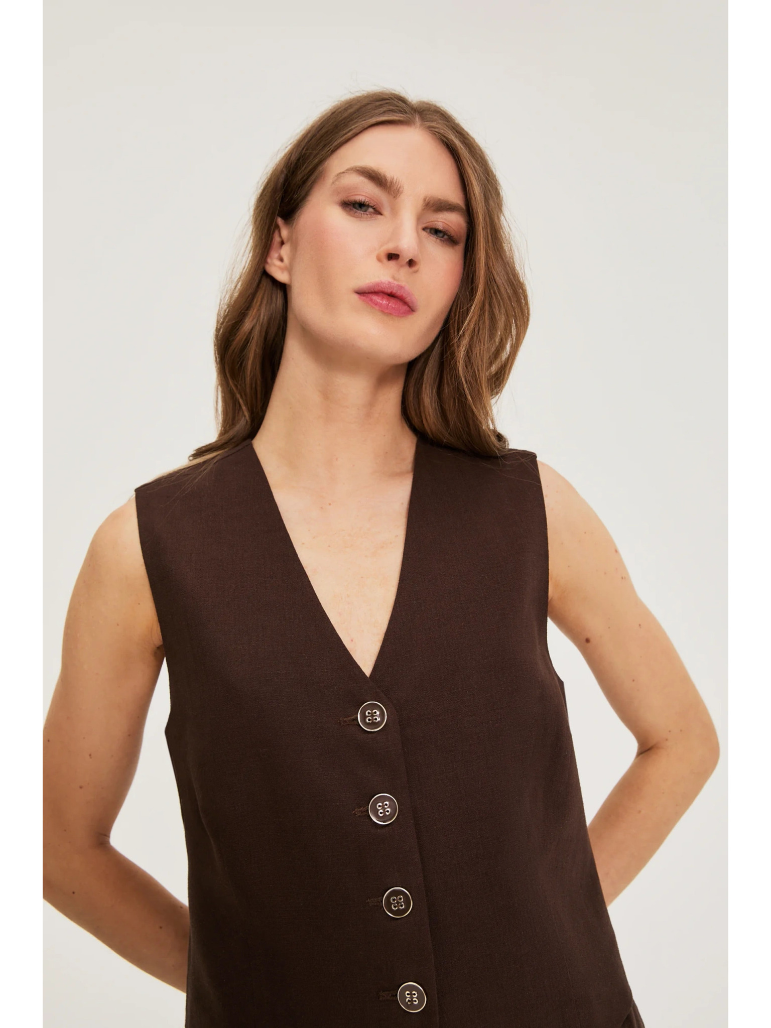 Елегантна кафява жилетка Moodo