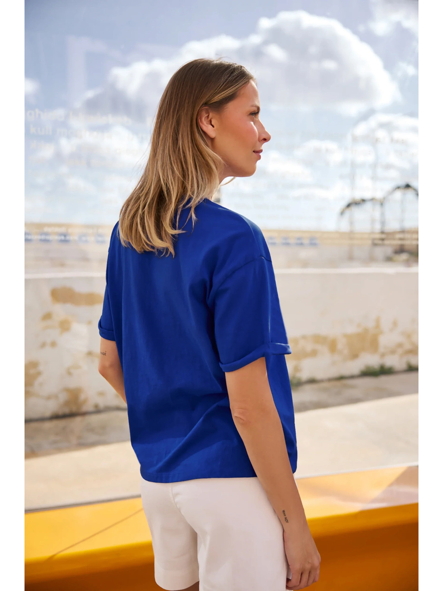 Памучна блуза с принт в бяло Moodo