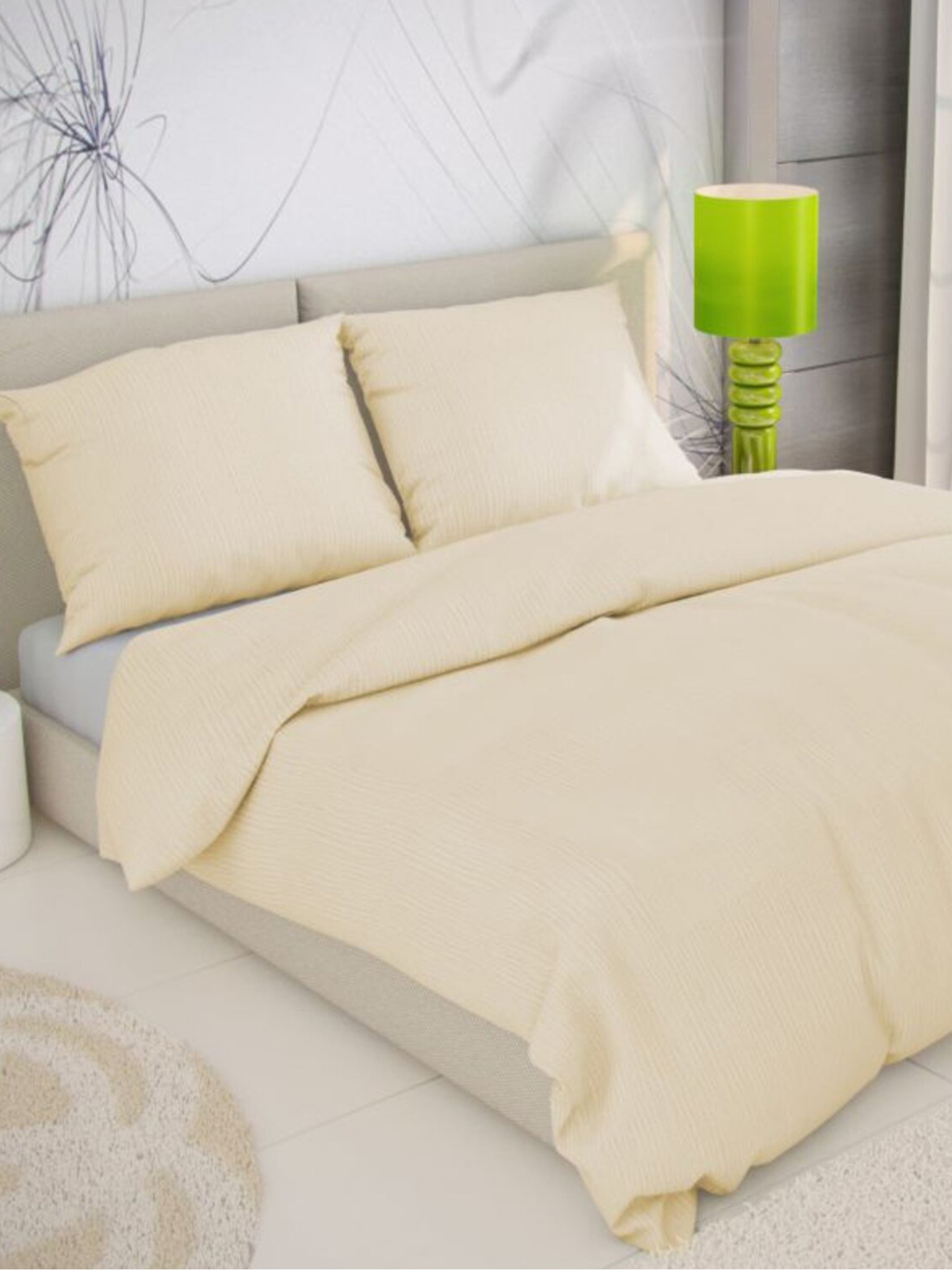 Сатенен френски спален комплект LUXURY COLLECTION 1+2, 200x200, 70x90cm кремав