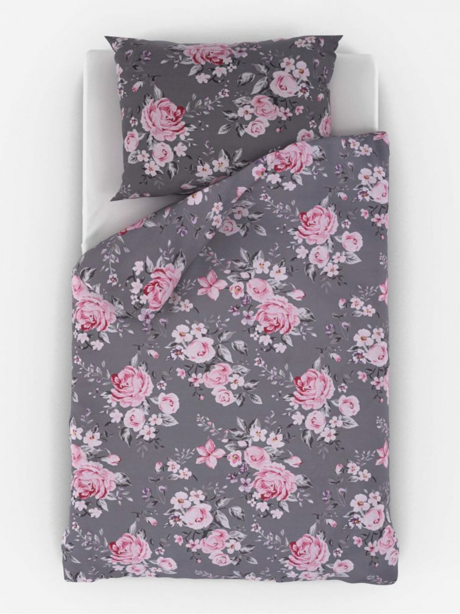 Сатенен удължен спален комплект LUXURY COLLECTION 140x220, 70x90cm тъмносив / бял