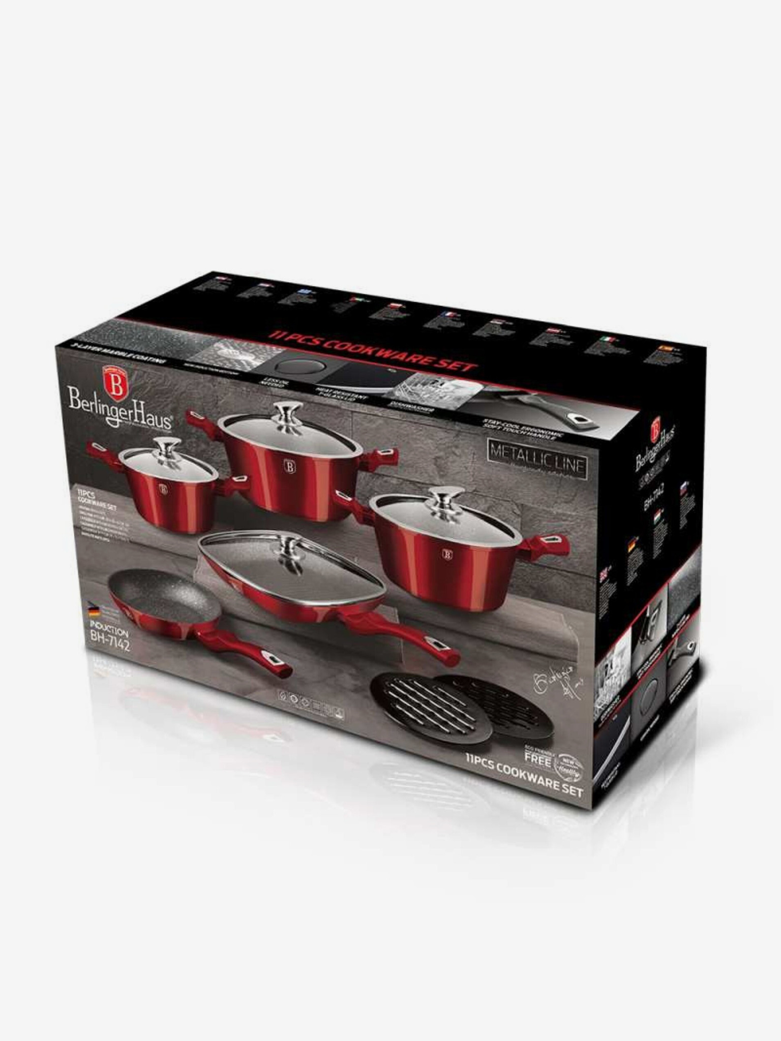 Комплект съдове за готвене с мраморна повърхност 13 бр. линия Burgundy Metallic I BERLINGERHAUS