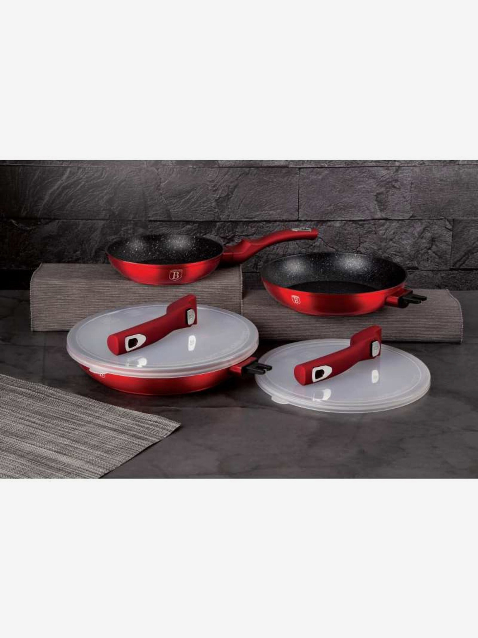 Комплект тигани с подвижна дръжка 5 бр. Burgundy Metallic Line грил BERLINGERHAUS