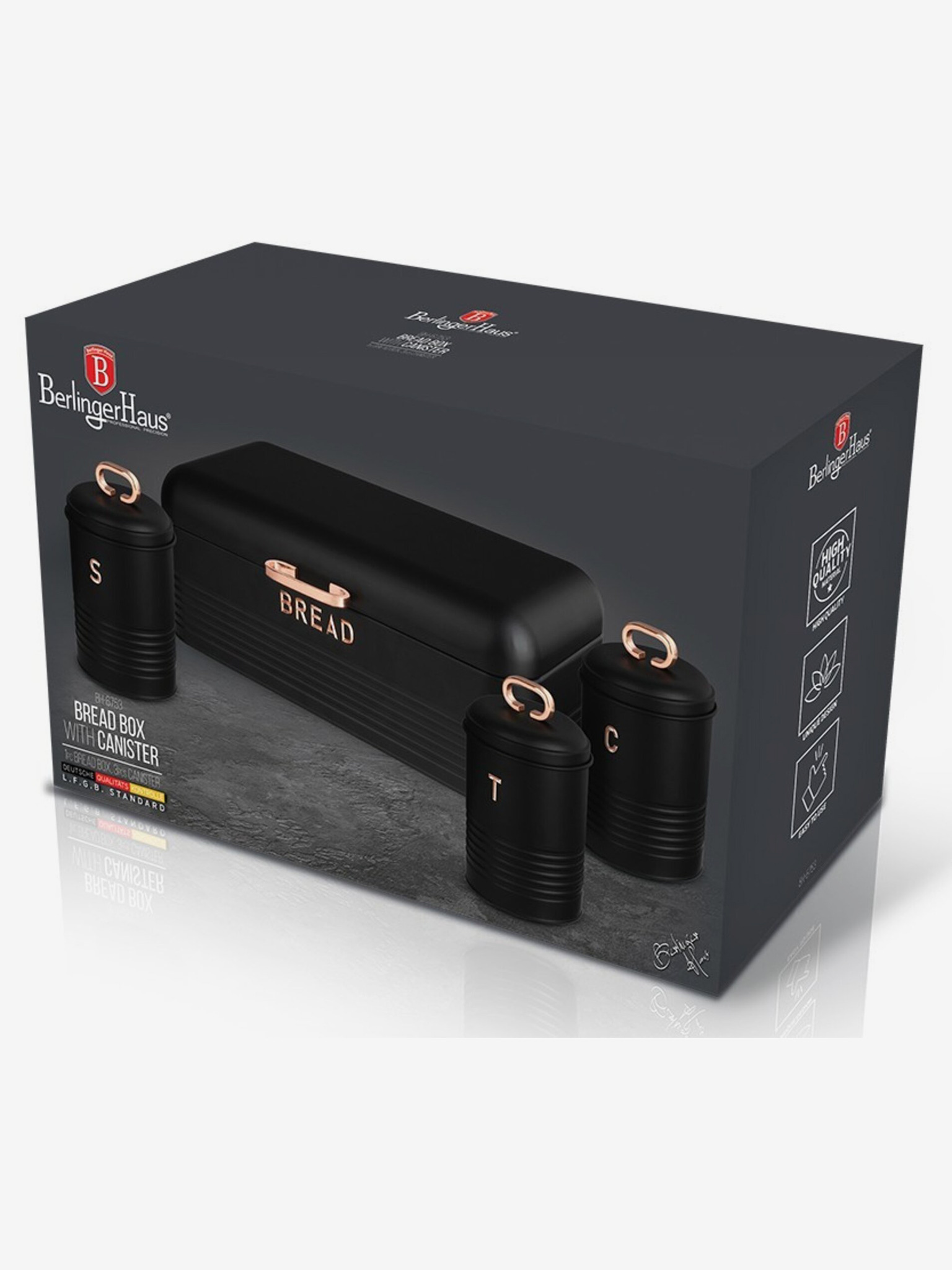 Комплект хлебарка и кутия за храна 4 броя Black Rose Collection BERLINGERHAUS