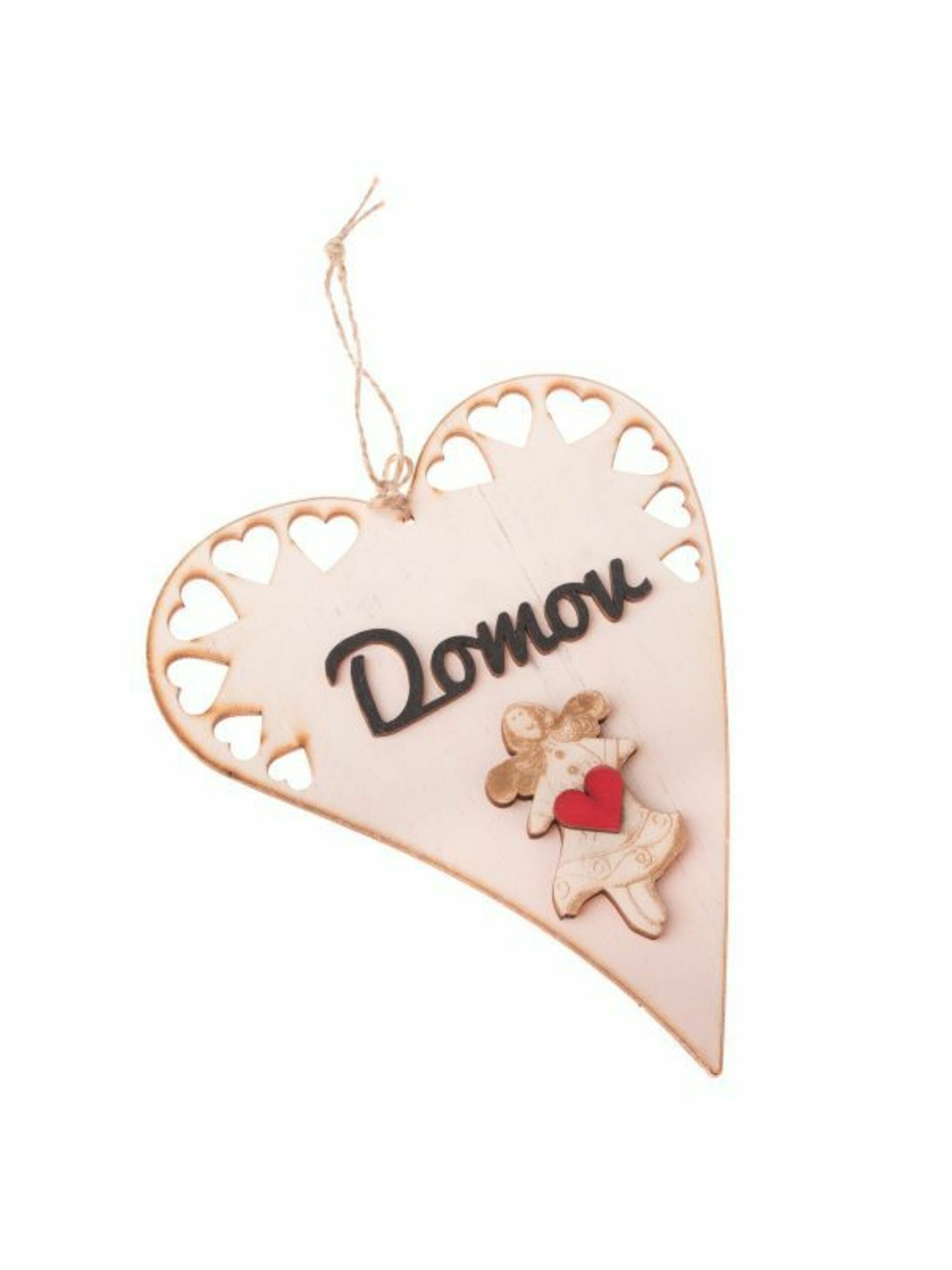 Дървено висящо сърце - комплект 4 бр., 12/288